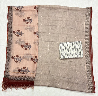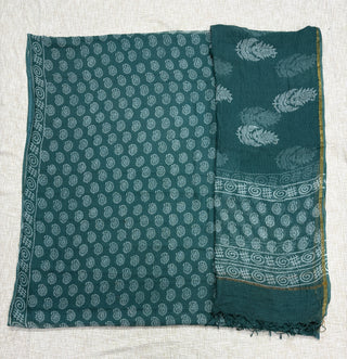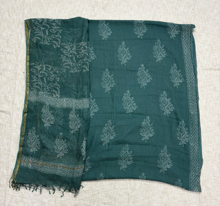 Sea green Hand block kota doria suit set for office wear (with extra lining included)