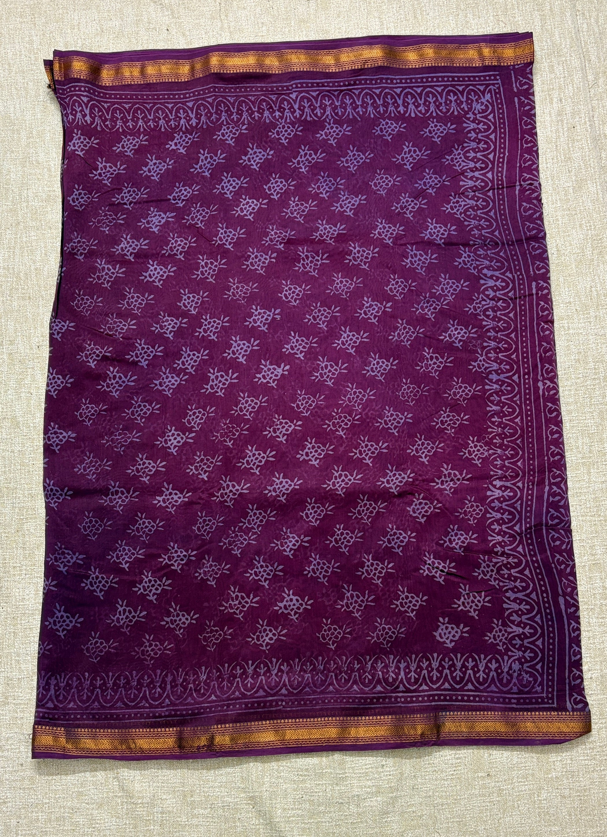 Handblock Maheshwari Silk Saree with Unstitched Blouse Piece