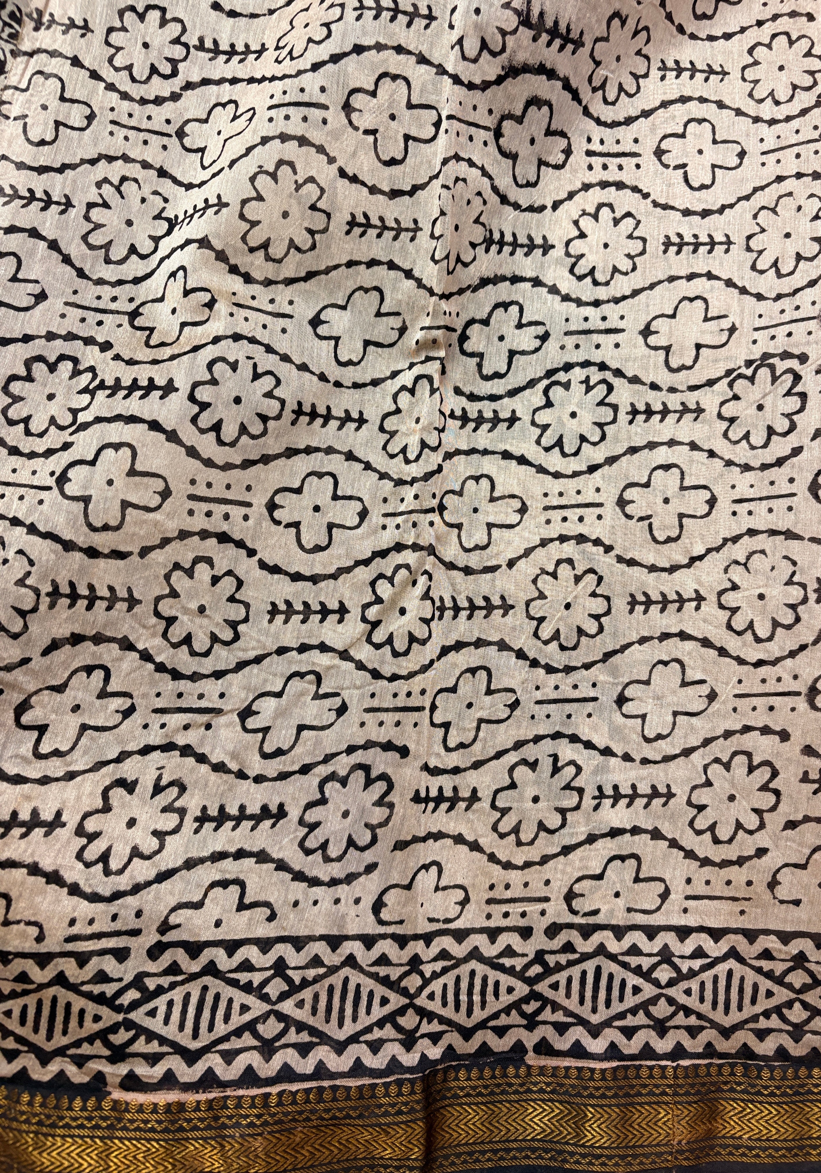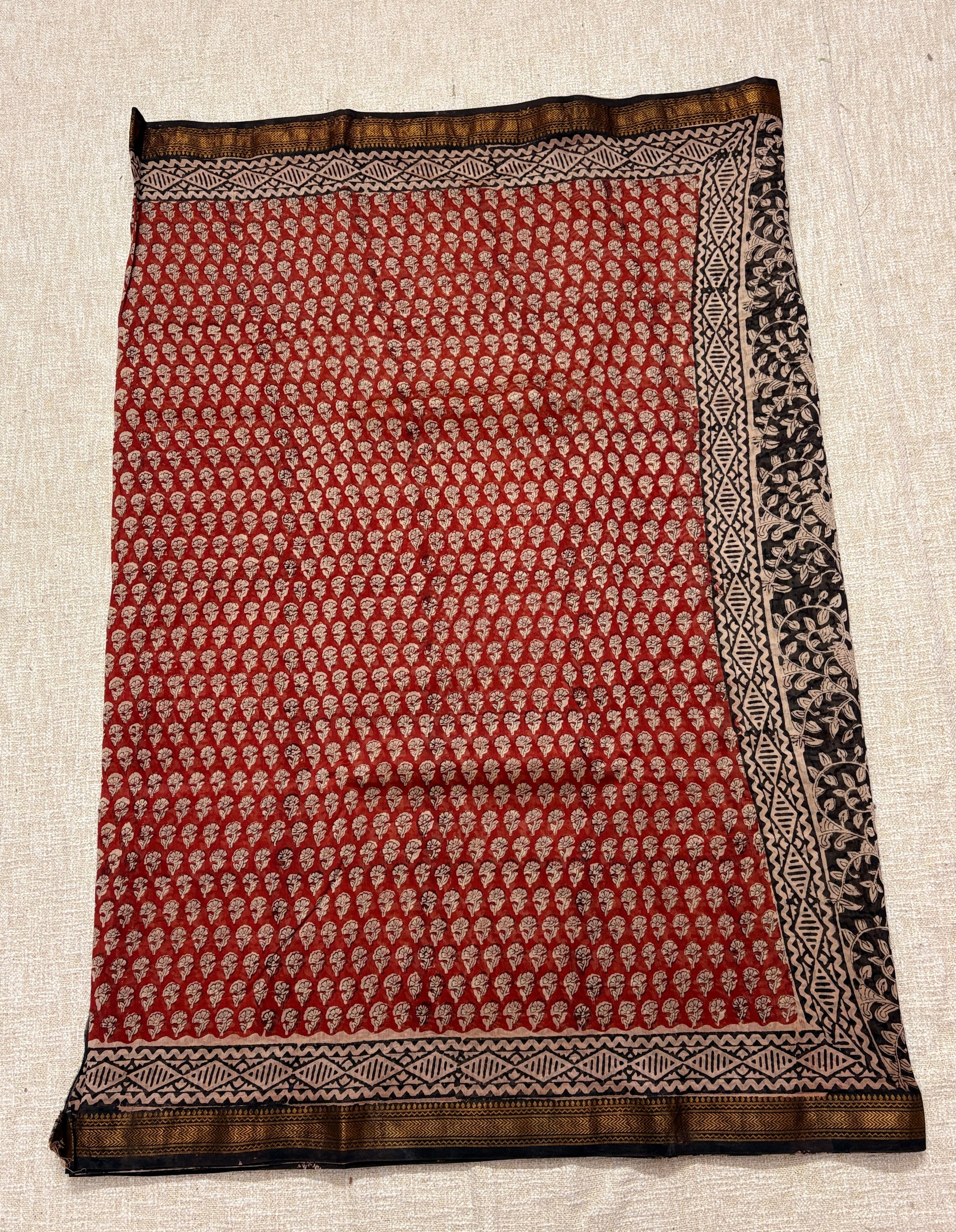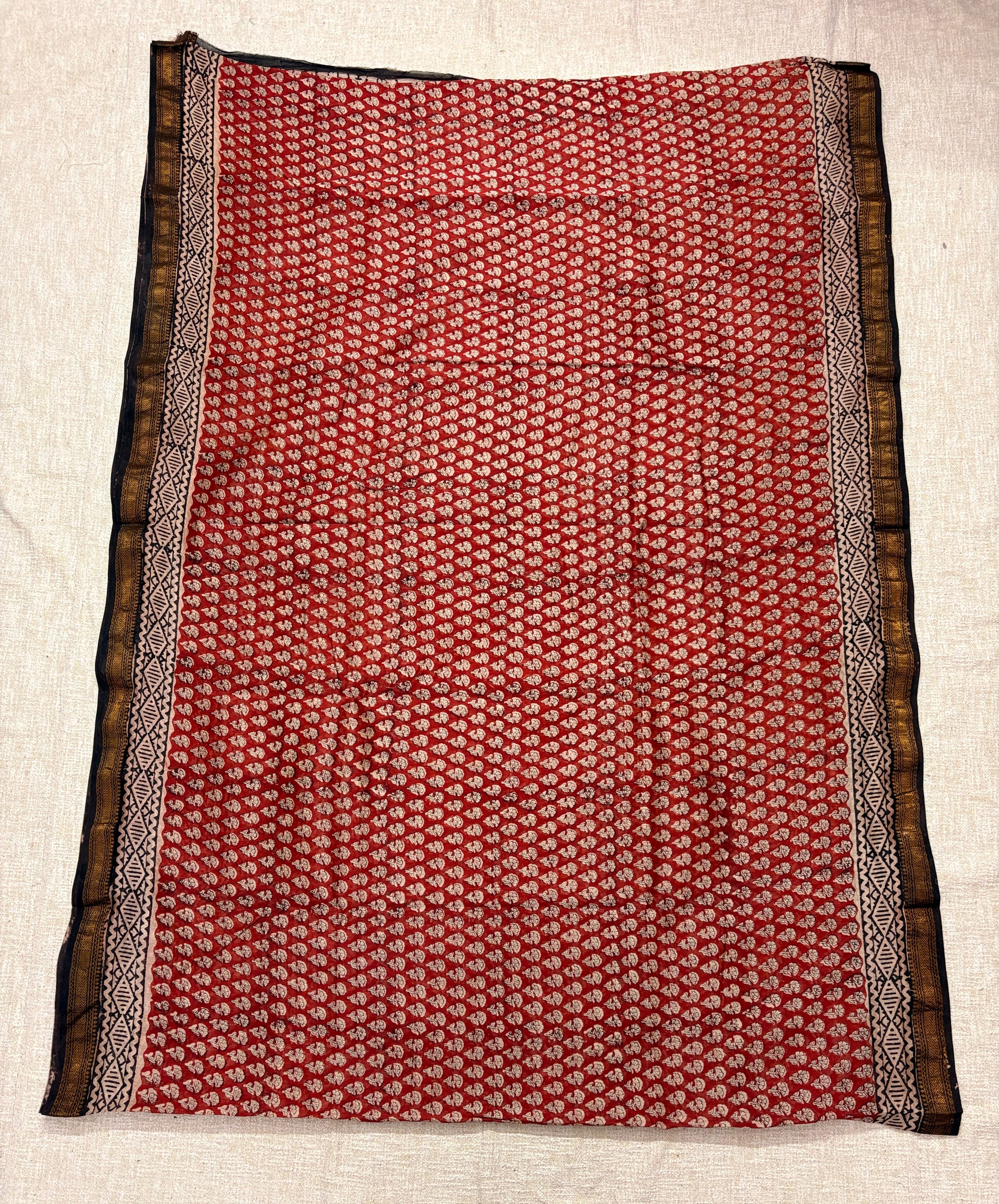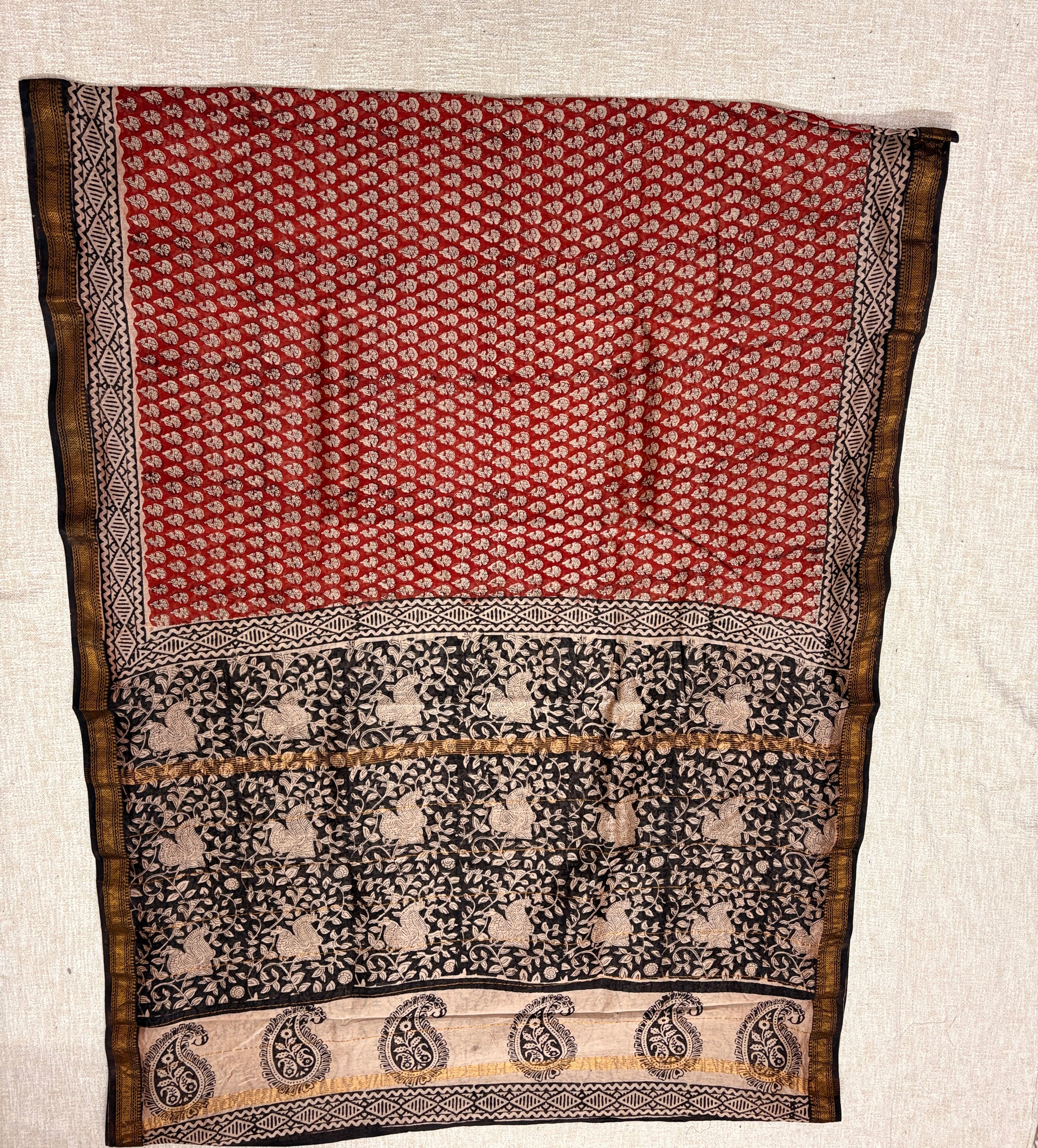 Handblock Maheshwari Silk Saree with Unstitched Blouse Piece