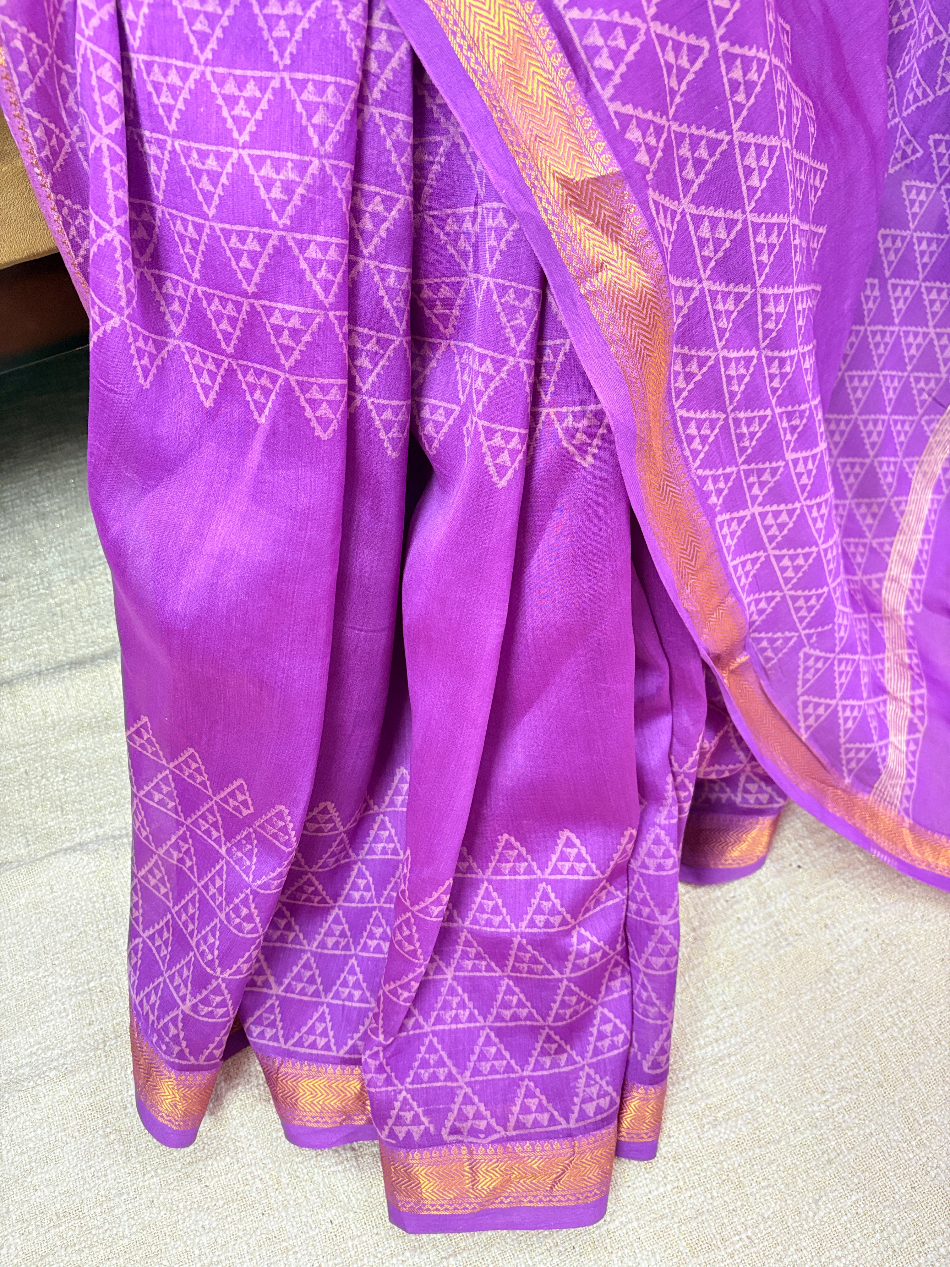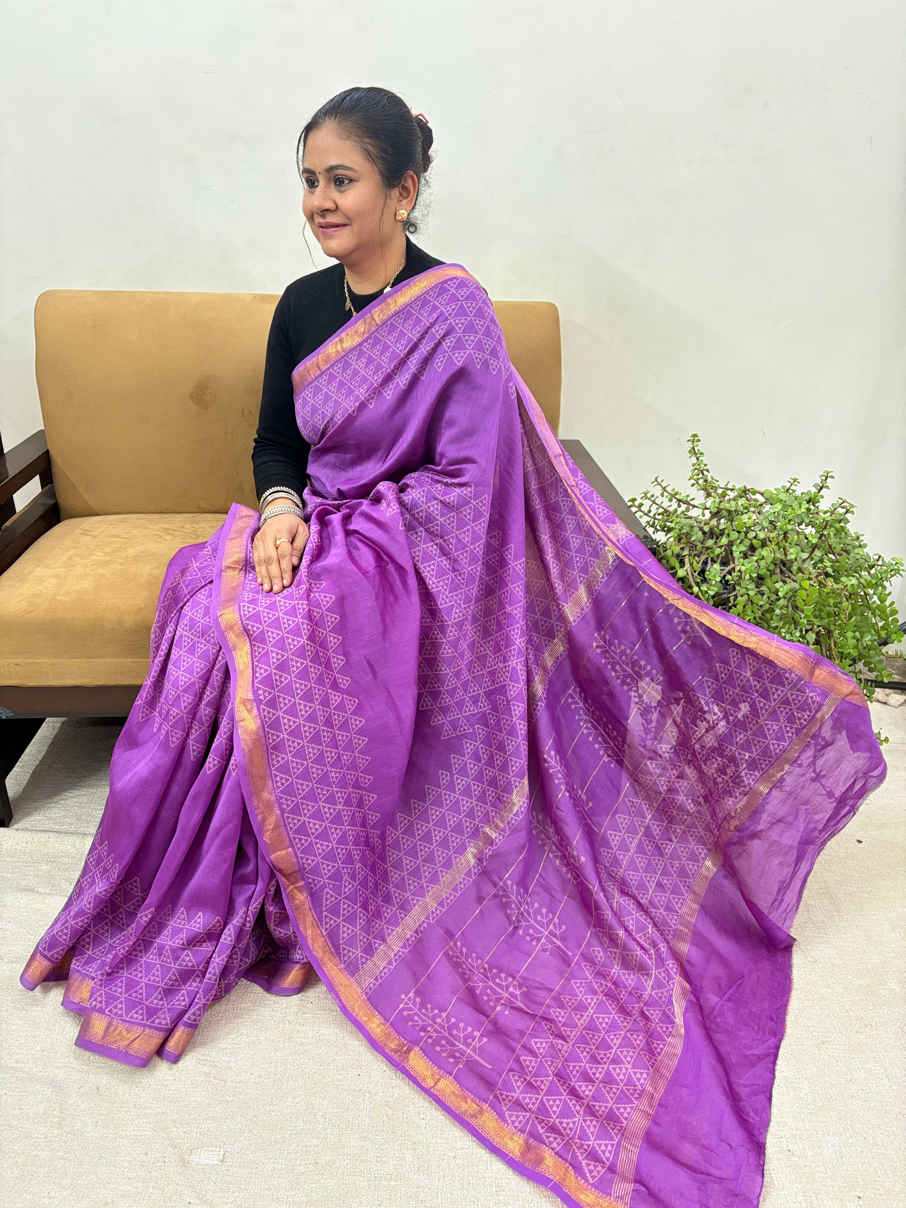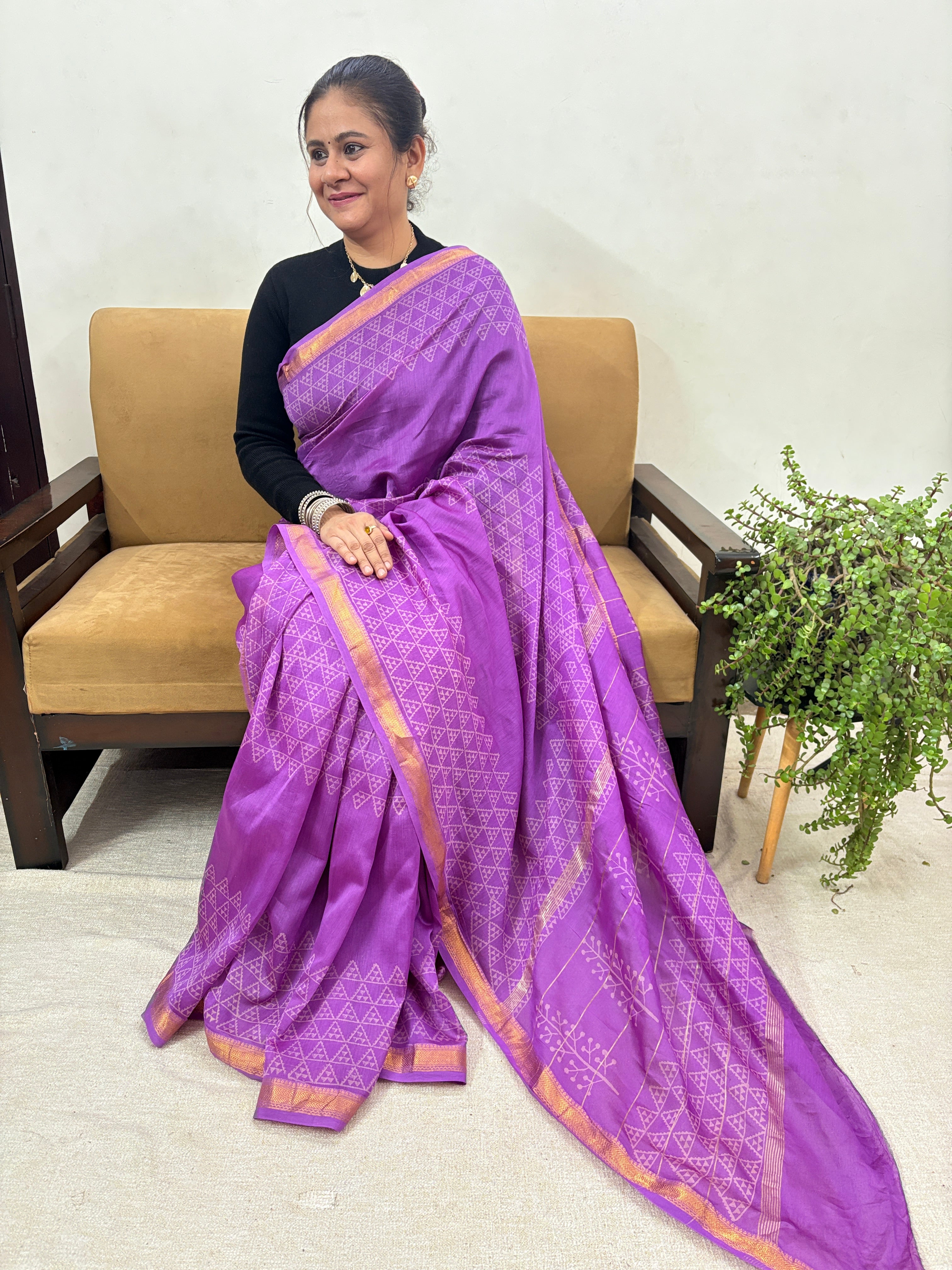Handblock Maheshwari Silk Saree with unstitched blouse piece (Lining Included)