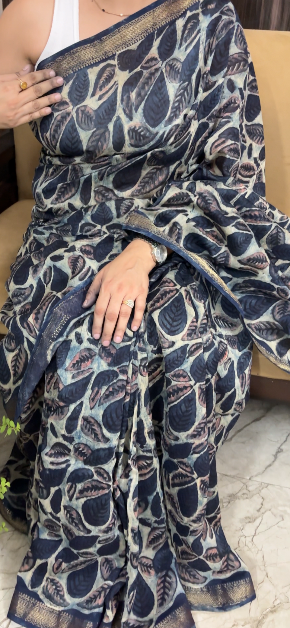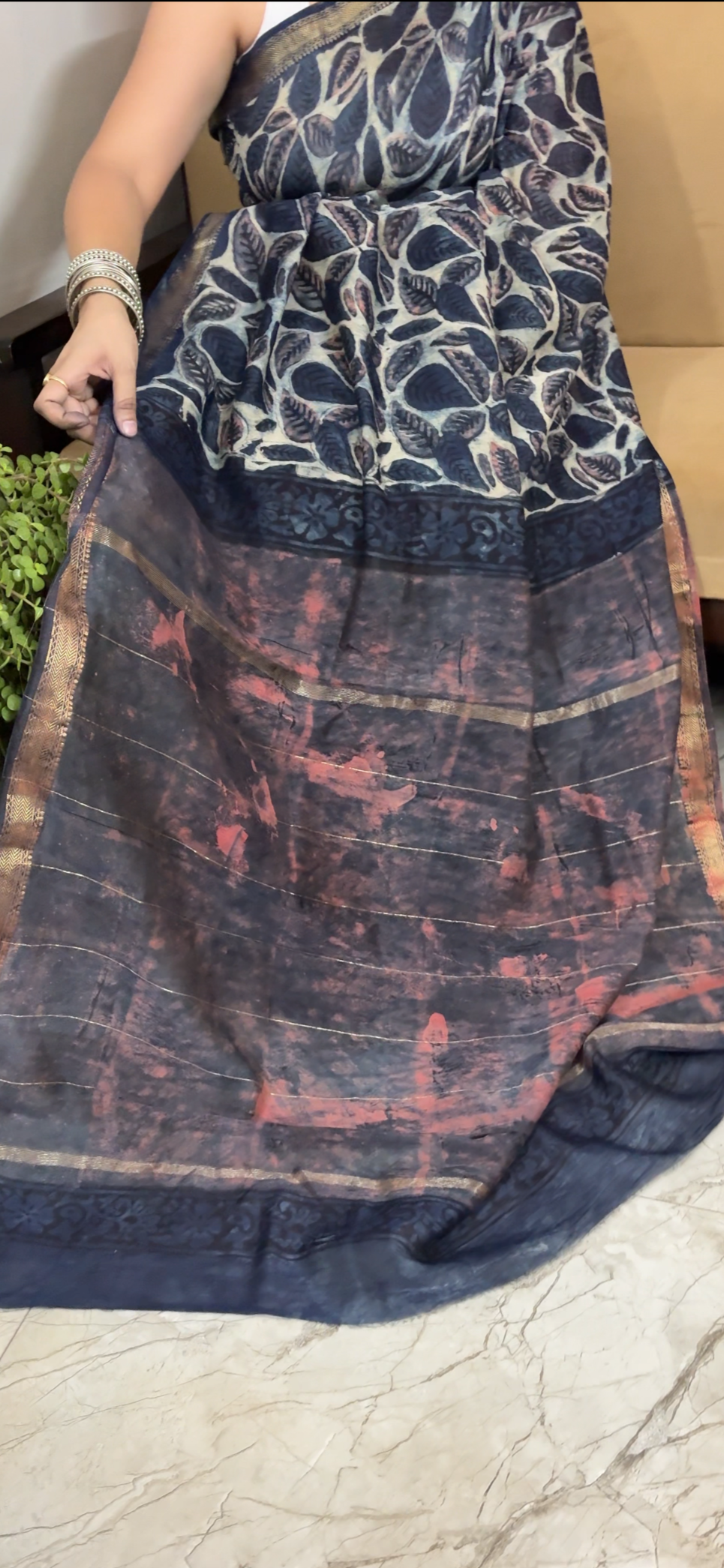 Vanaspati Ajrakh Maheshwari Silk Saree with Unstitched Blouse Piece (No Chemical Dyes)