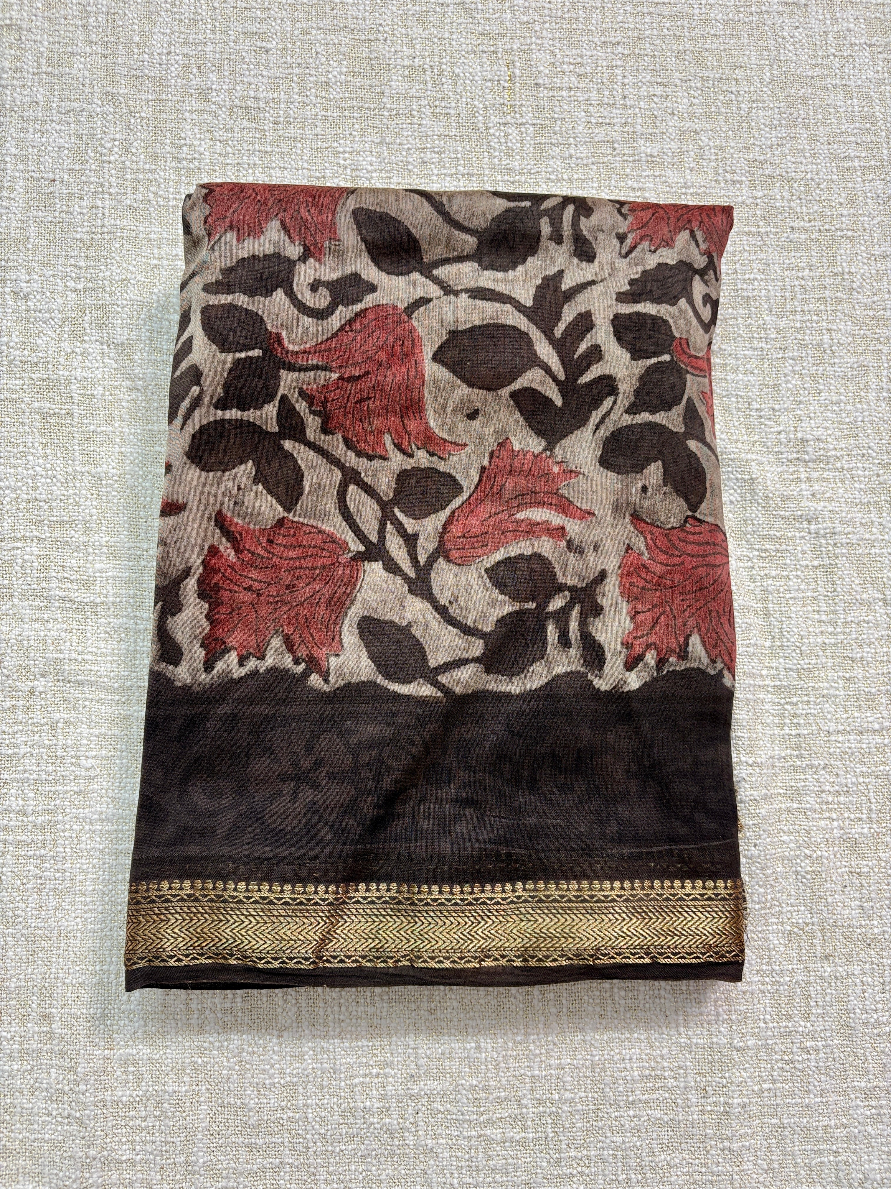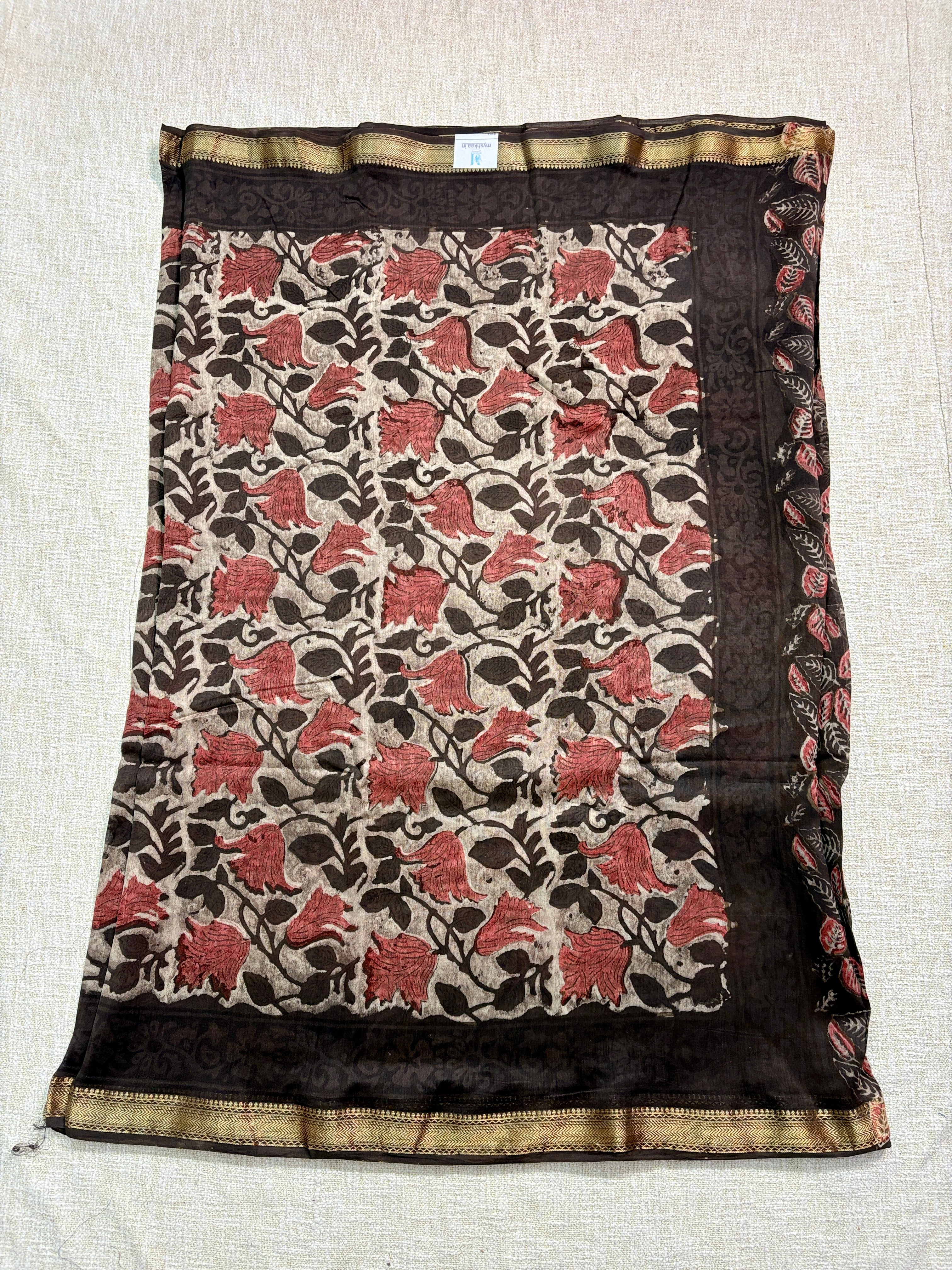 This Premium Brown Maheshwari Silk Saree with blouse piece is suitable for all occasions like functions, weddings, office or any formal events.