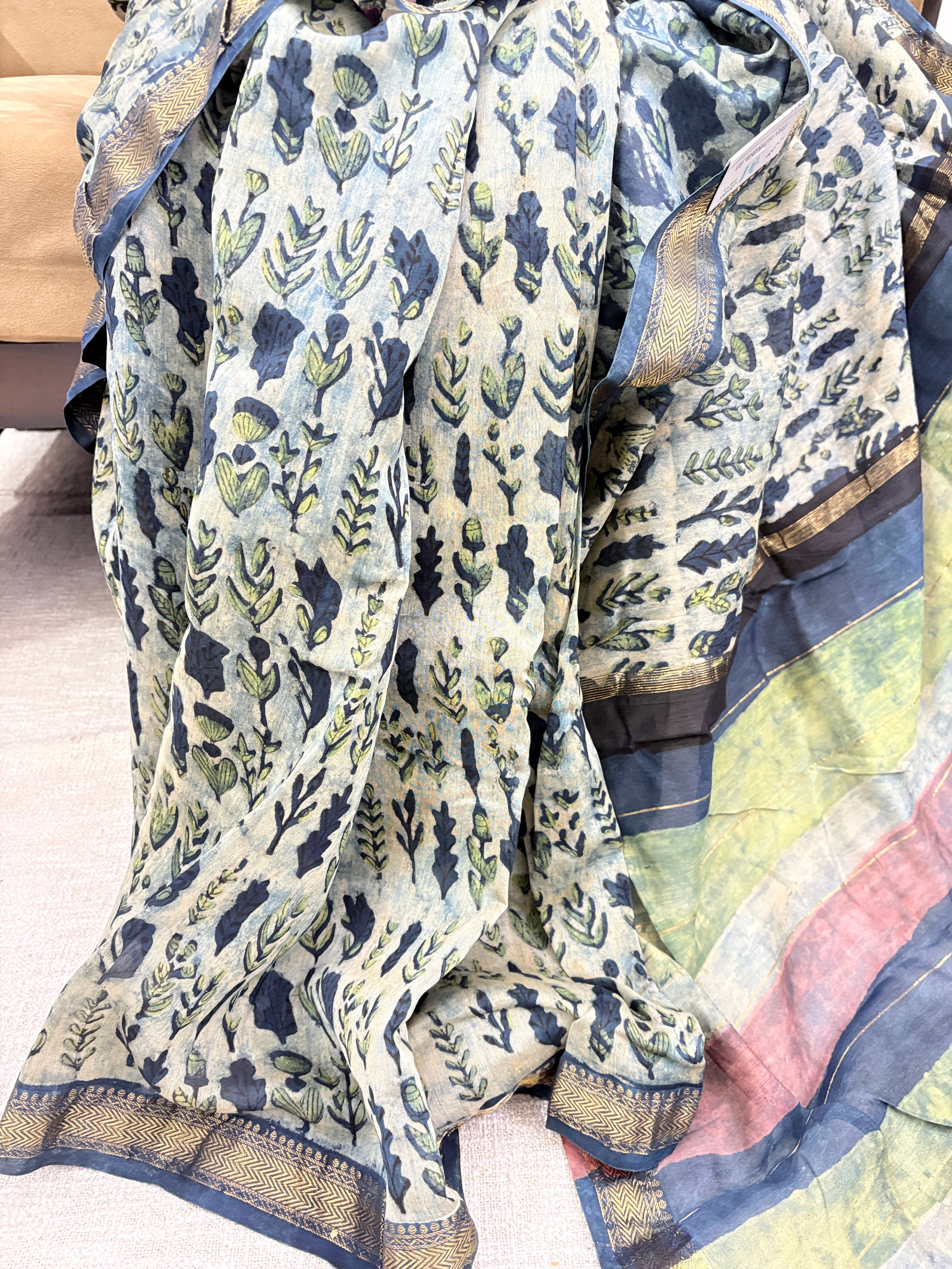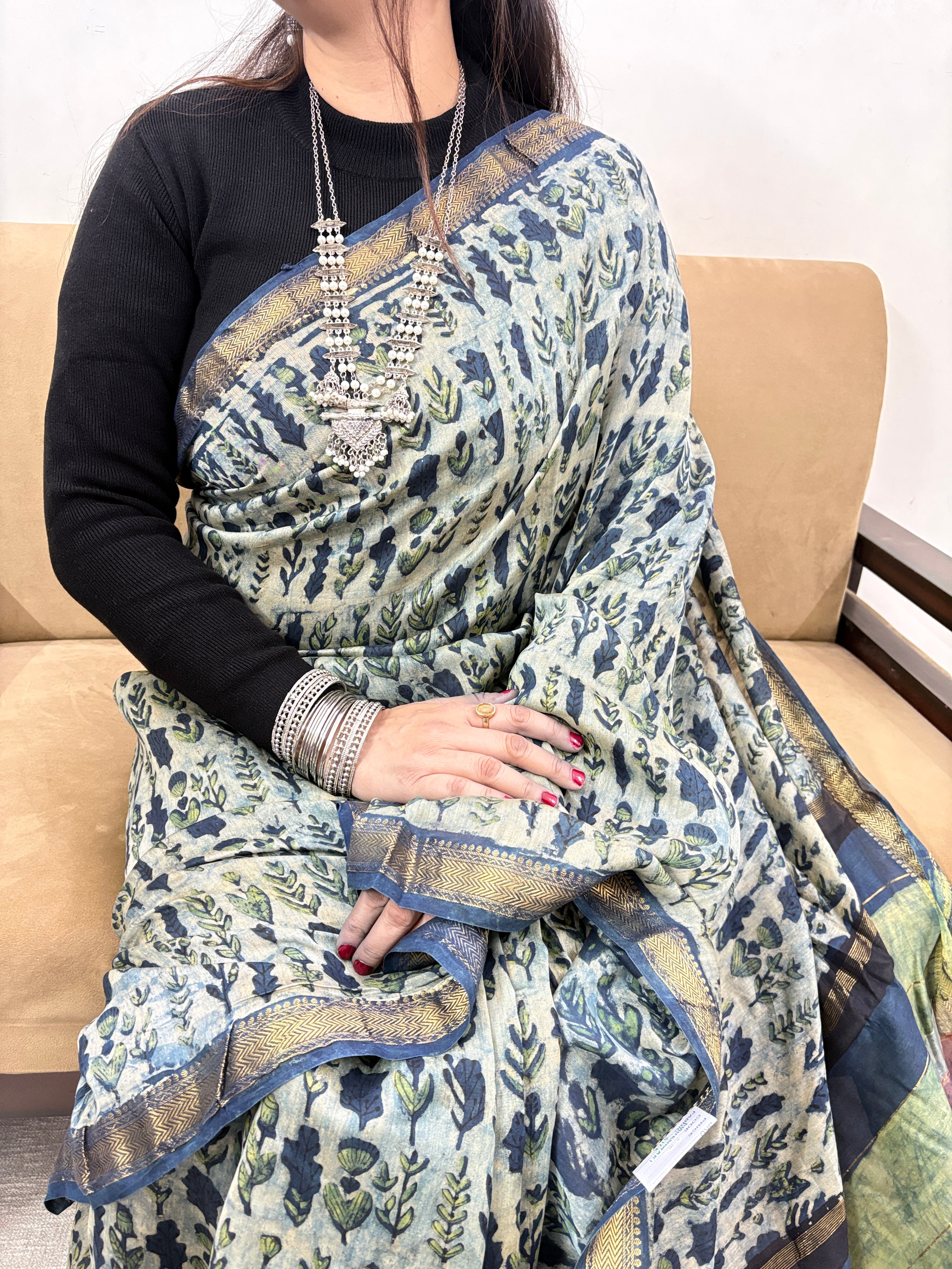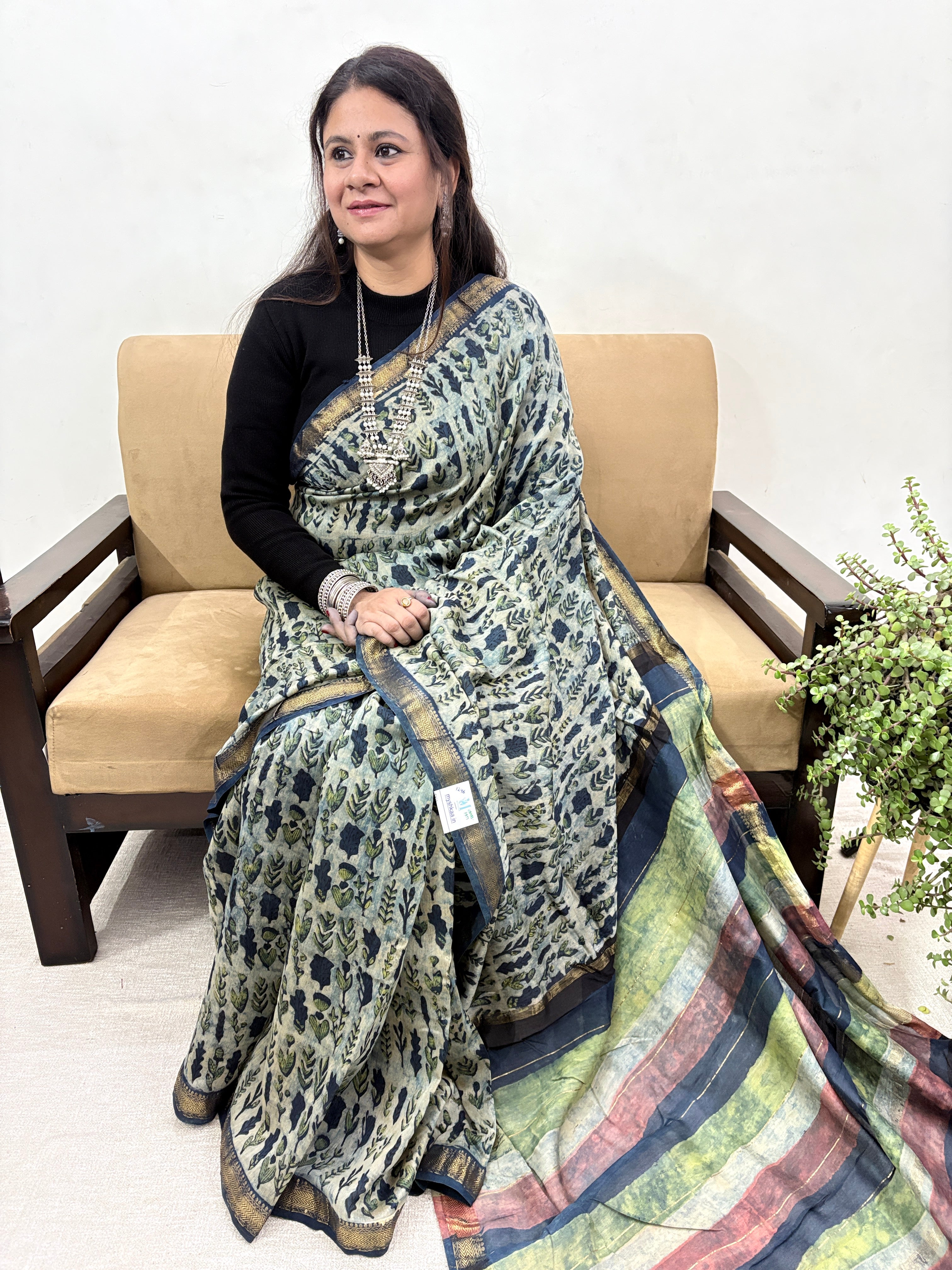 Vanaspati Ajrakh Maheshwari Silk Saree with Unstitched Blouse Piece(Lining Included) (No Chemical Dyes)