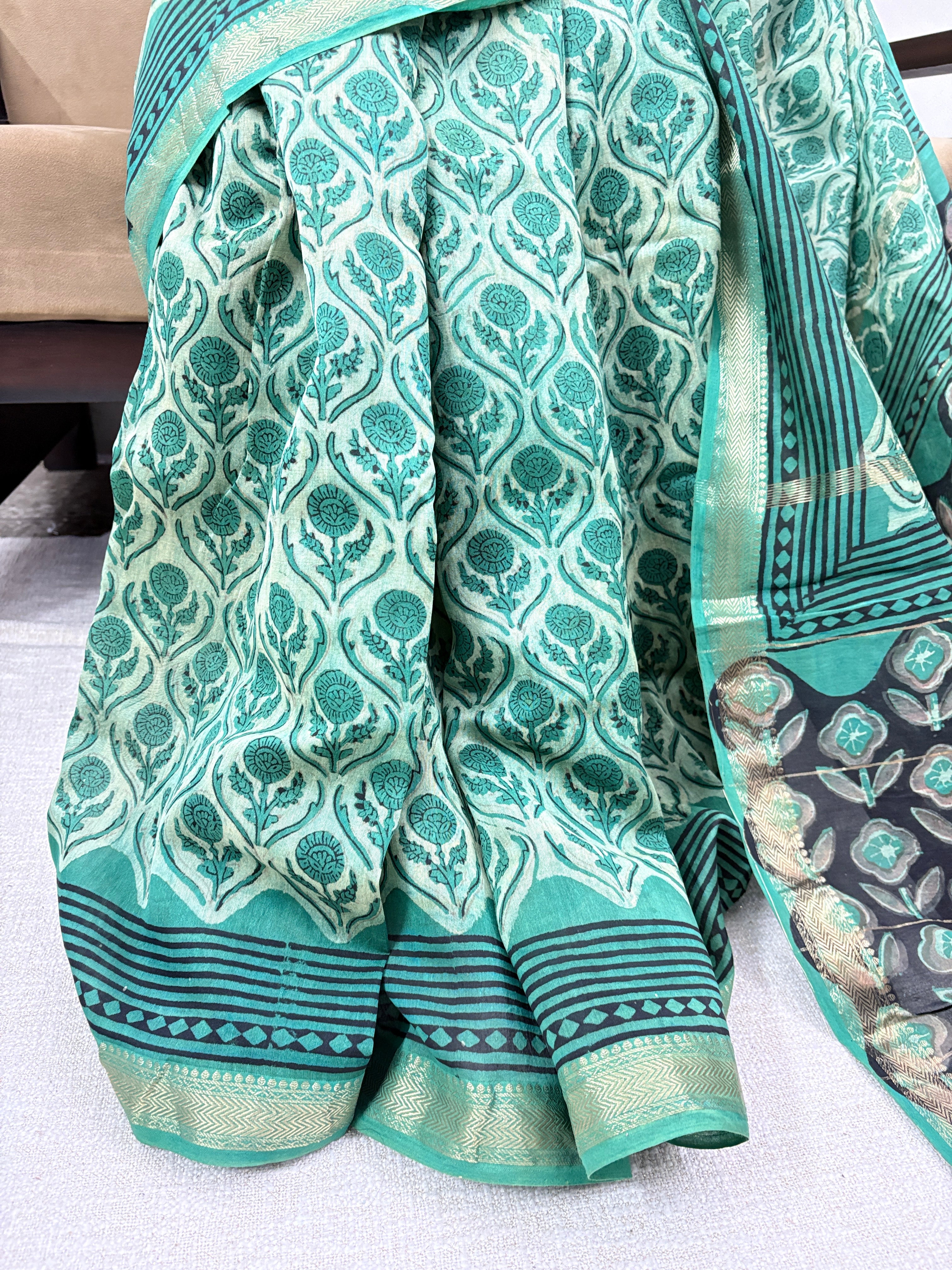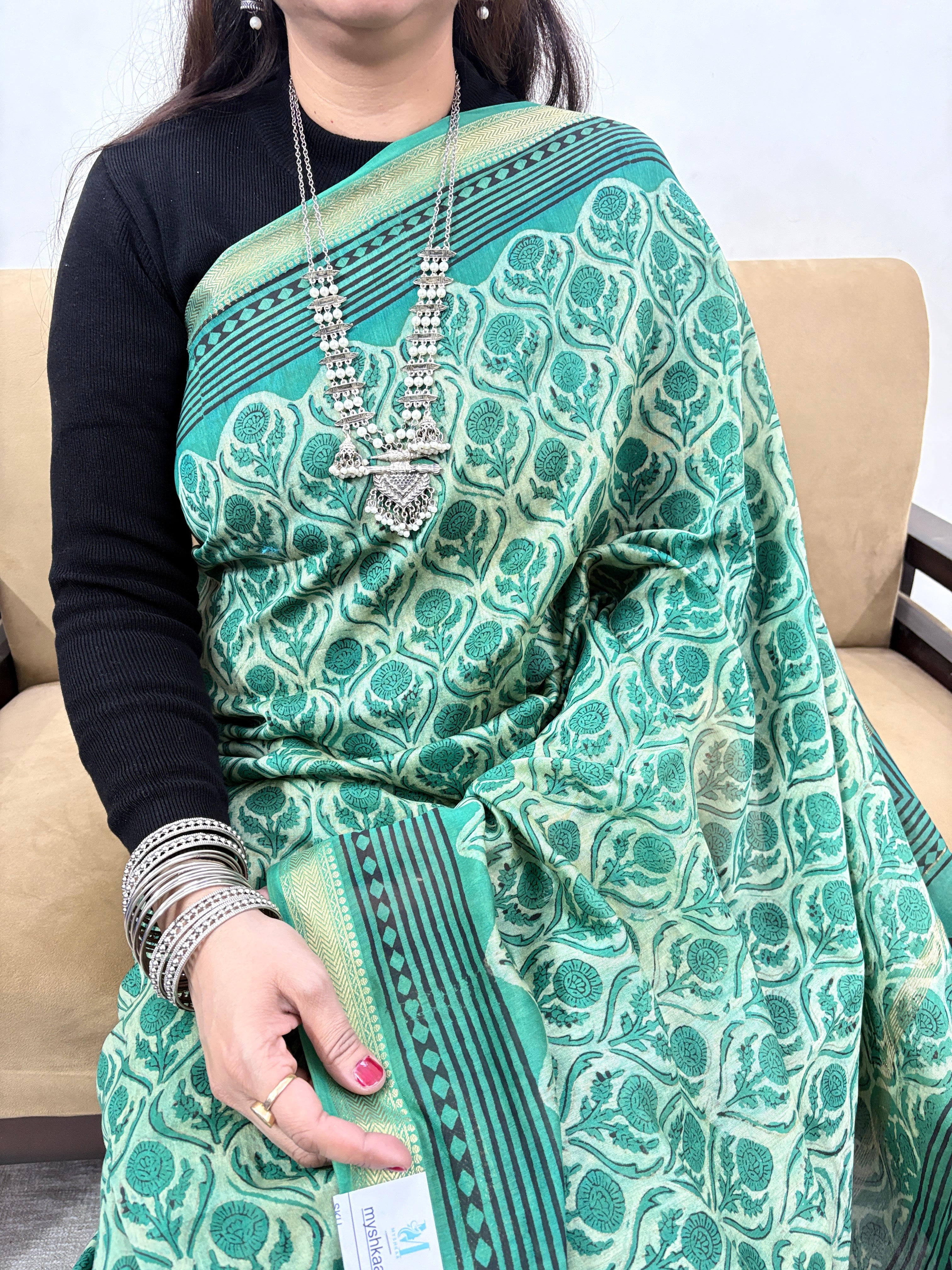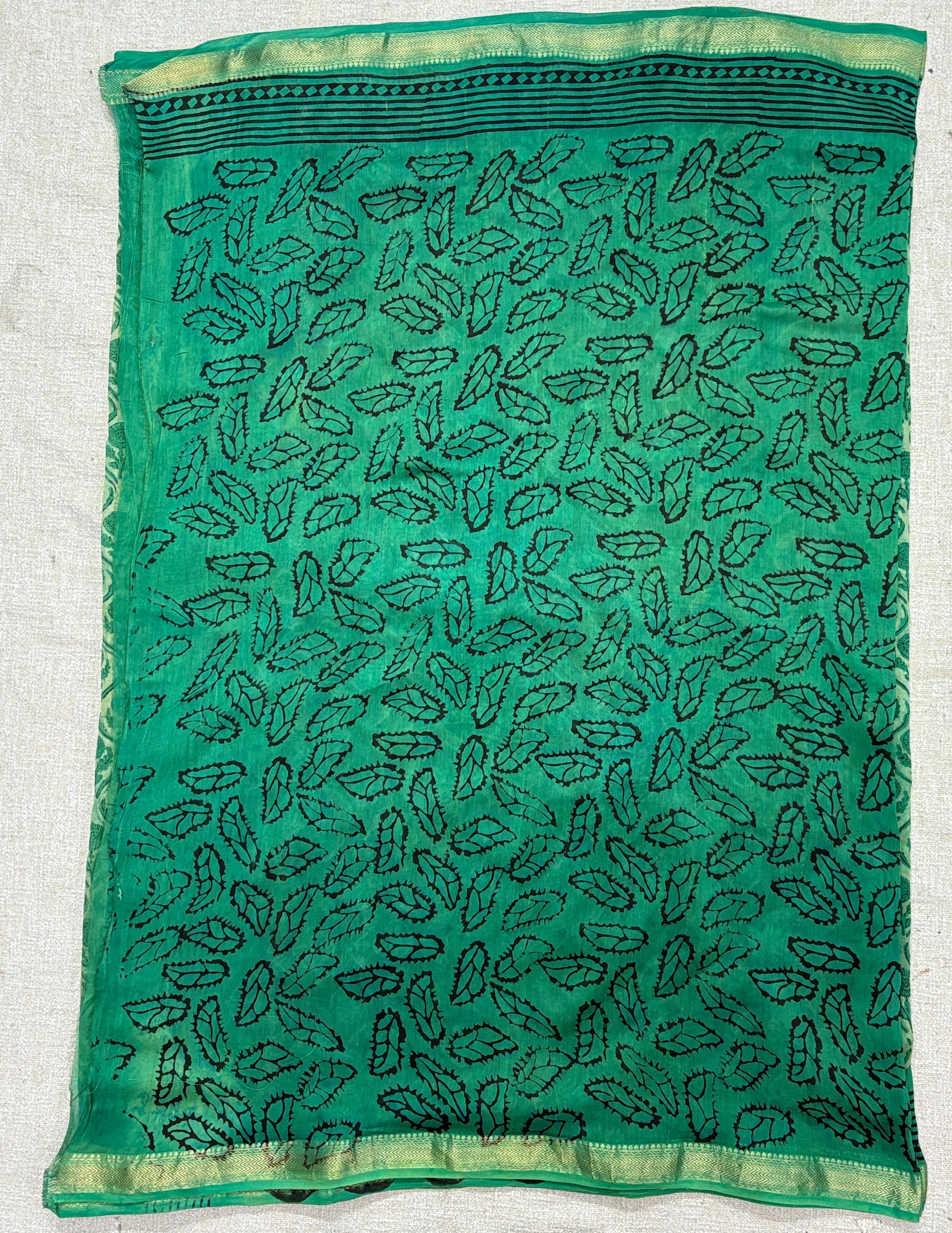 Vanaspati Ajrakh Maheshwari Silk Saree with Unstitched Blouse Piece (No Chemical Dyes)