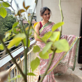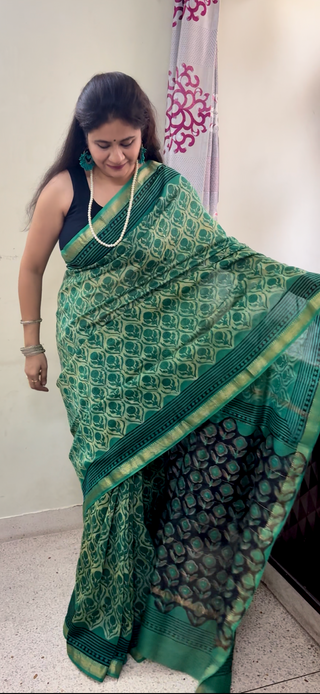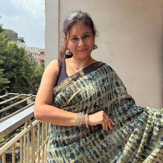 Vanaspati Ajrakh Maheshwari Silk Saree with Unstitched Blouse Piece (No Chemical Dyes)