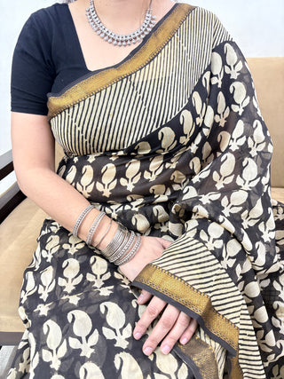 Handblock Maheshwari Silk Saree with Unstitched Blouse Piece (Lining Included)