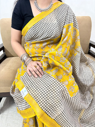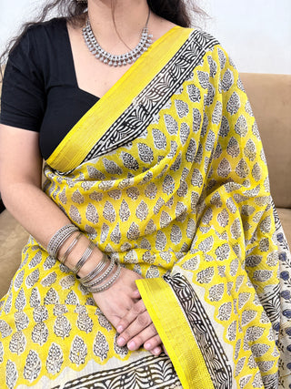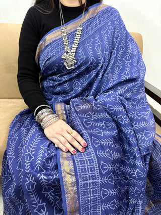 Handblock Maheshwari Silk Saree with Unstitched Blouse Piece (Lining Included)
