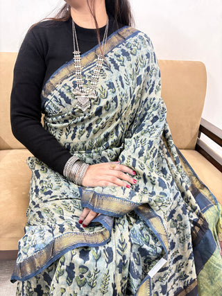 Vanaspati Ajrakh Maheshwari Silk Saree with Unstitched Blouse Piece (Lining Included)(No Chemical Dyes)