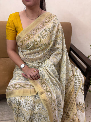 Handblock Maheshwari Silk Saree with Unstitched Blouse Piece (Lining Included)