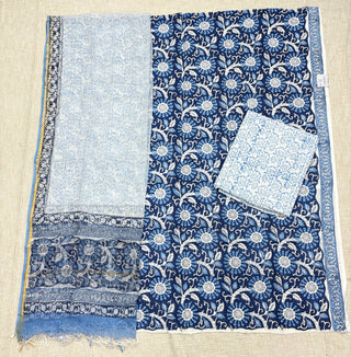 Cotton Dabu Indigo Handblock Office Wear Suit fabric with Kota doria Dupatta