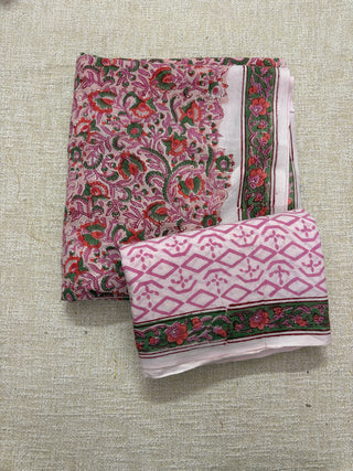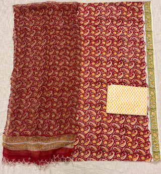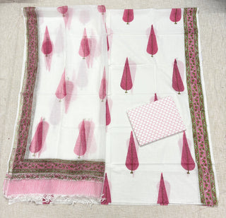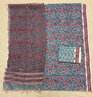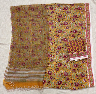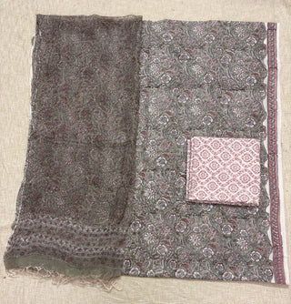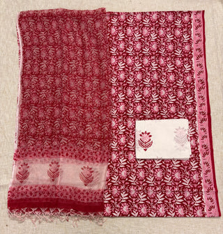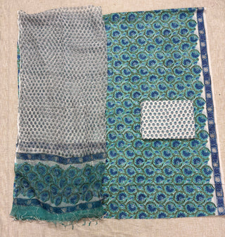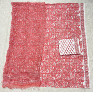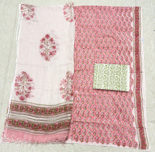 Premium Cotton Block Print Office Wear Suit fabric with Kota Doria Dupatta (44 inch width) and Heavy Bottom