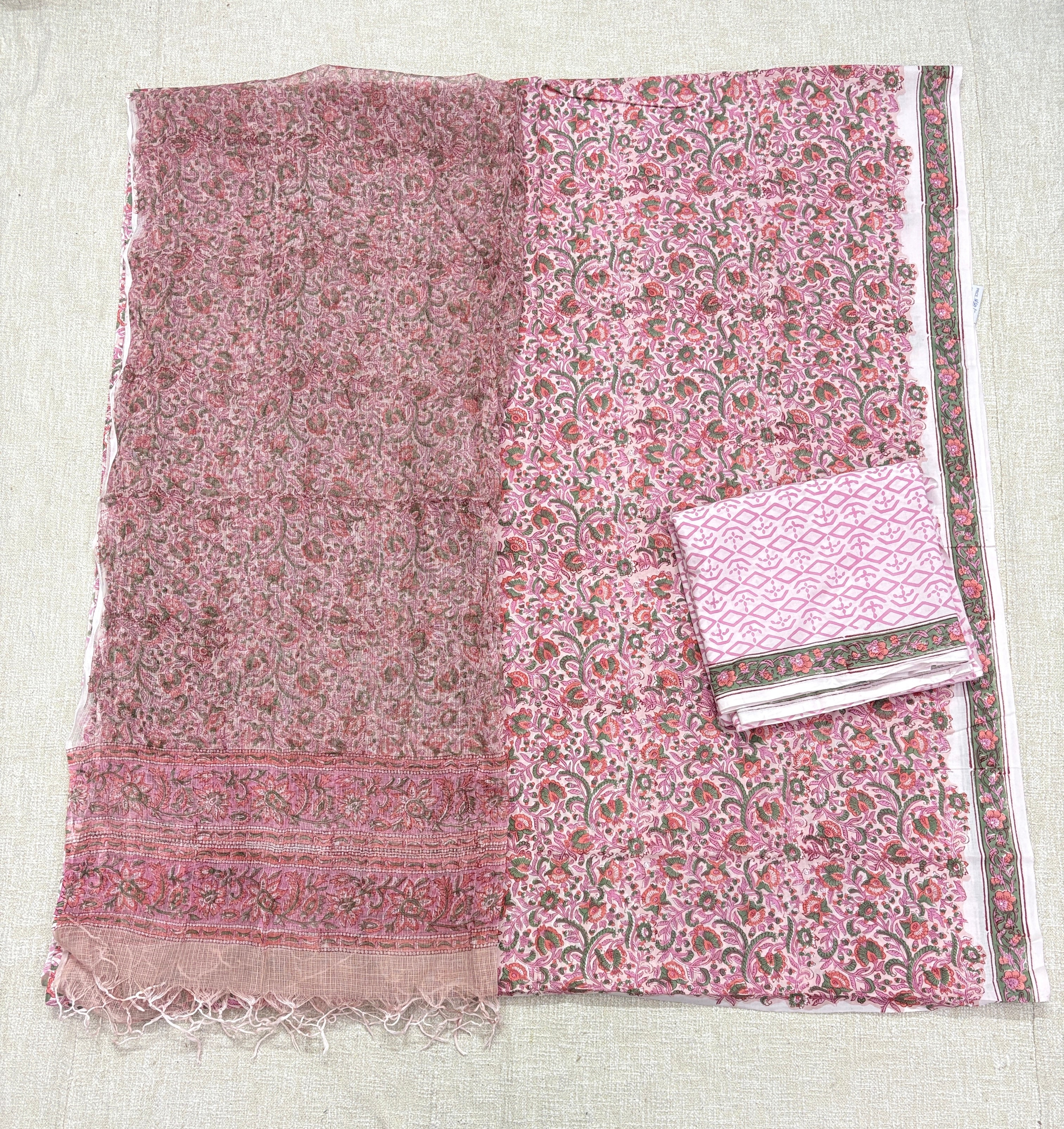 • Premium Cotton Block Print Office Wear Suit fabric with Kota Doria Dupatta (44 inch width) and Heavy Cotton Bottom