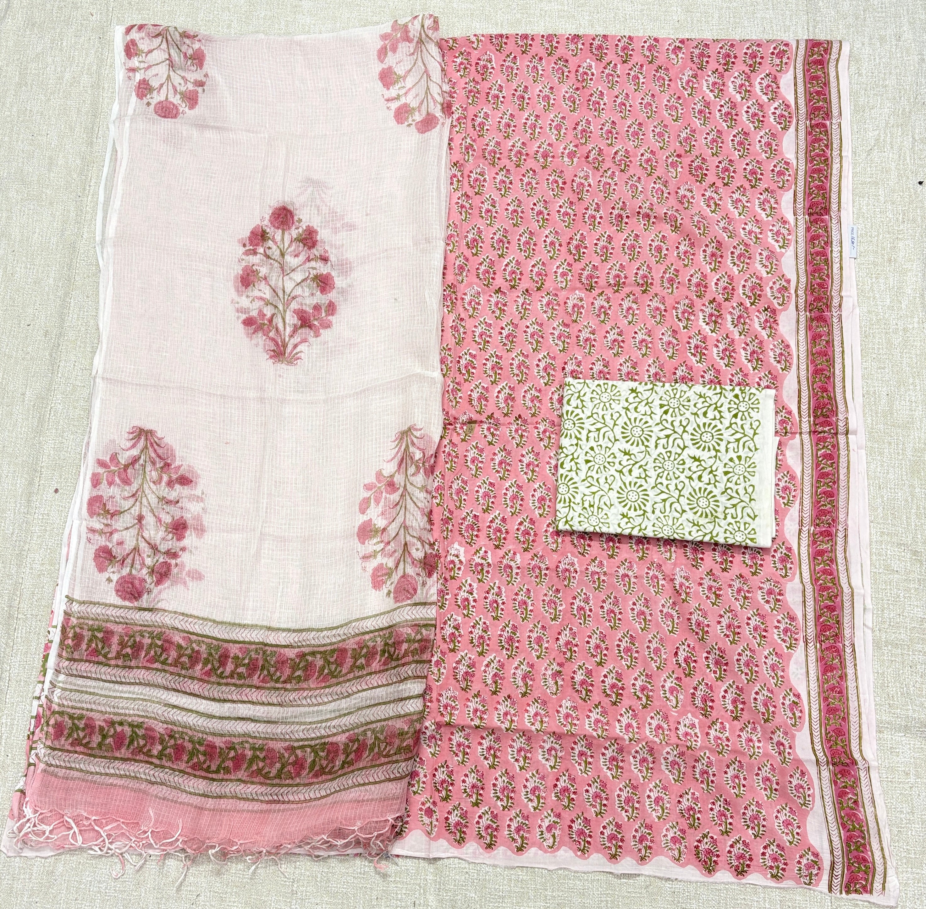 • Premium Cotton Block Print Office Wear Suit fabric with Kota Doria Dupatta (44 inch width) and Heavy Cotton Bottom