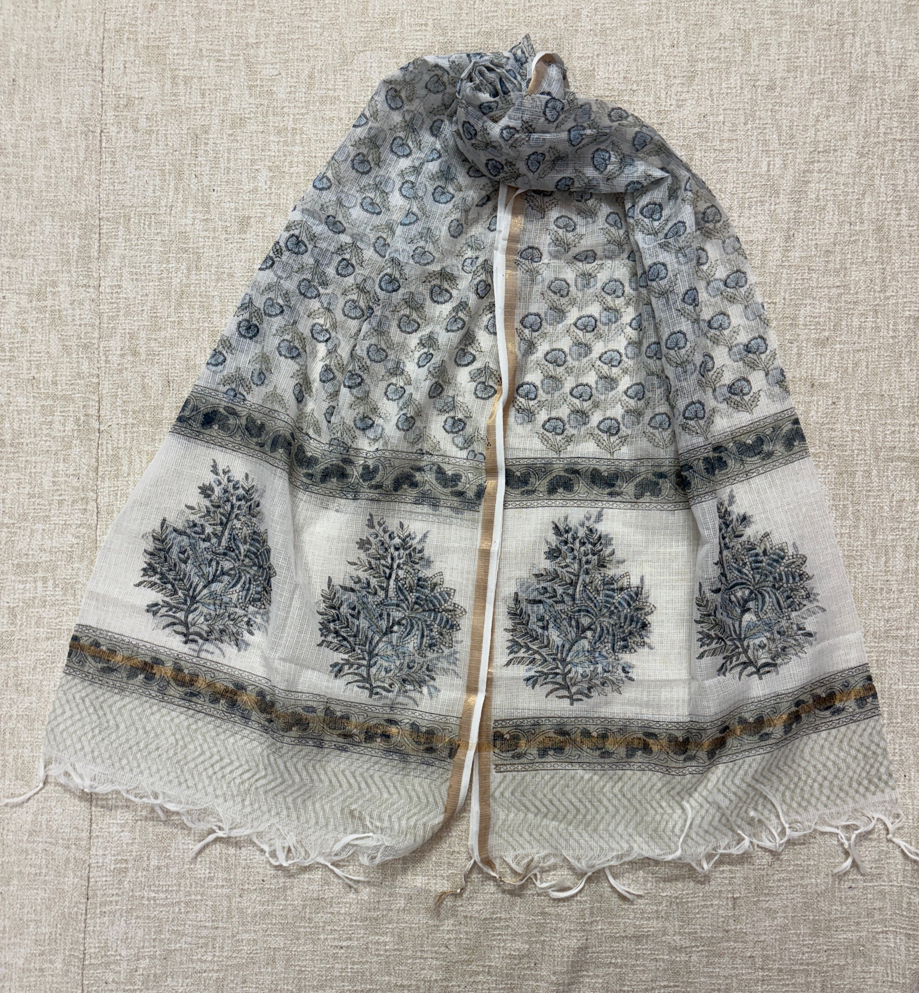 • Fabric Details : Top : Cotton with block print || Bottom : Handloom Cotton || Dupatta : Kota Doria Dupatta