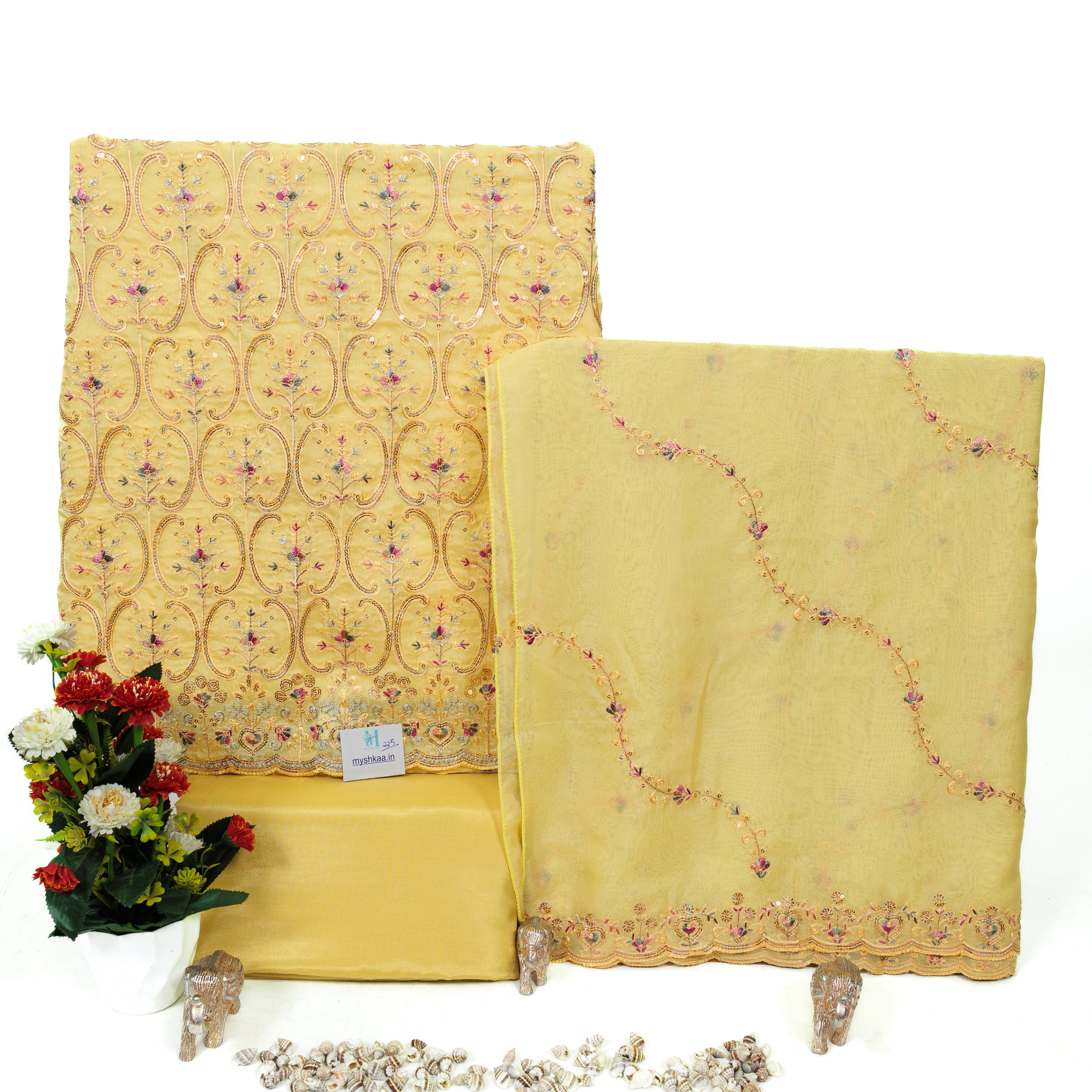 Yellow Party Wear Chanderi Suit fabric and dupatta