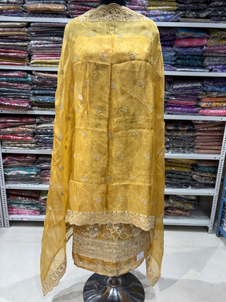 Mustard Silk Party Wear Designer Suit fabric with soft organza dupatta
