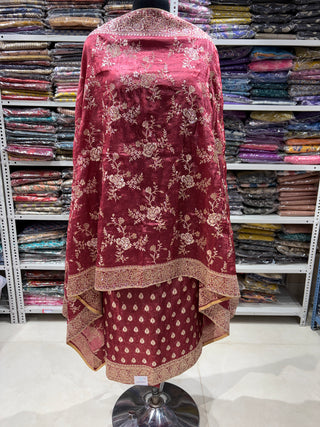 Maroon Crushed Shimmer Party Wear Designer Suit fabric with shimmer dupatta