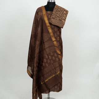 Brown Handblock Maheshwari Suit Material with Maheshwari Dupatta