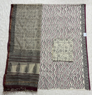 Beige Cotton Handblock Office Wear Suit fabric with Kota Doria Dupatta