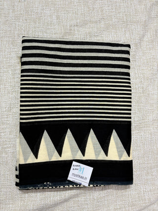 Ajrakh Hand Block Print Cotton Saree with Unstitched Blouse Piece