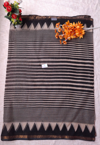 Ajrakh Handblock Print Kota Doria Cotton Saree with Zari border and Unstitched Blouse Piece
