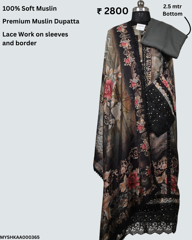 Fabric Details : Top : Muslin with lace work || Bottom : Shantoon || Dupatta : Muslin with lace work and digital print