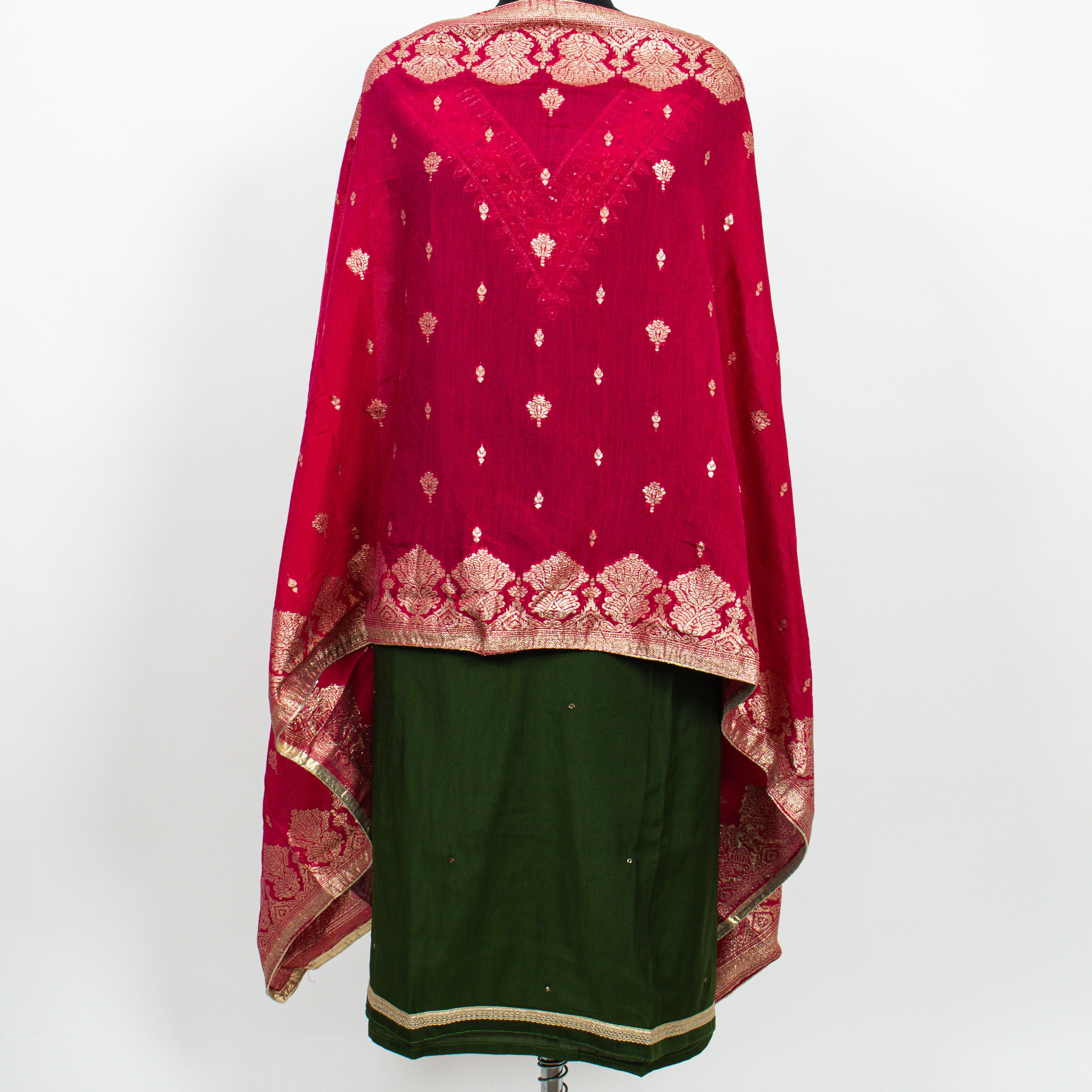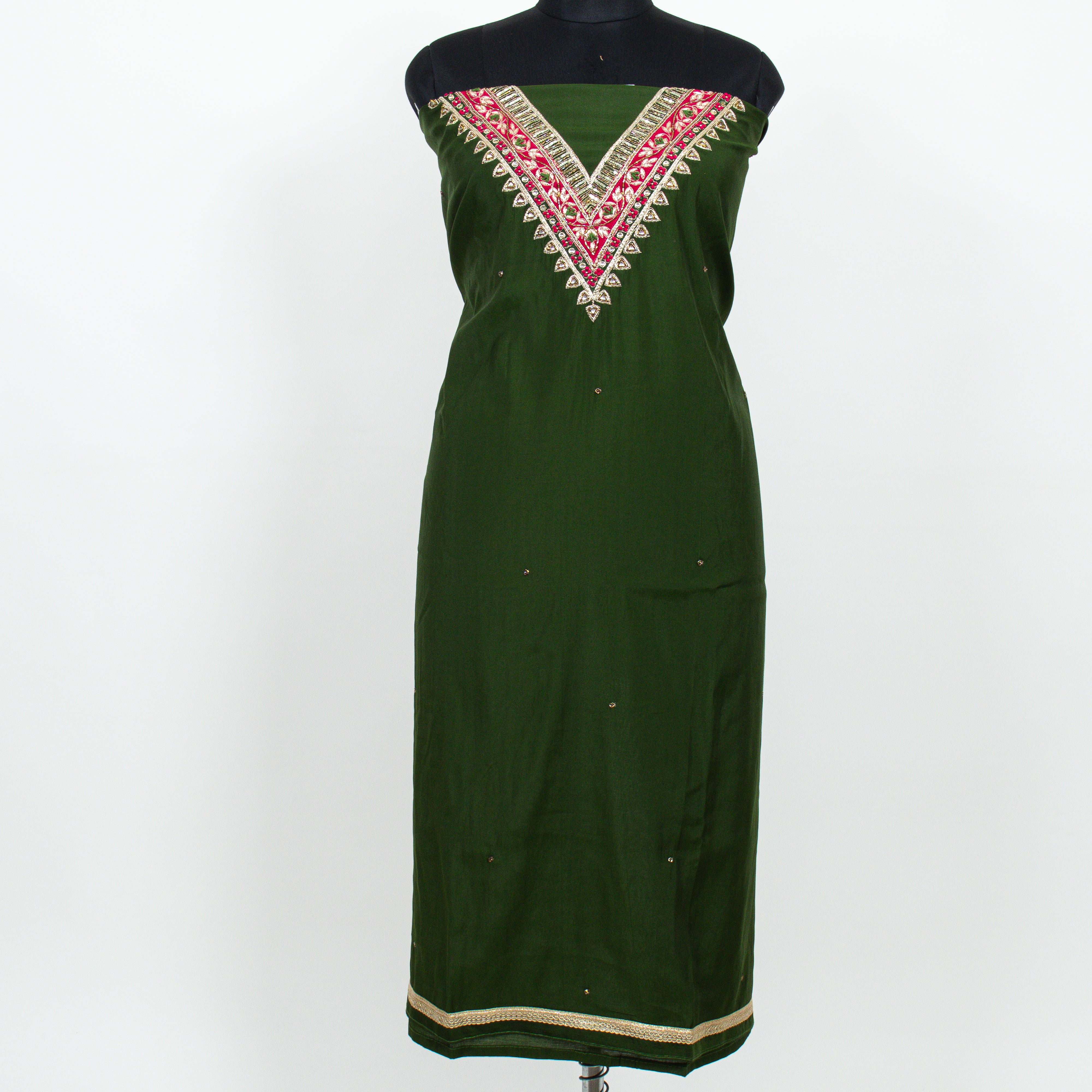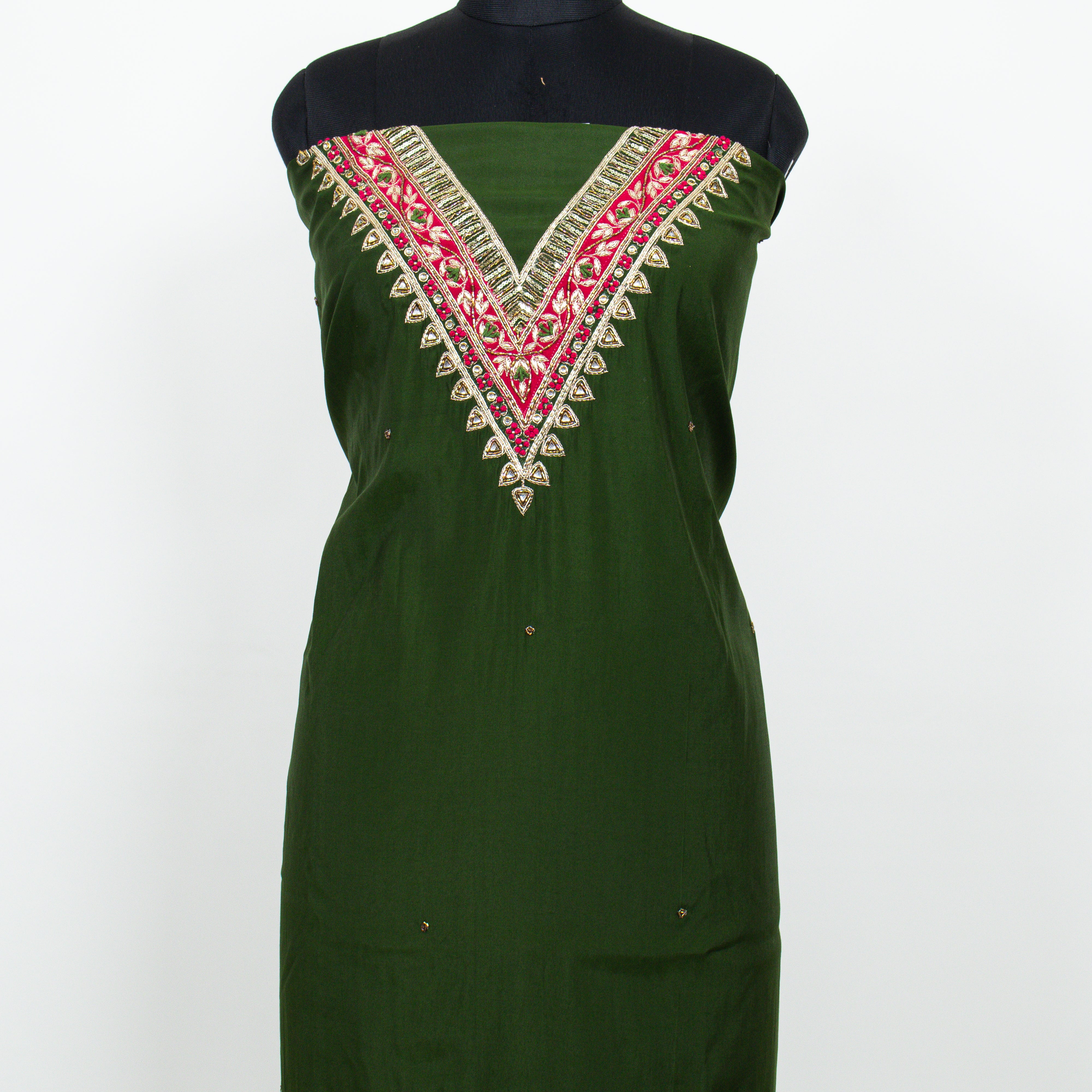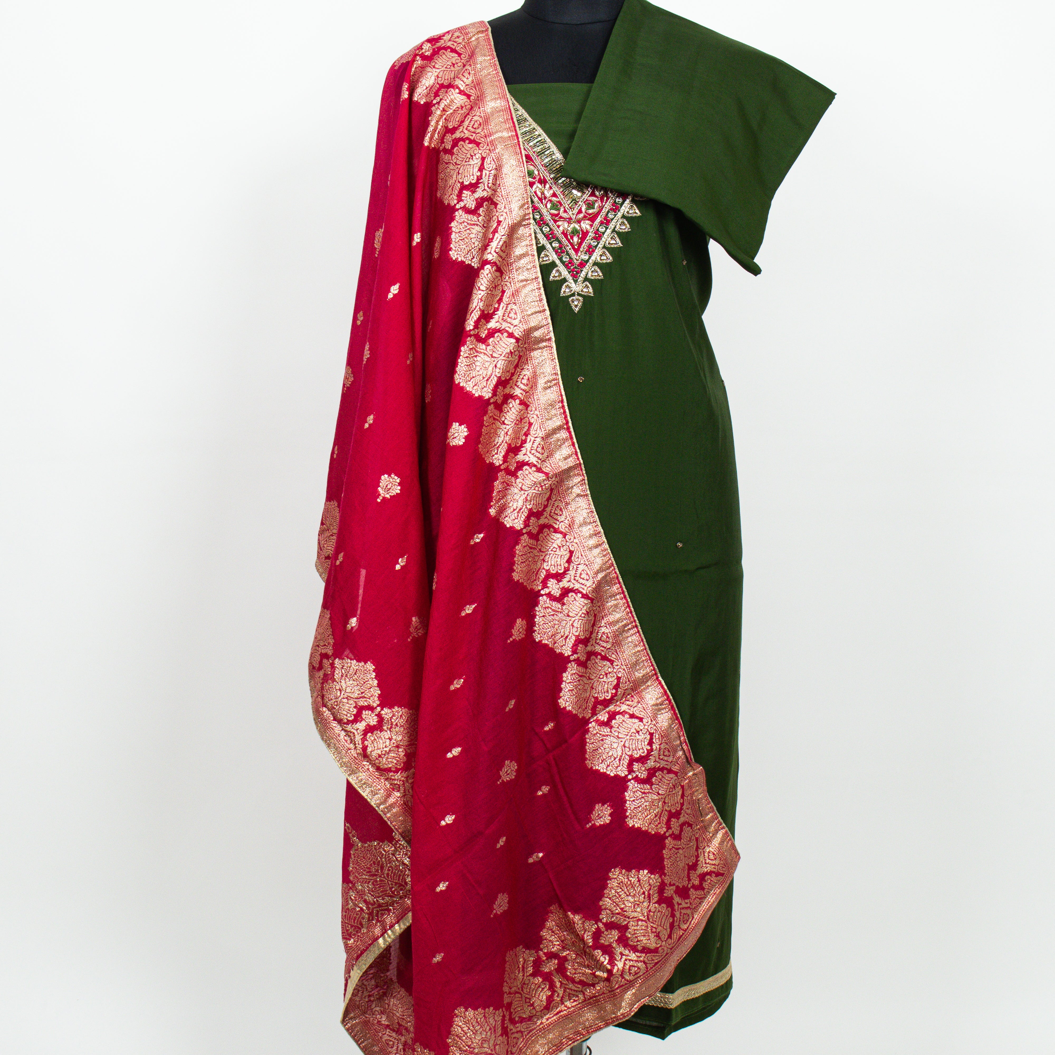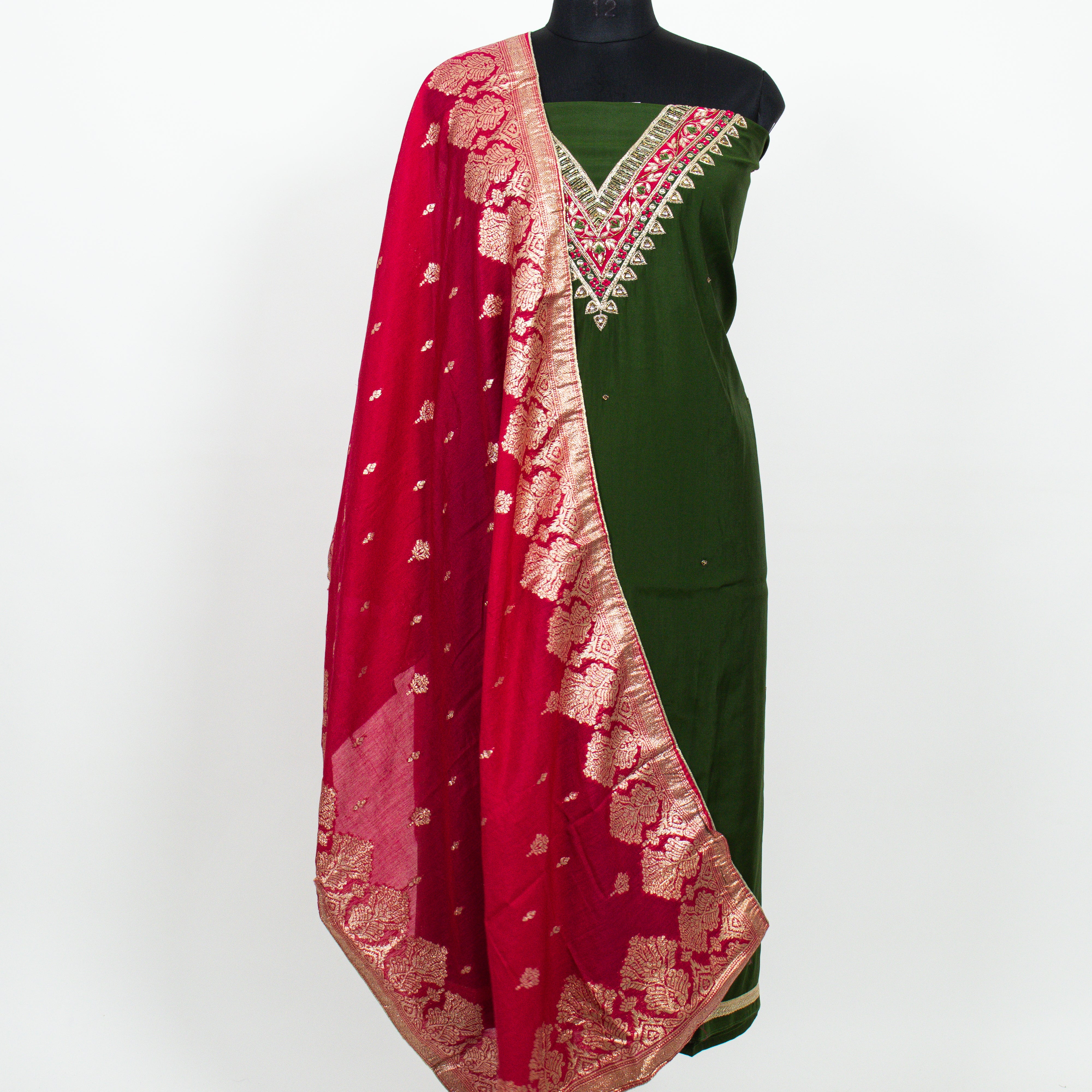 - Green Party Wear Designer Suit fabric with embroidery and banarasi dupatta