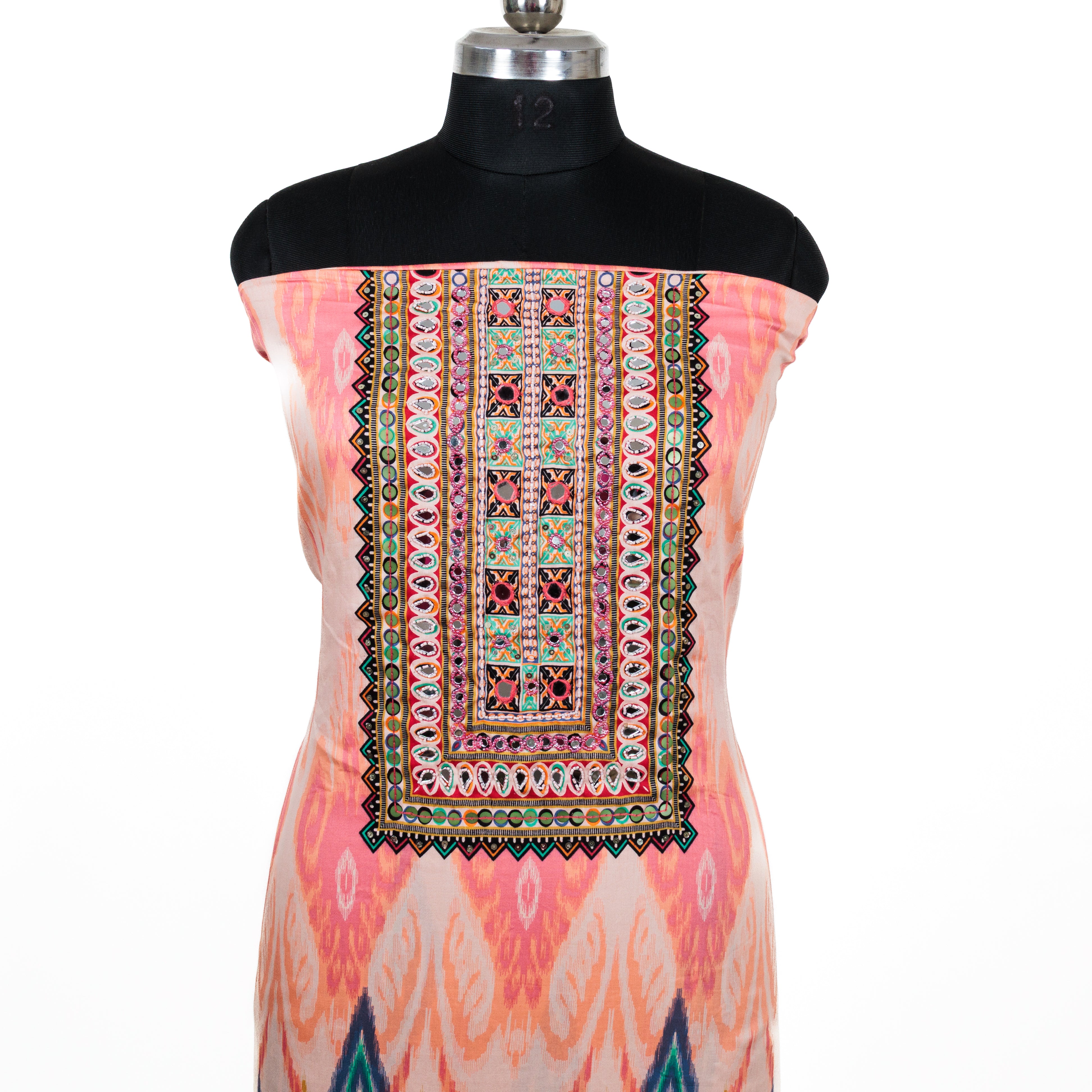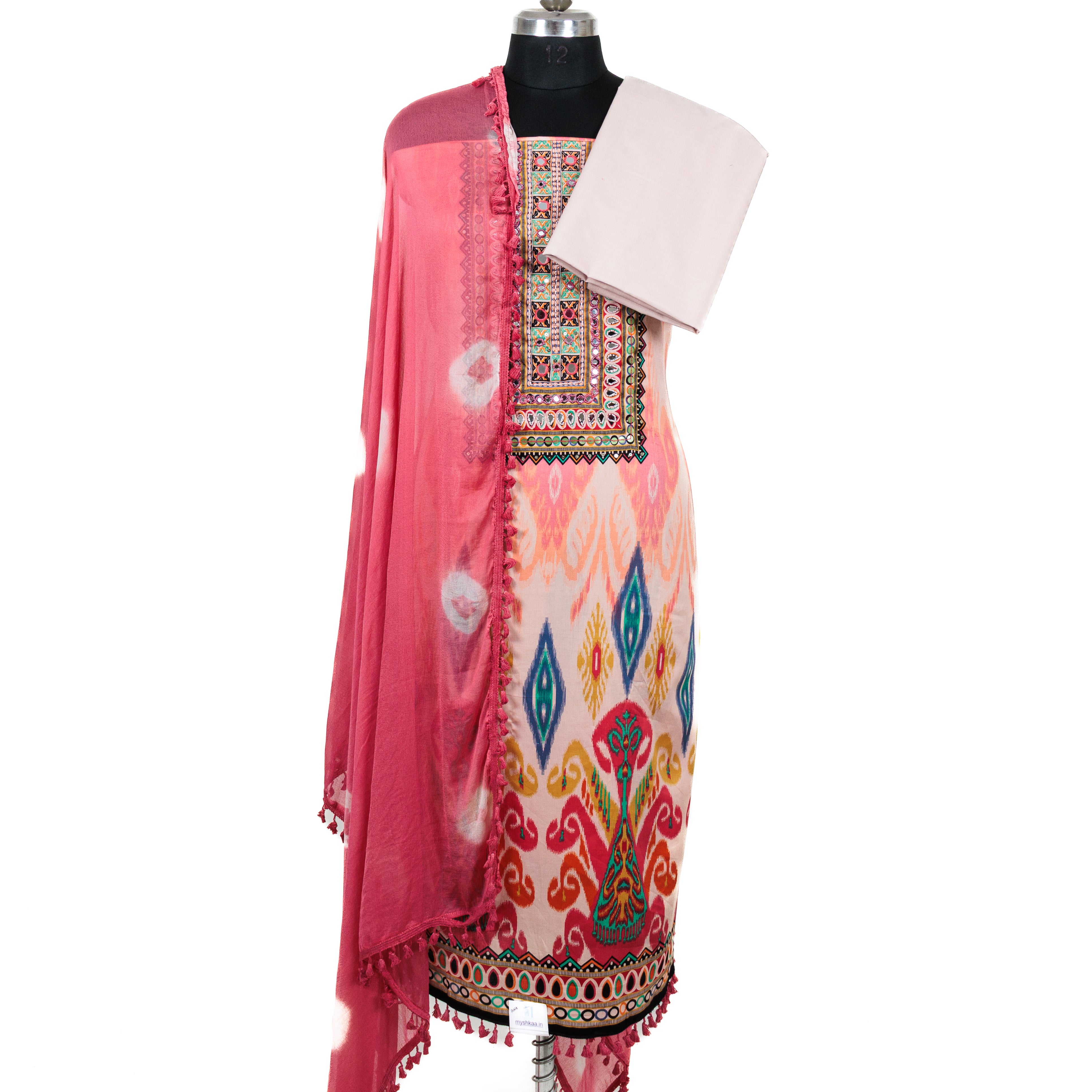 - Bohemian Print Cotton Office Wear Suit fabric with Chiffon Dupatta