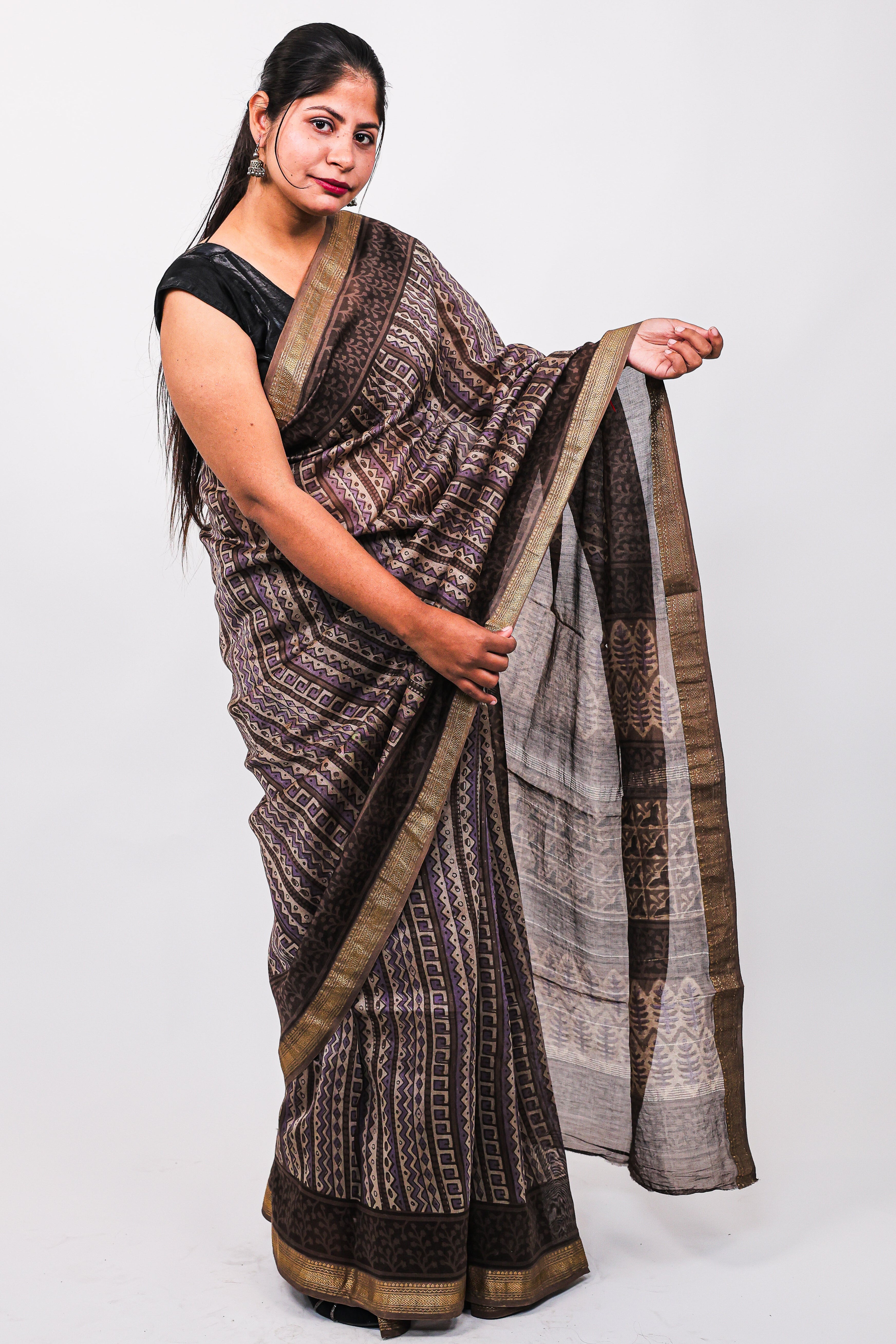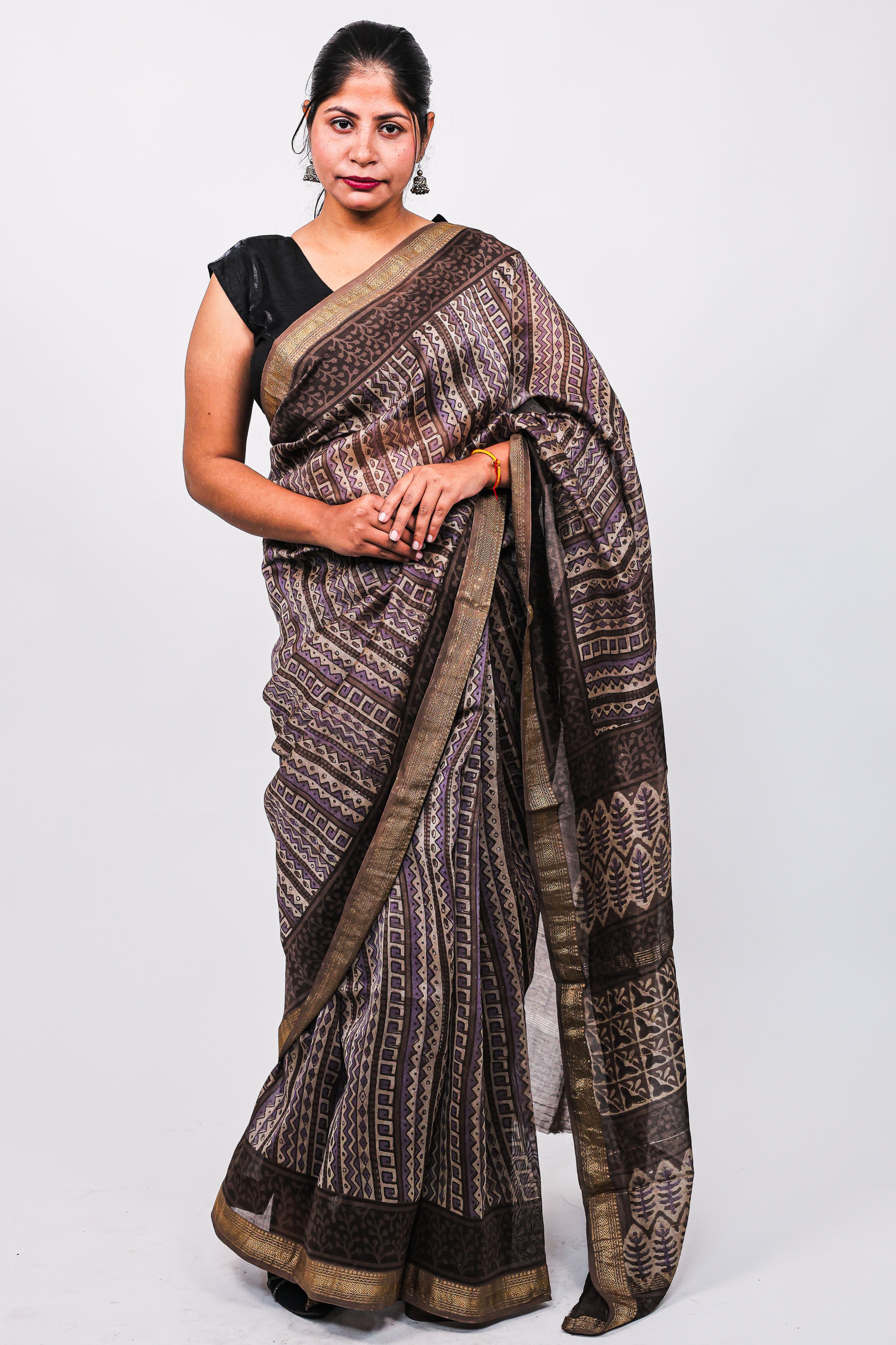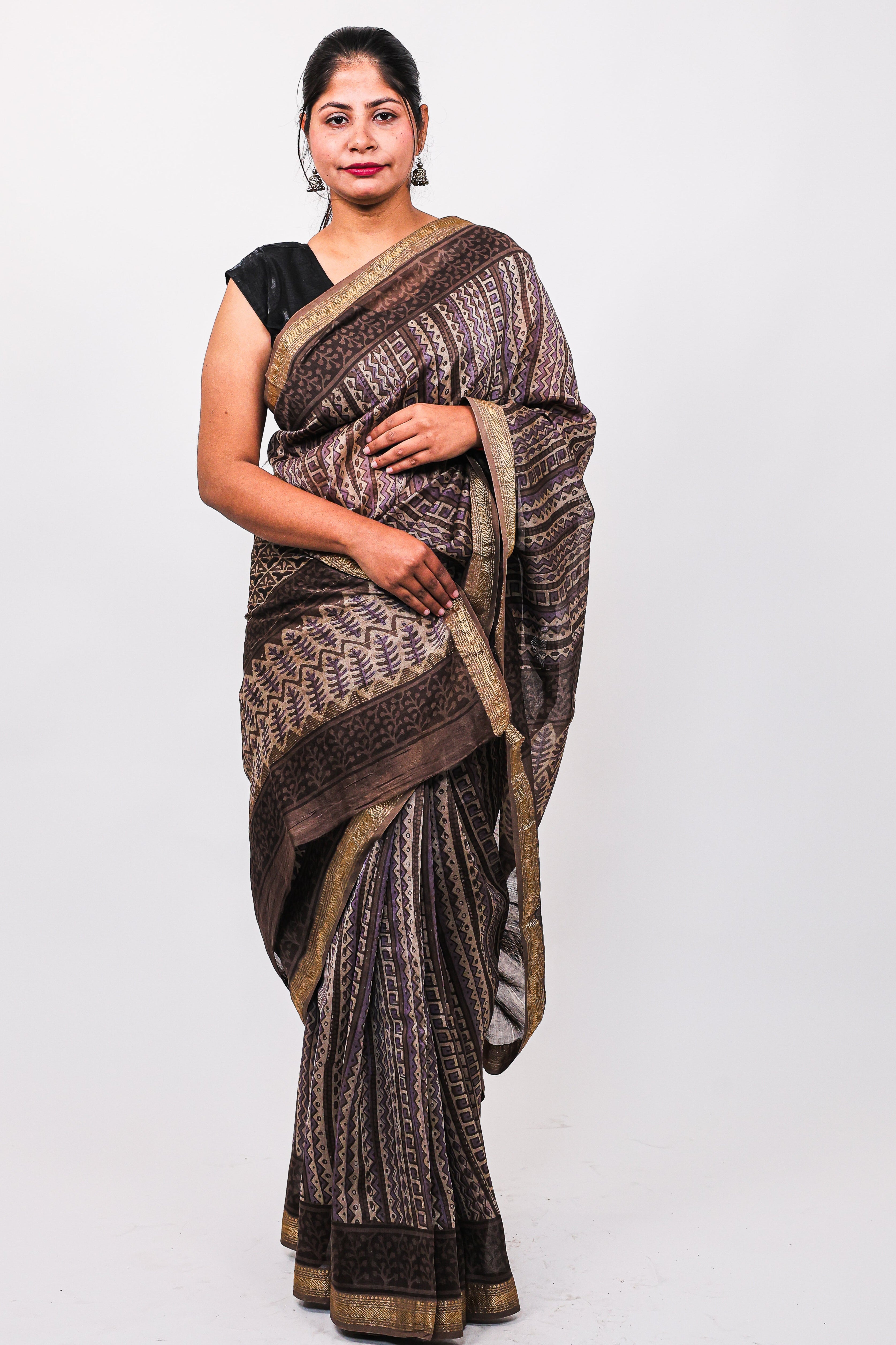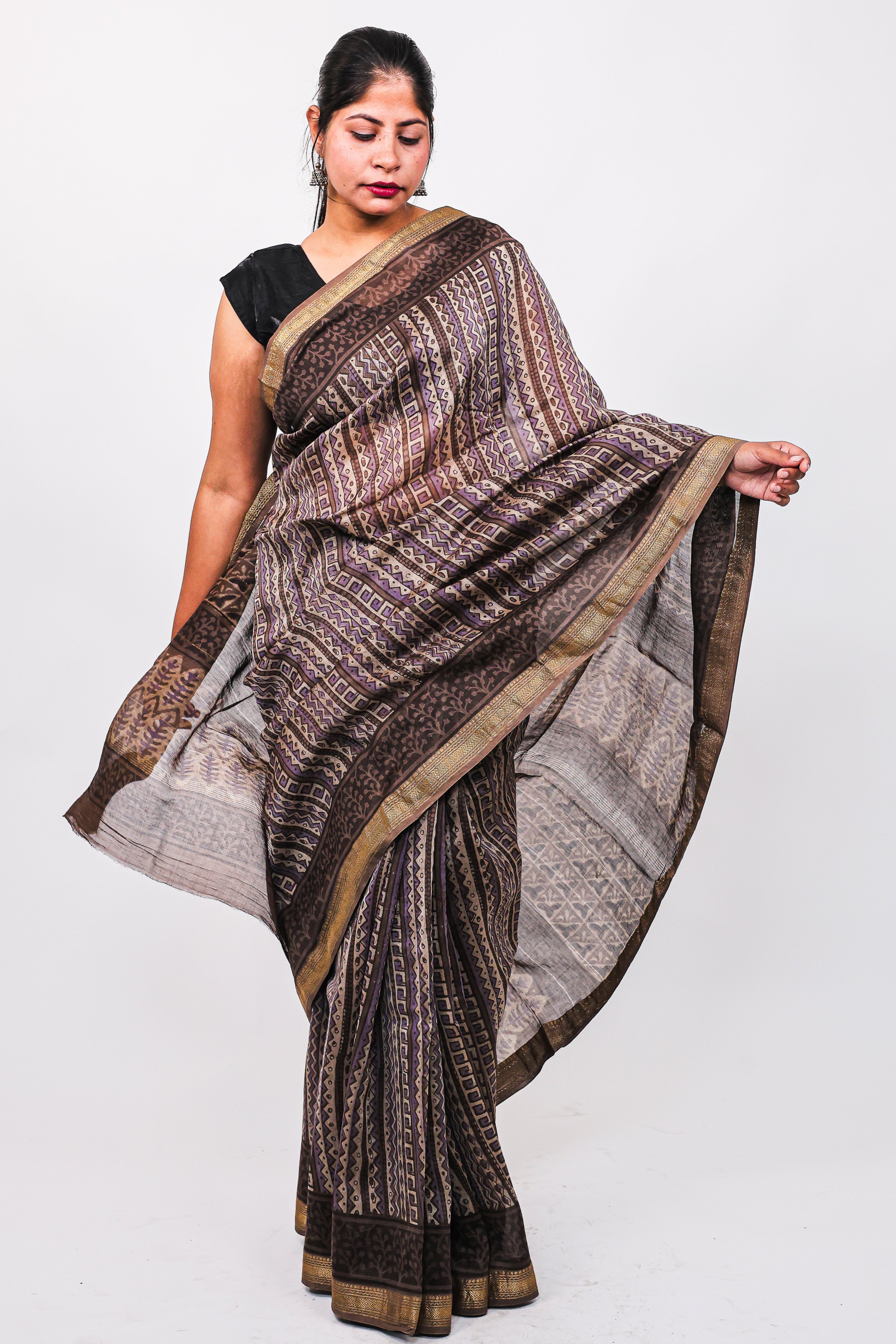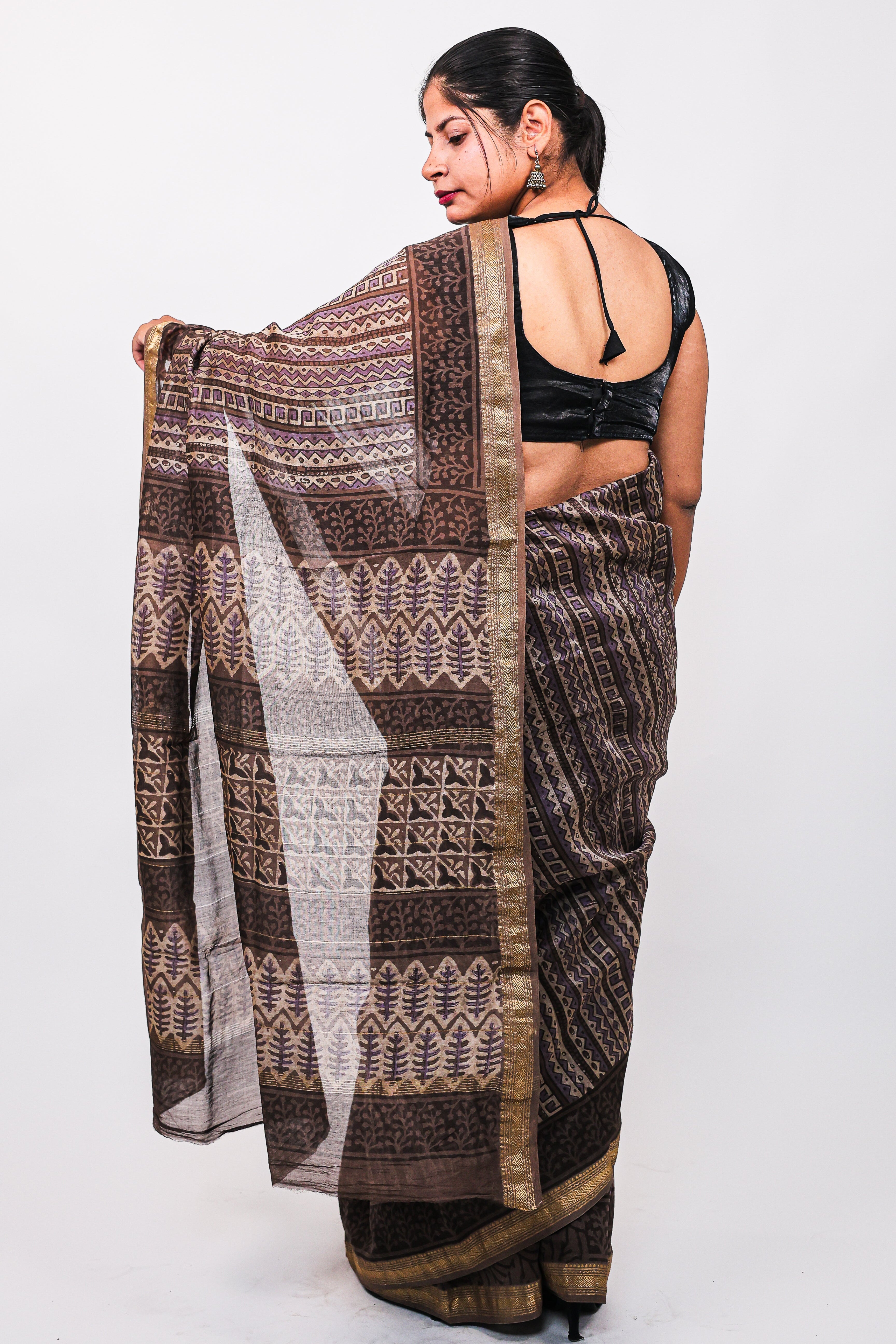 This Premium Brown Maheshwari Silk Saree with blouse piece is suitable for all occasions like functions, weddings, office or any formal events.