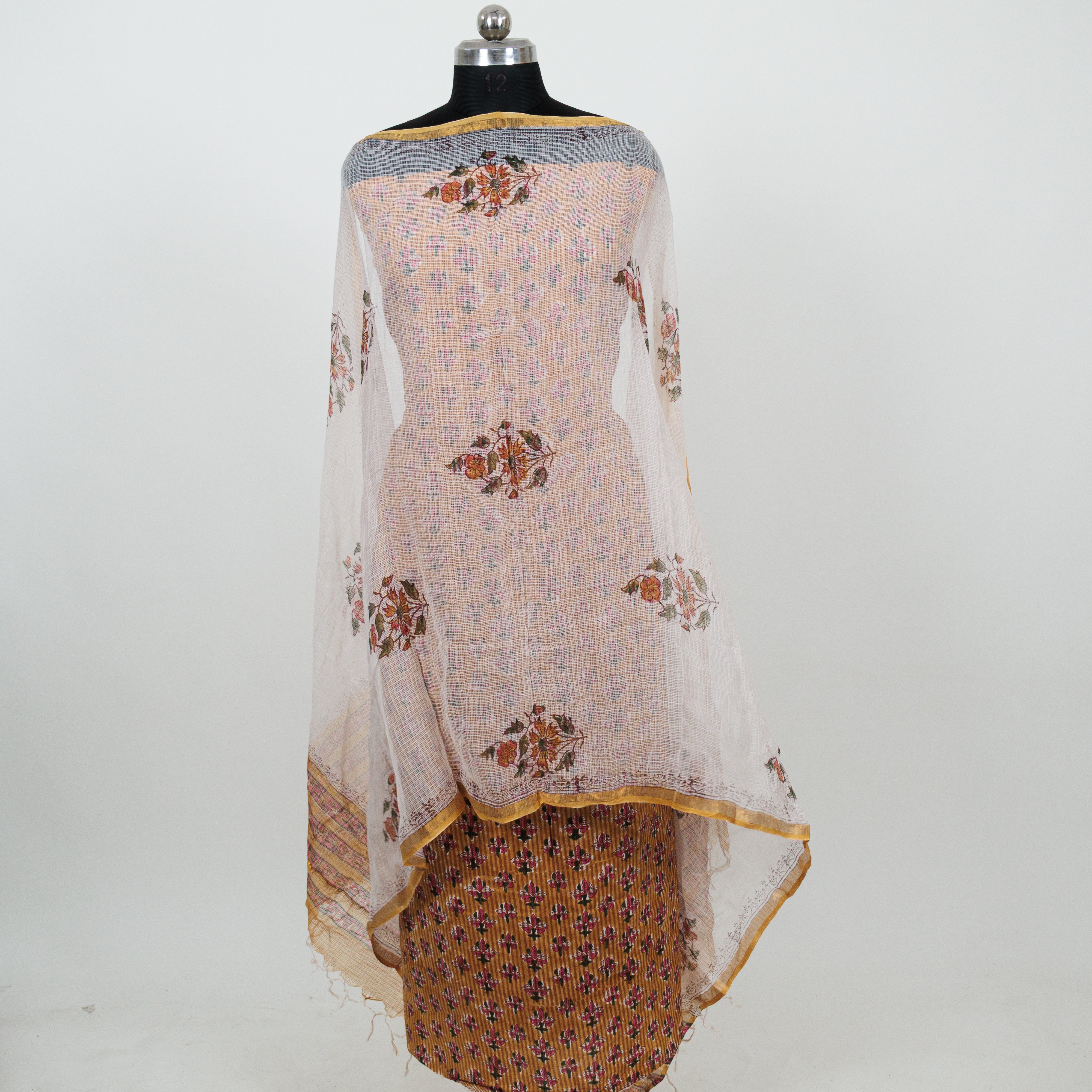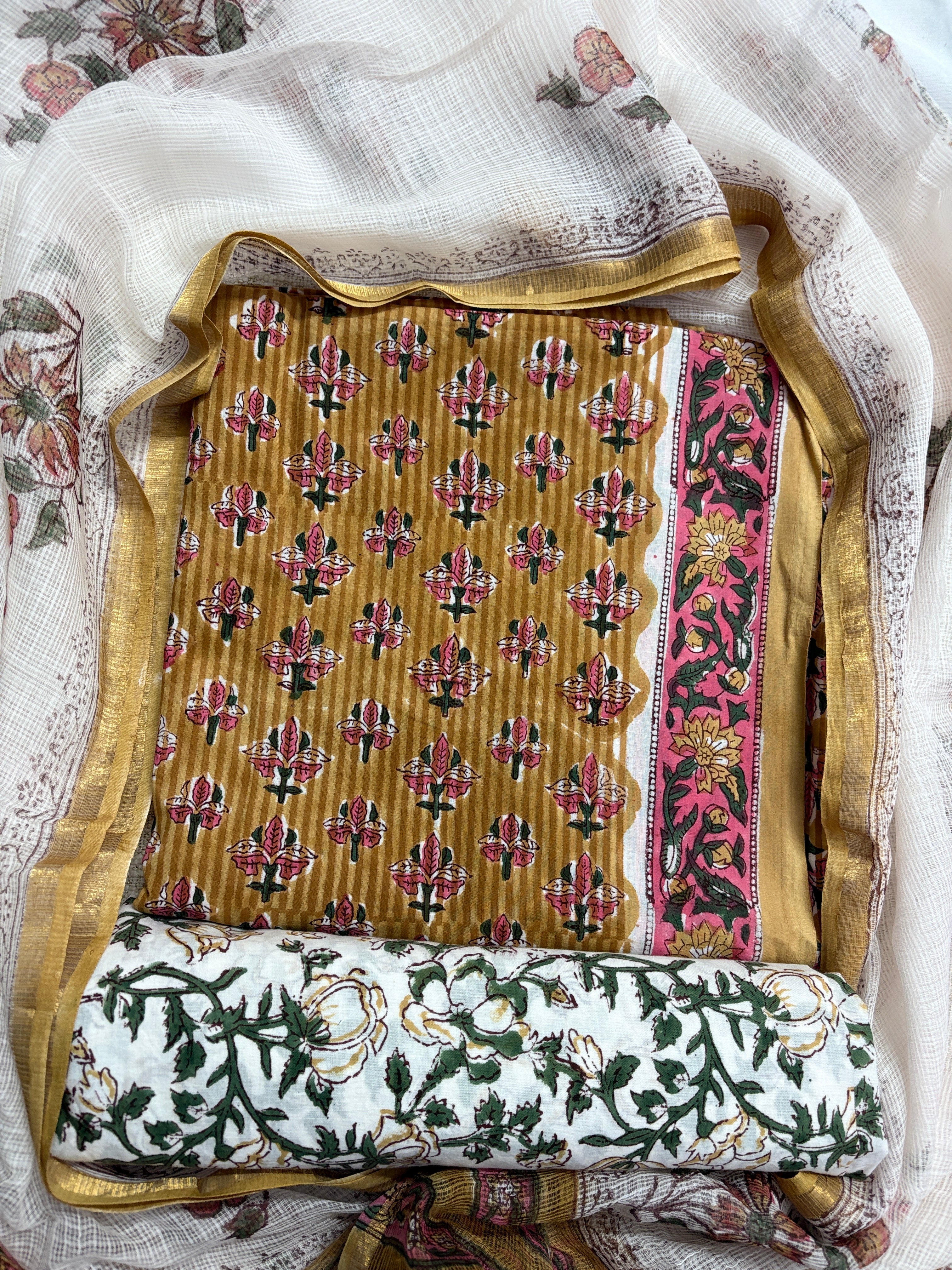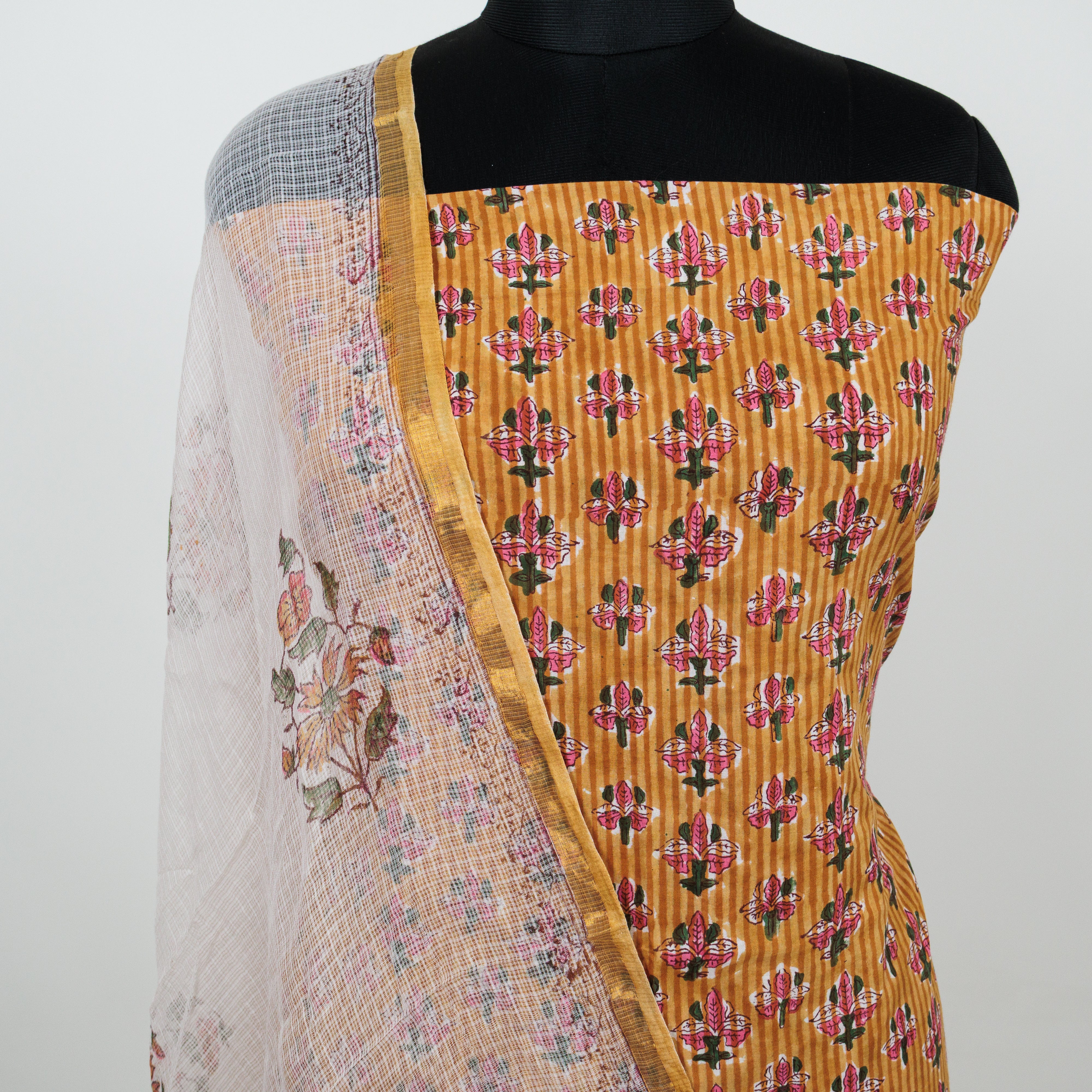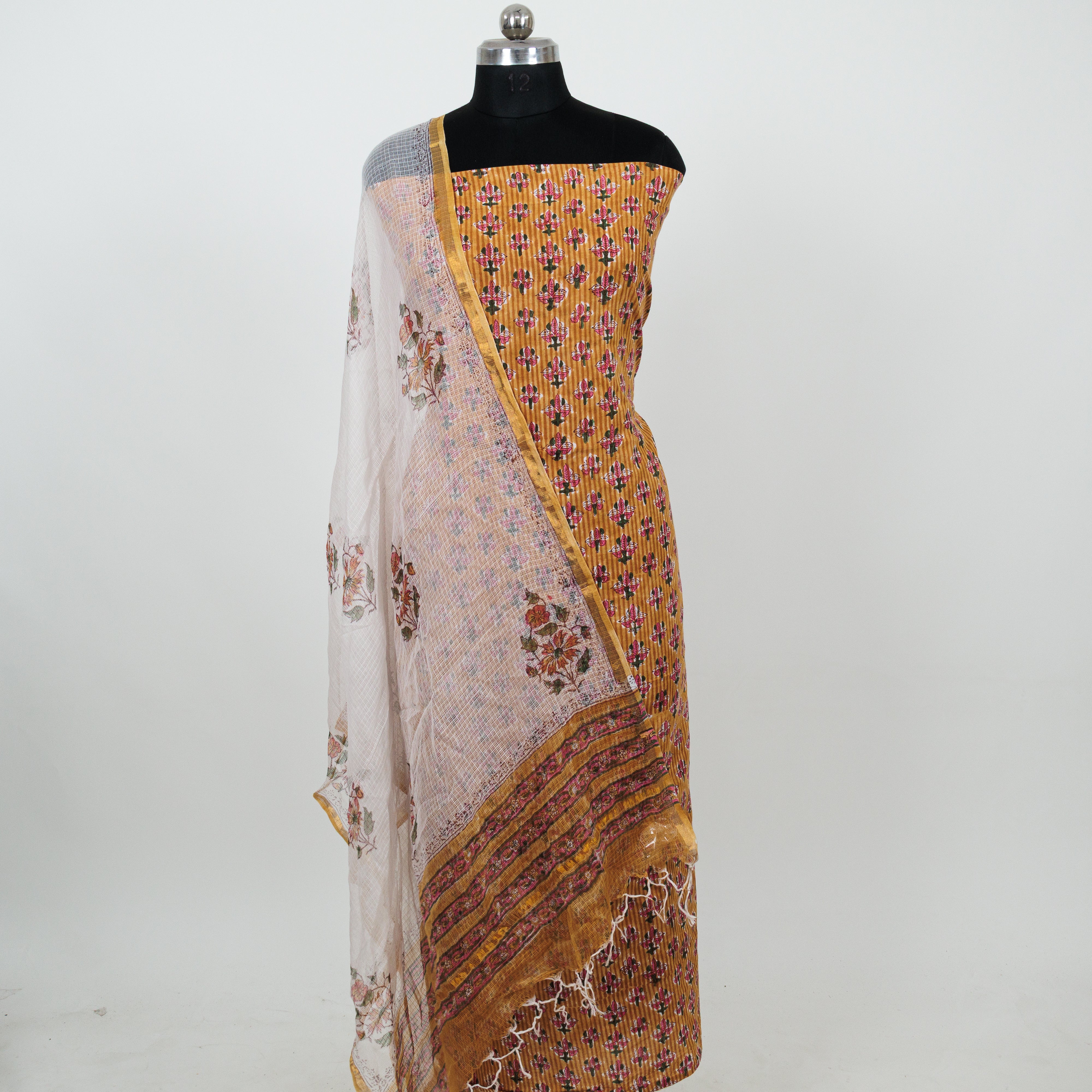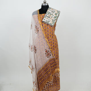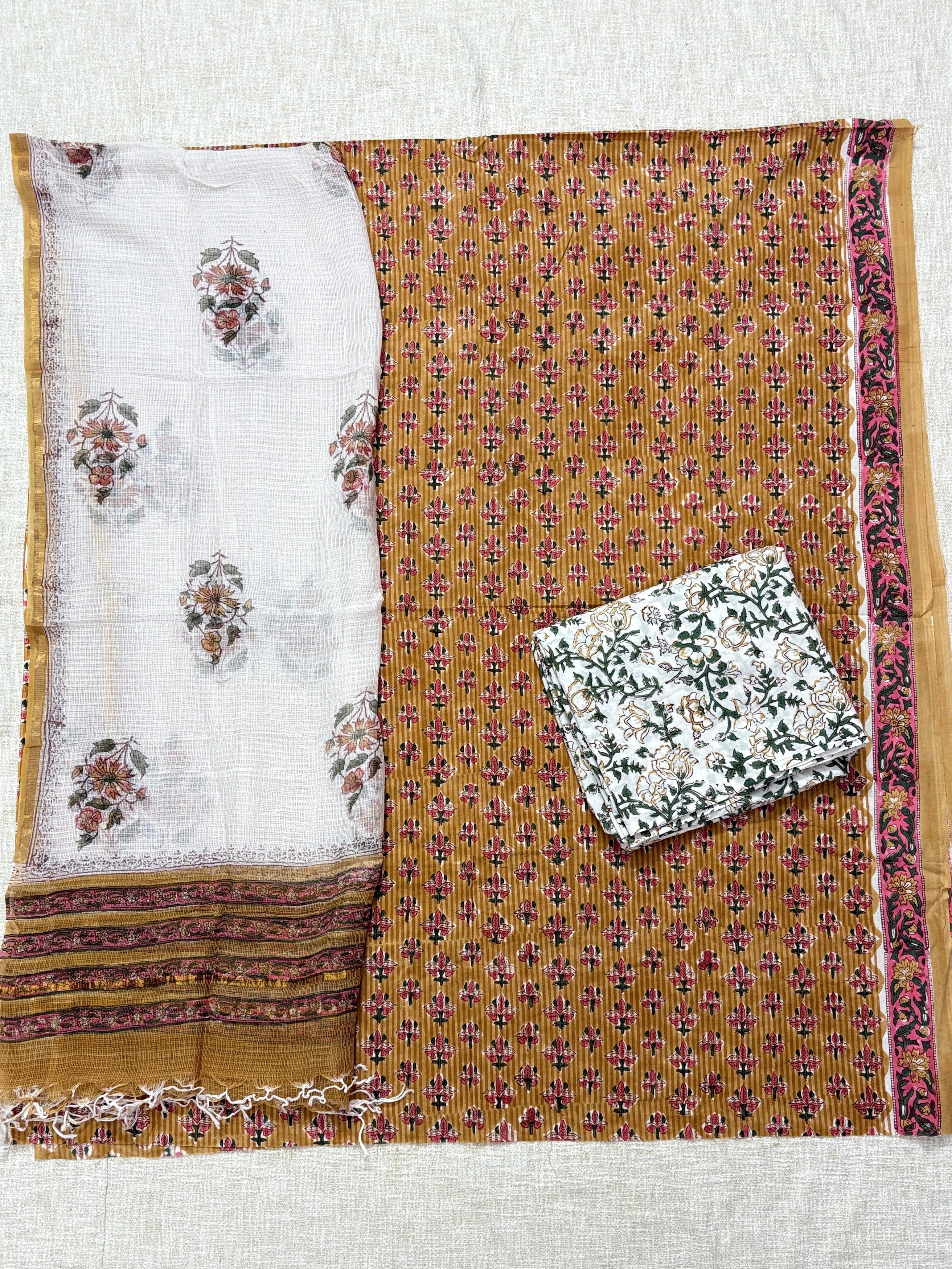 Cotton Handblock Office Wear Suit fabric with Kota Doria Dupatta