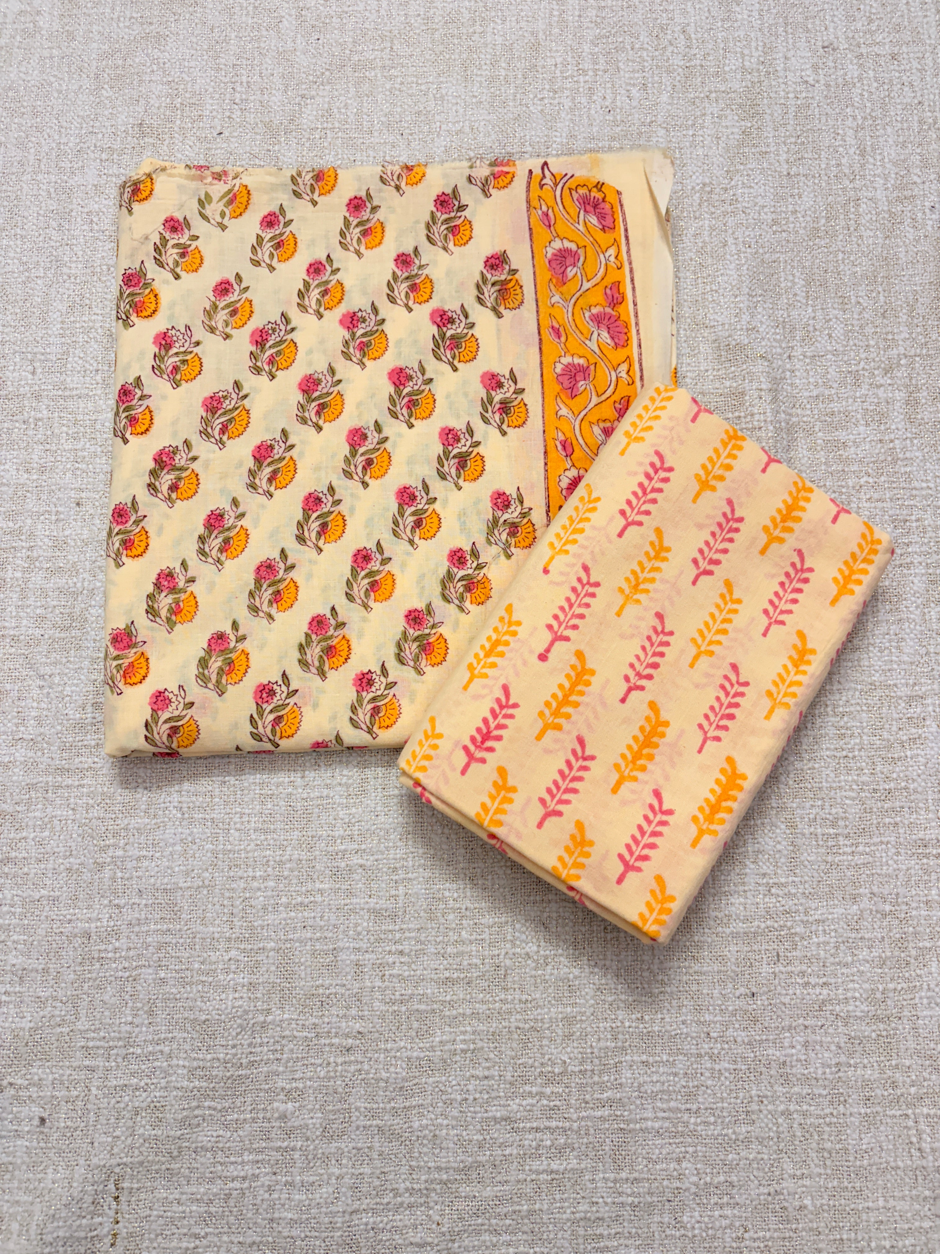 Cotton Handblock Office Wear Suit fabric with Kota Doria Dupatta