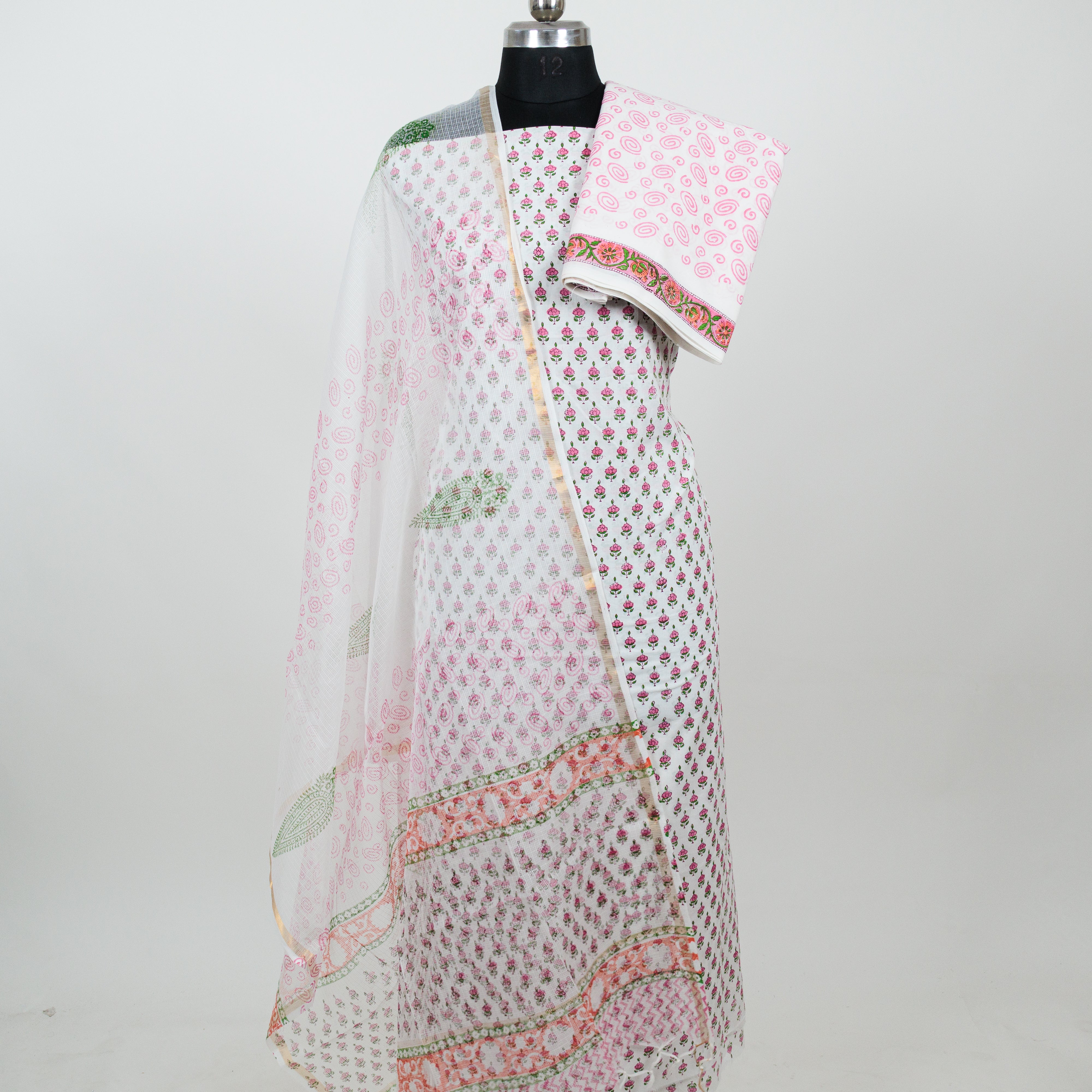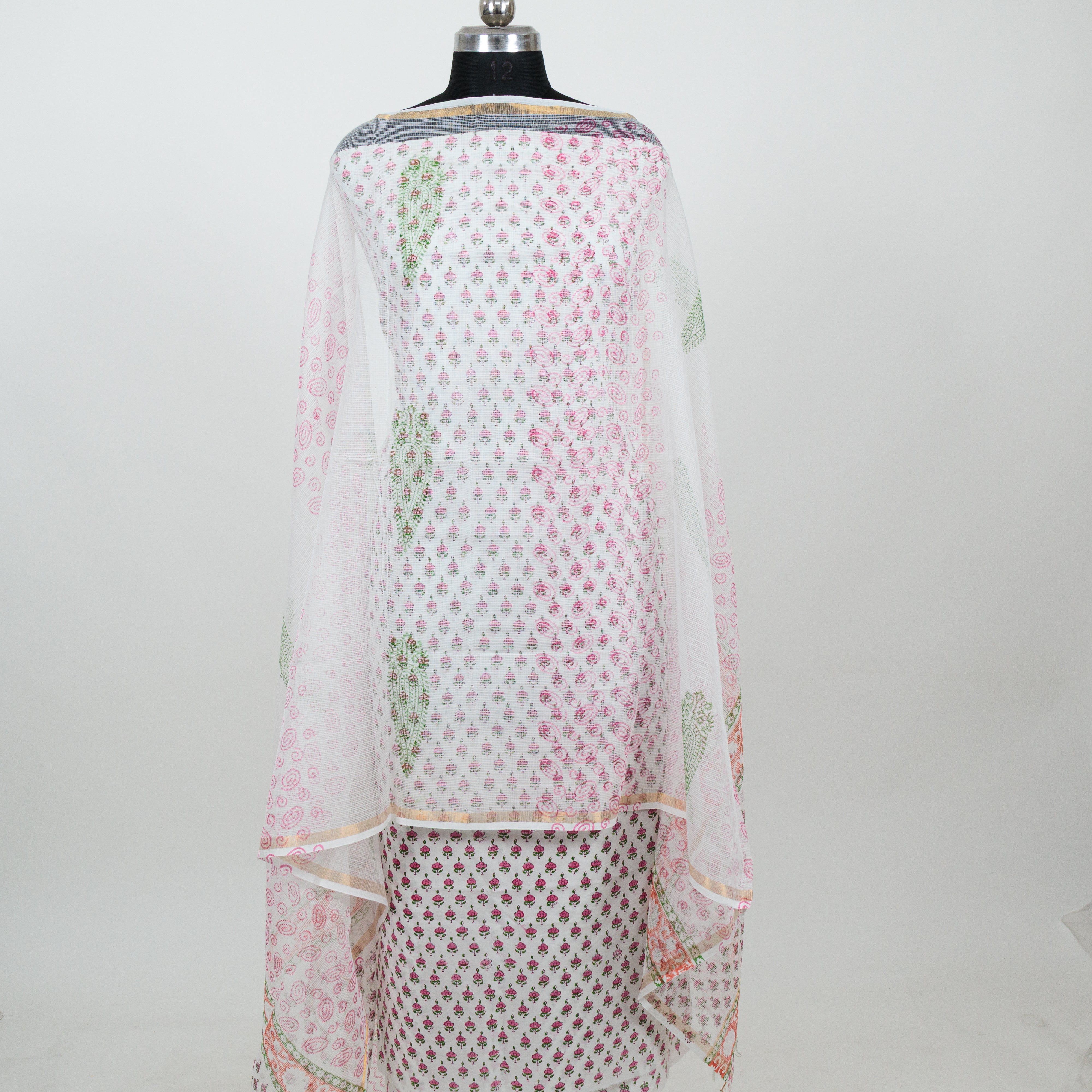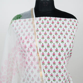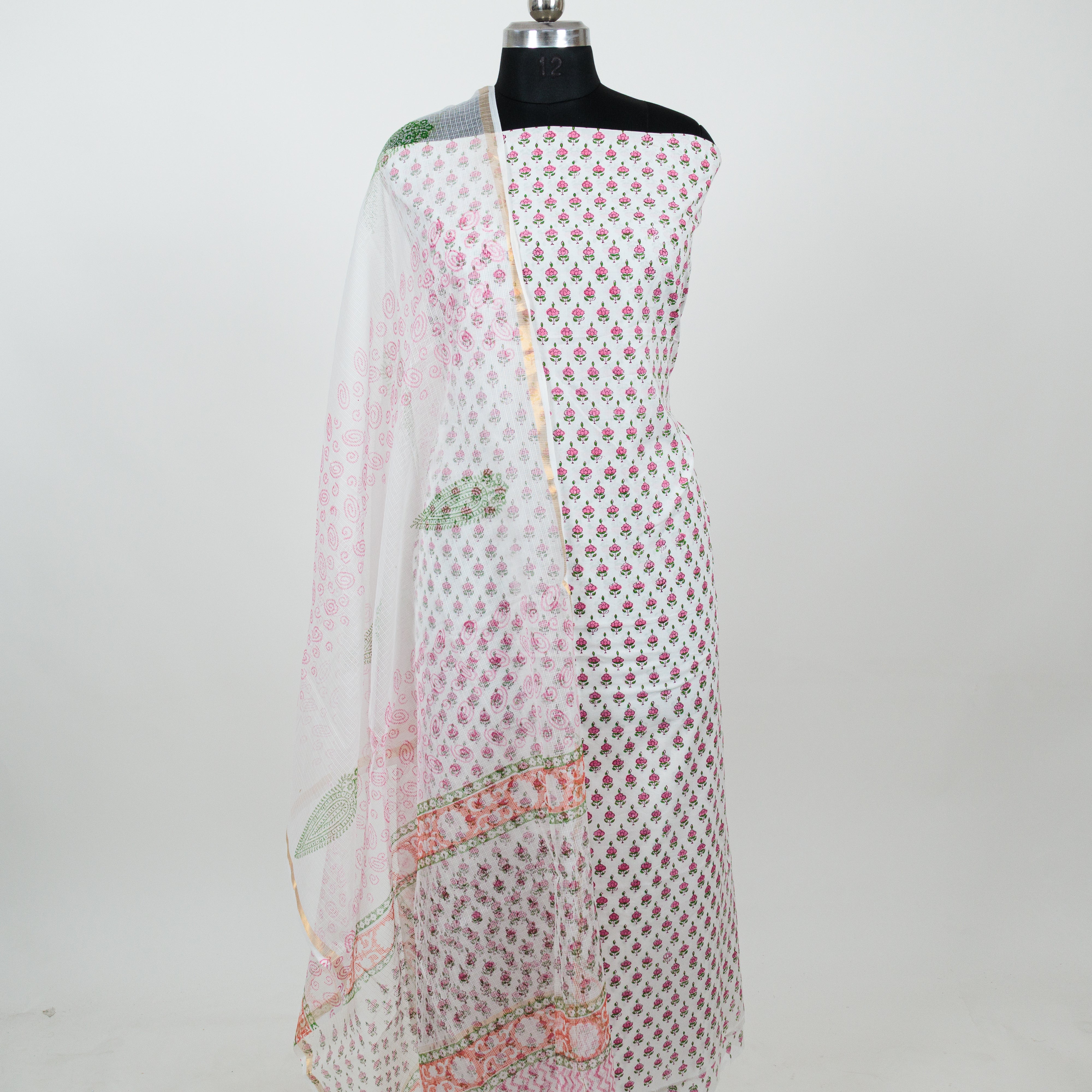 Cotton Handblock Office Wear Suit fabric with Kota Doria Dupatta