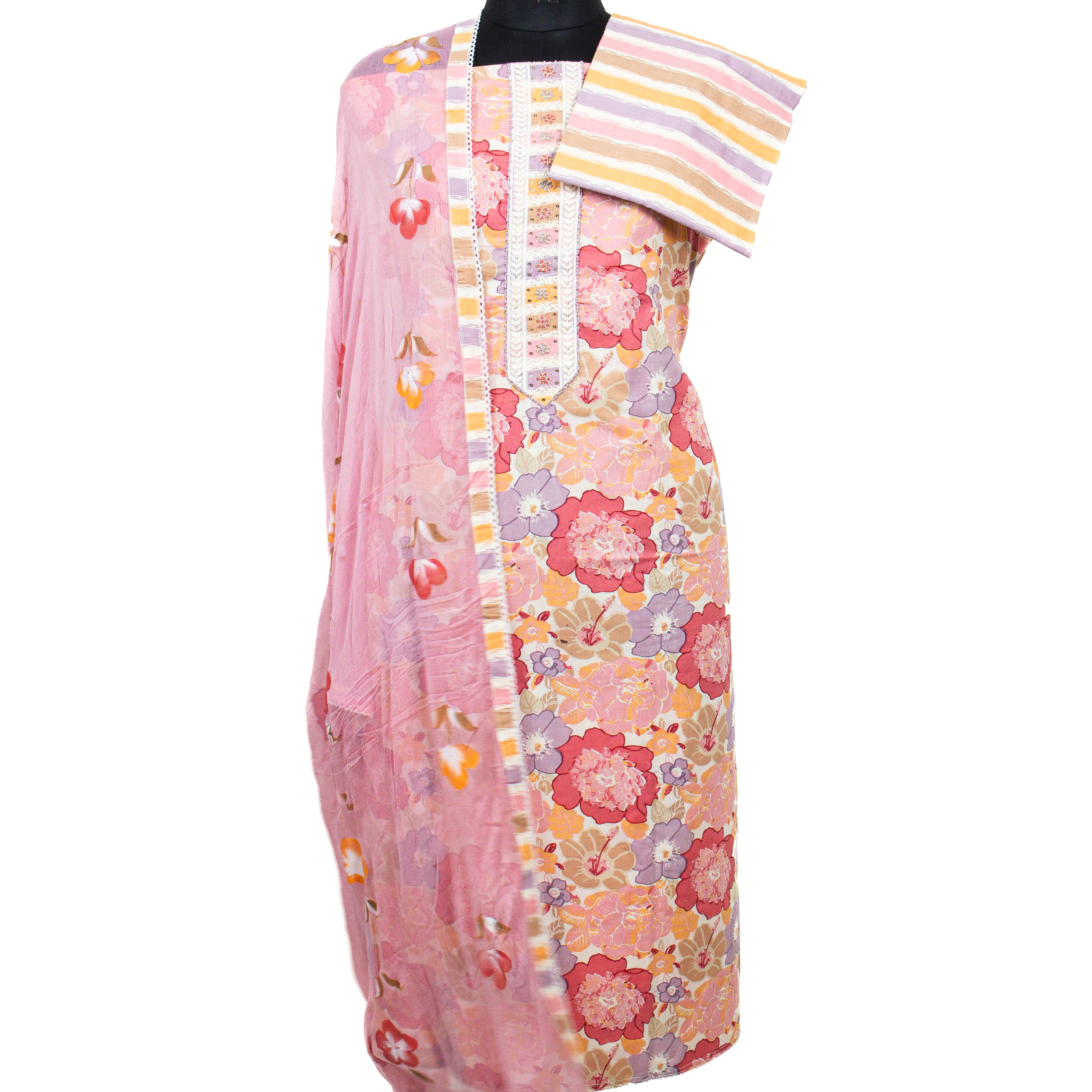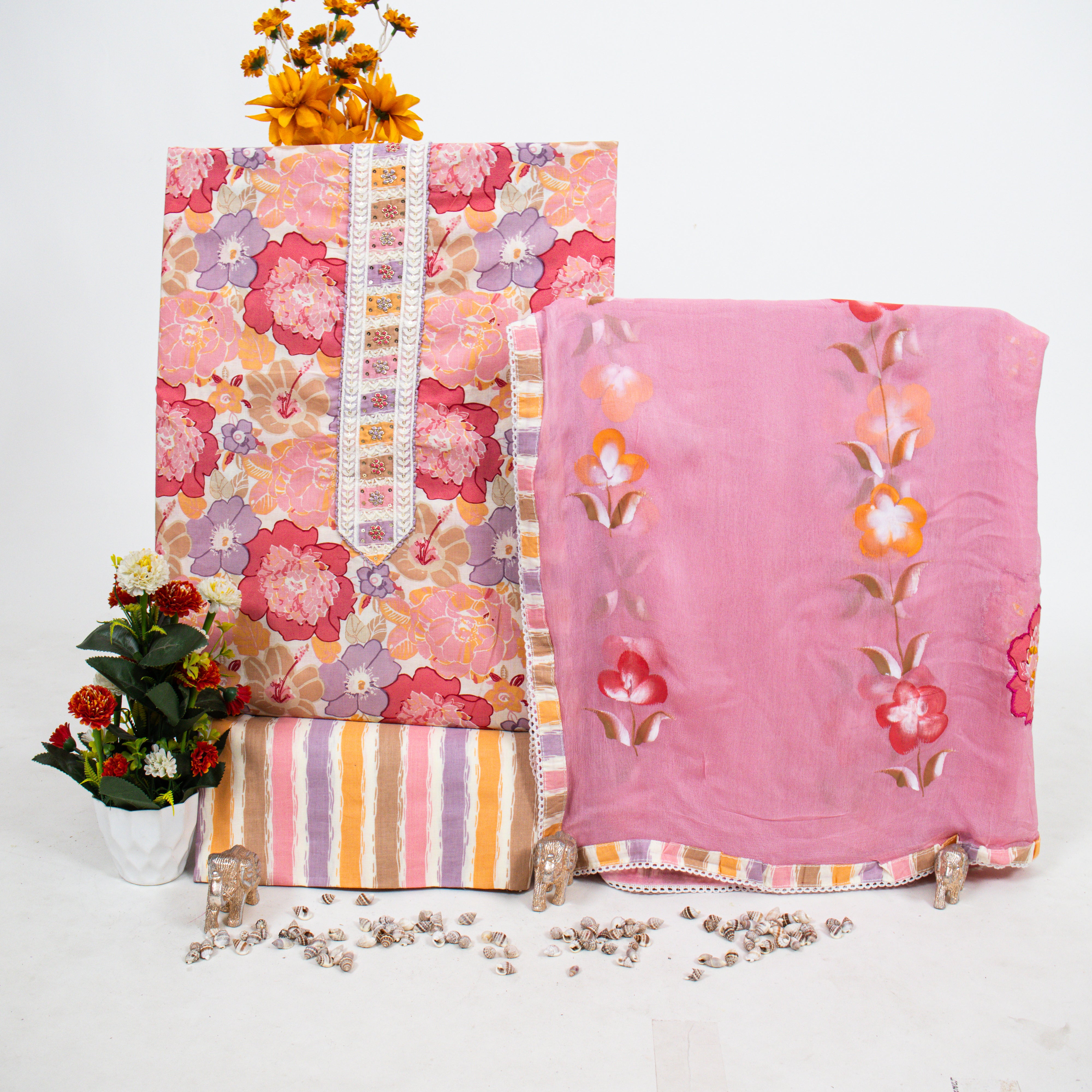Cotton Office Wear Suit Fabric with Chiffon dupatta
