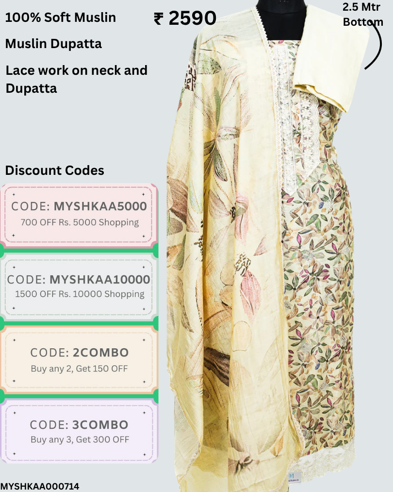 Get the perfect professional look with our Muslin Office Wear Suit Fabric. Made from high quality Muslin, this suit fabric not only provides a comfortable fit, but also exudes elegance and style. The included muslin dupatta adds a touch of sophistication, making it the perfect outfit for any office setting. Upgrade your work wardrobe with our muslin suit fabric today.