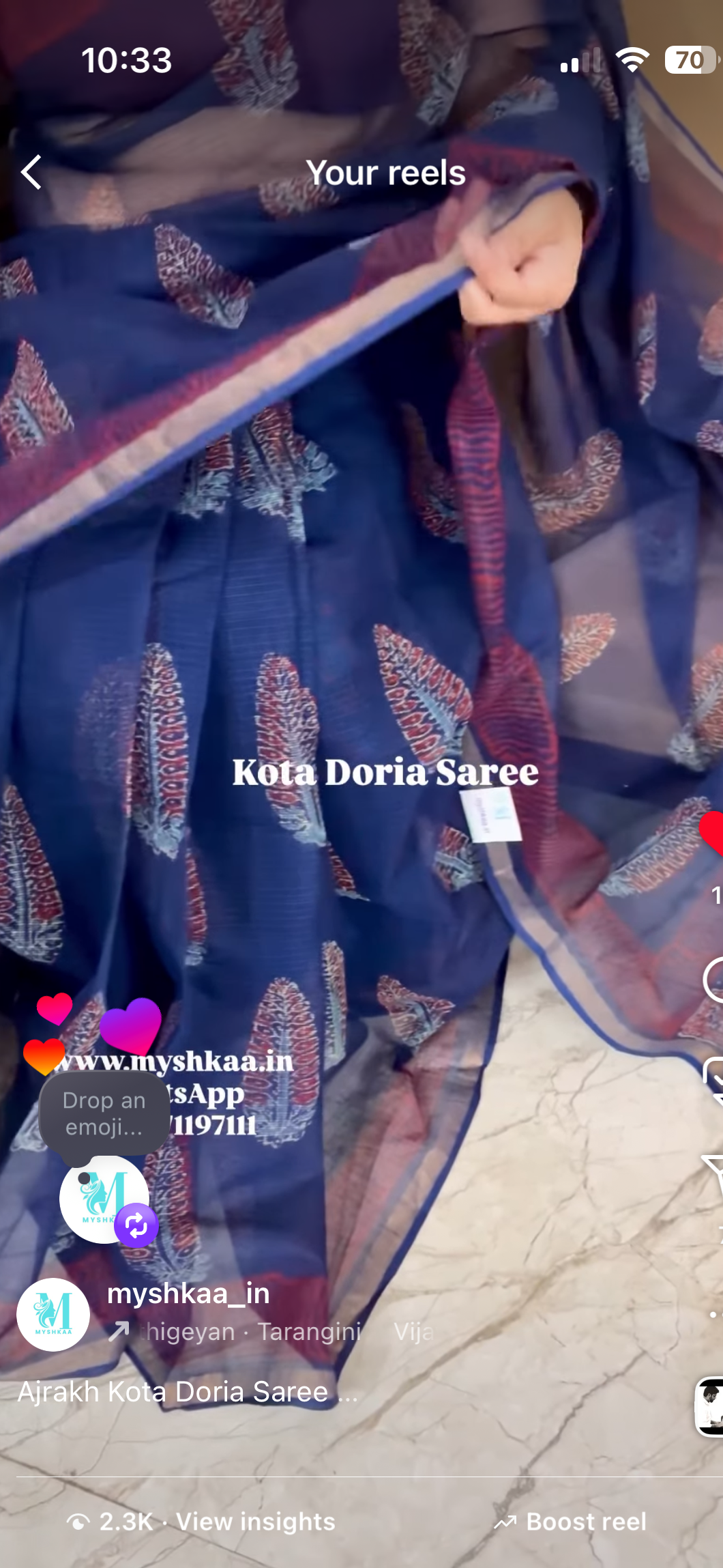 Ajrakh Handblock Print Kota Doria Cotton Saree with Zari border and Unstitched Blouse Piece