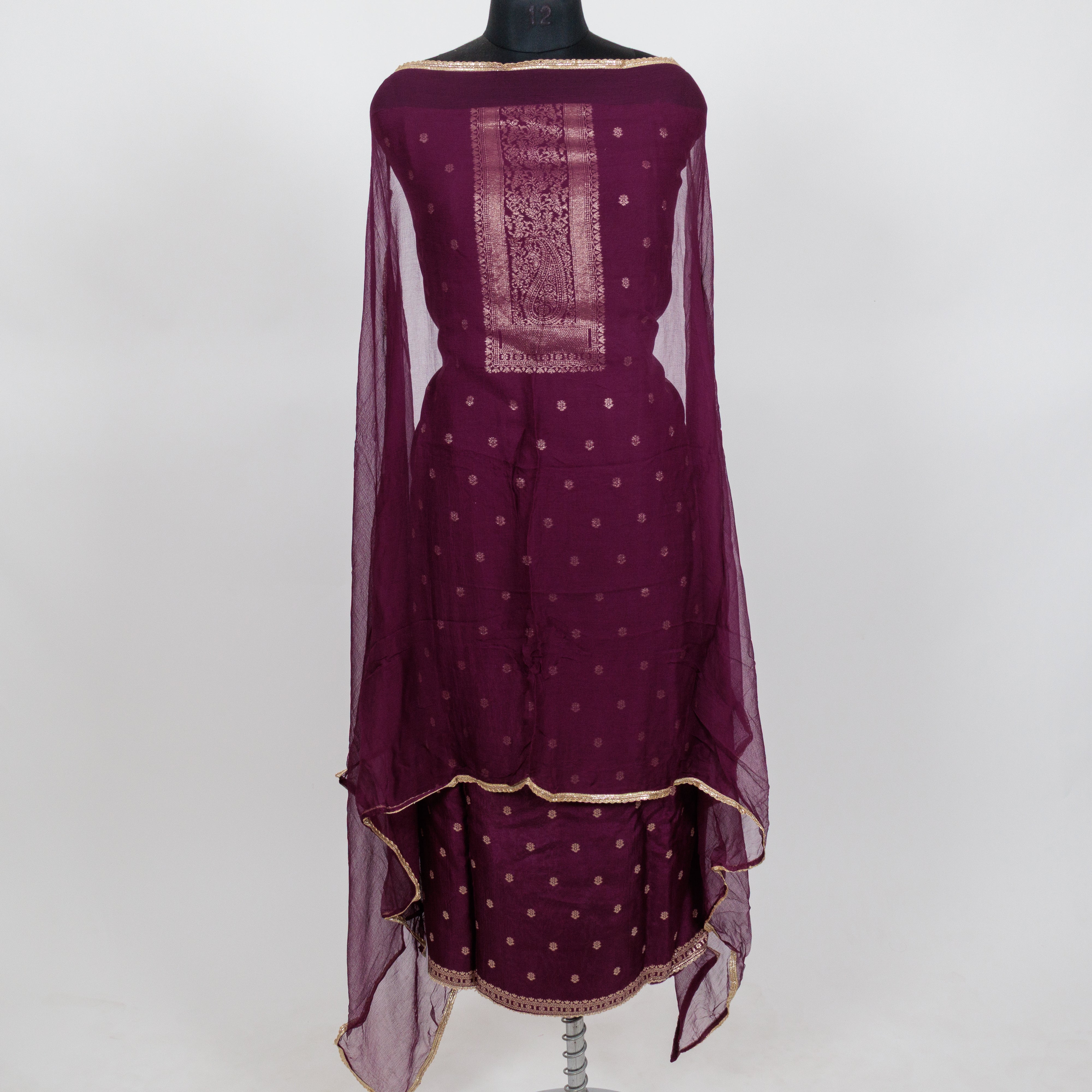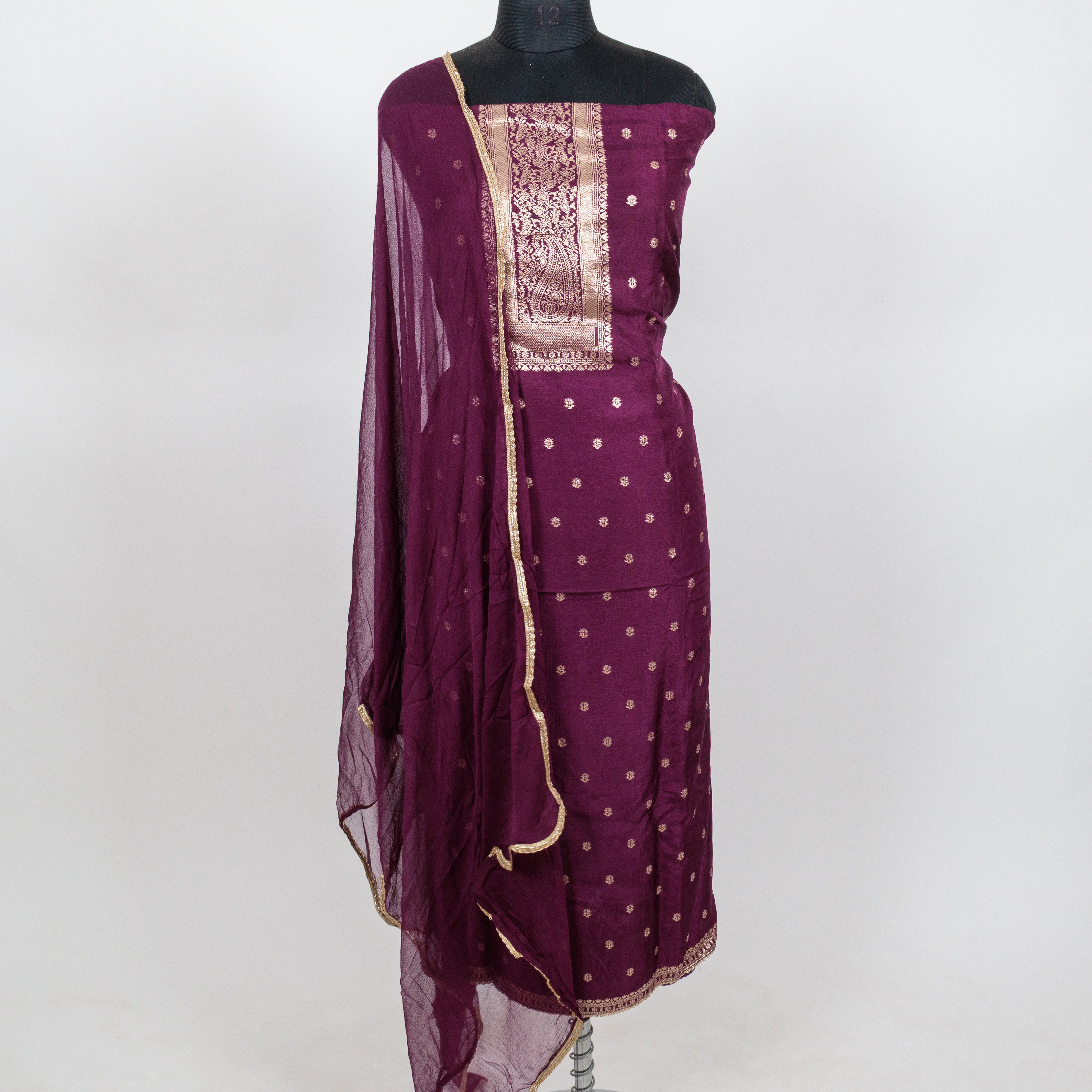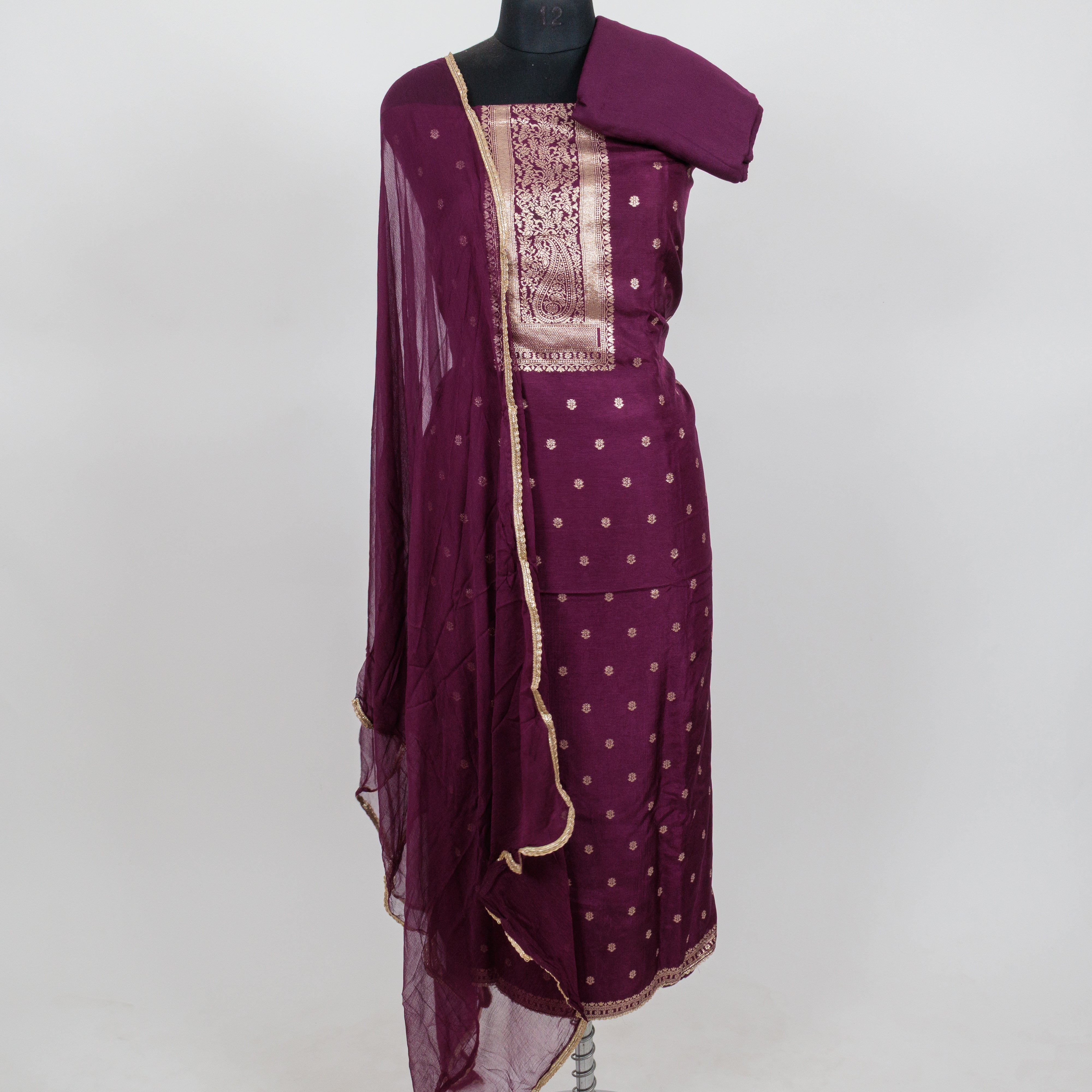 - Dola Silk Party Wear Designer Suit fabric with chiffon dupatta
