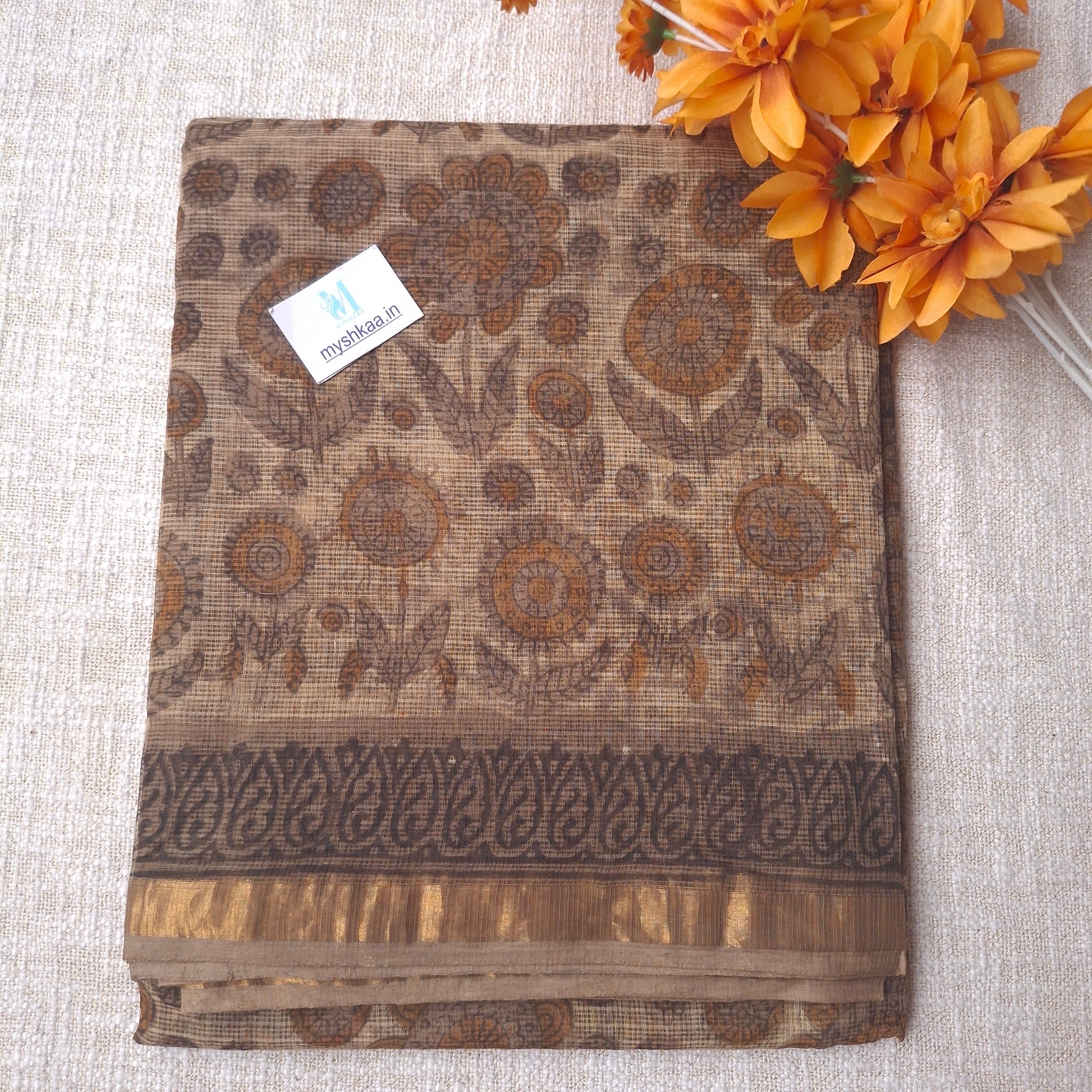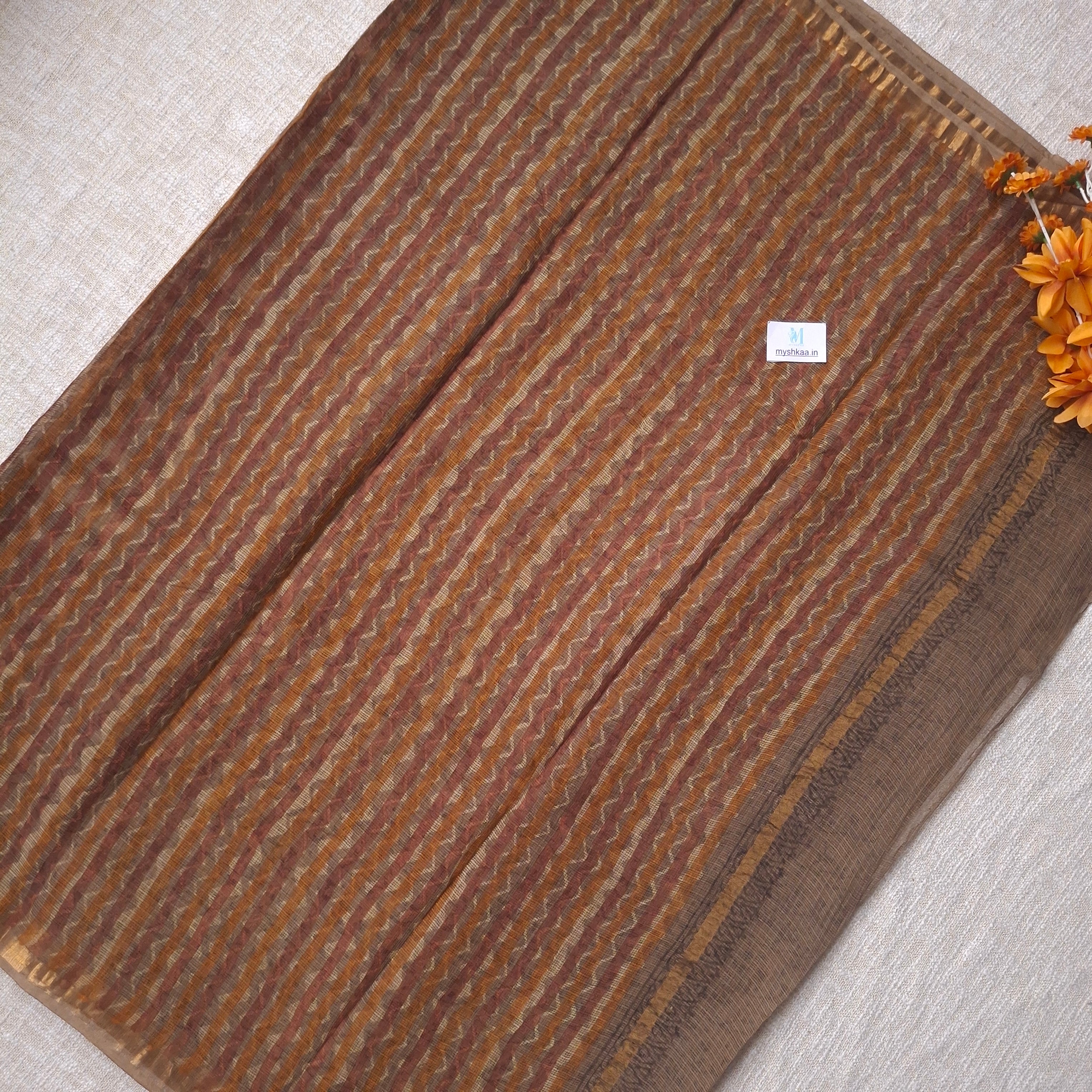 Hand Block Print Kota Doria Cotton Saree with Zari border and Unstitched Blouse Piece