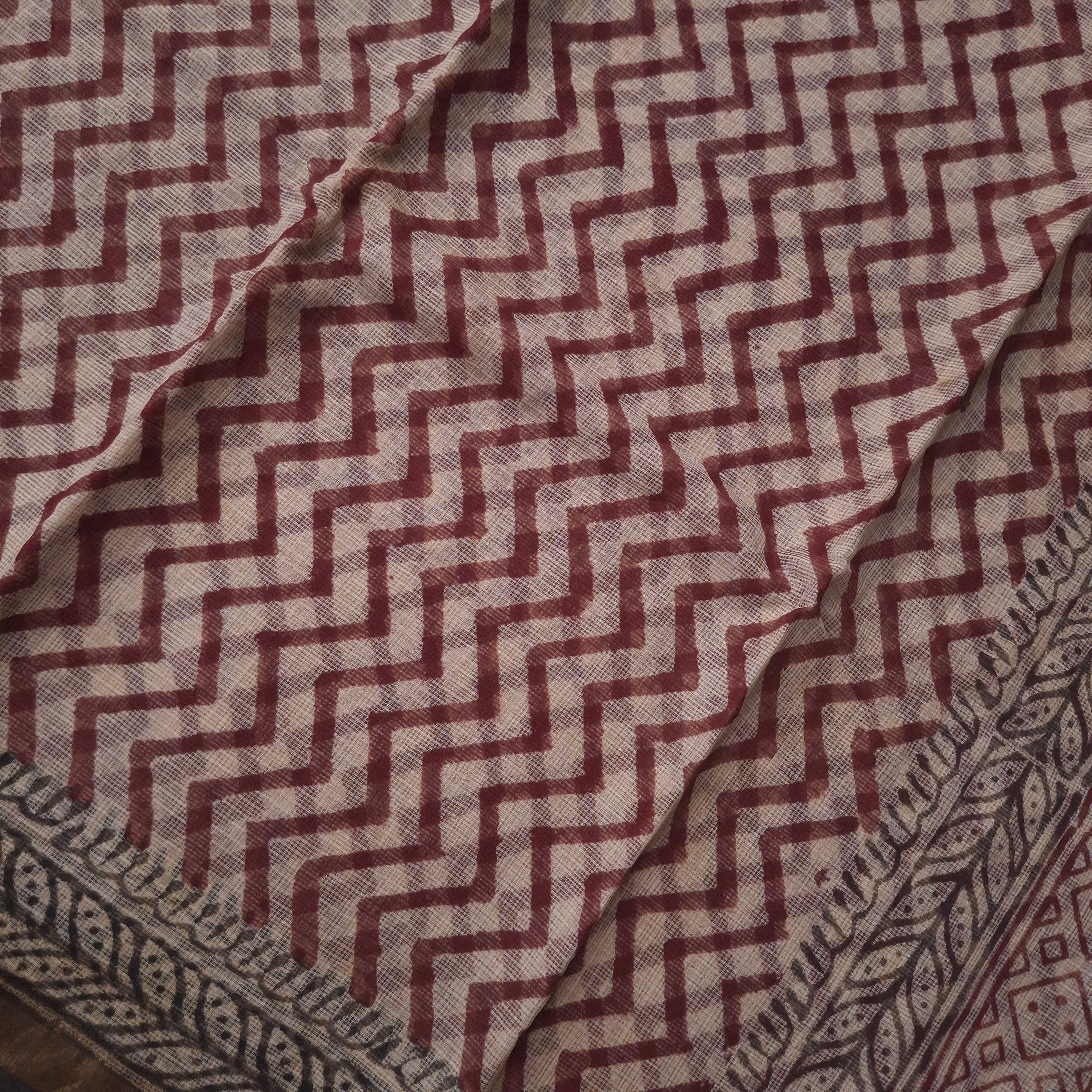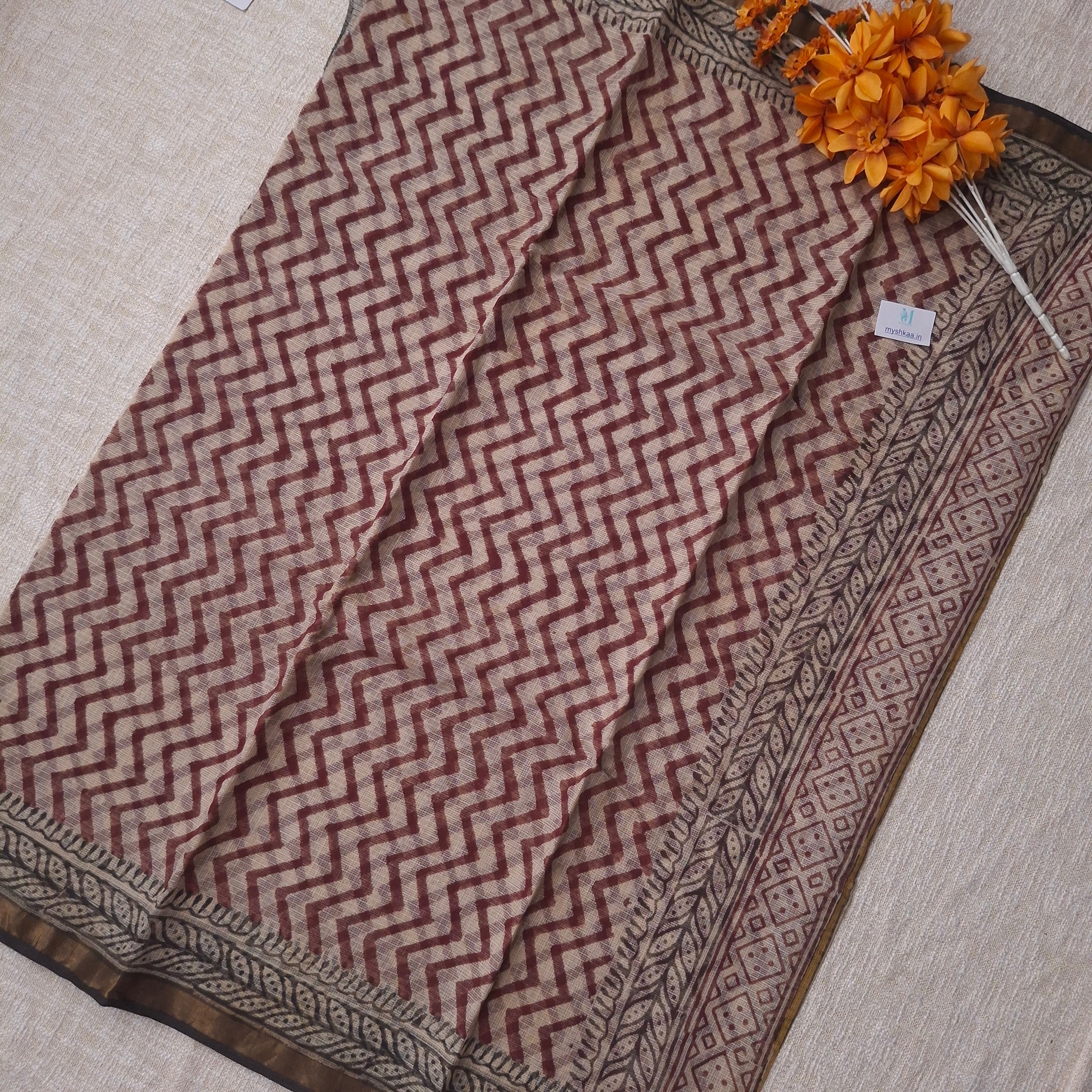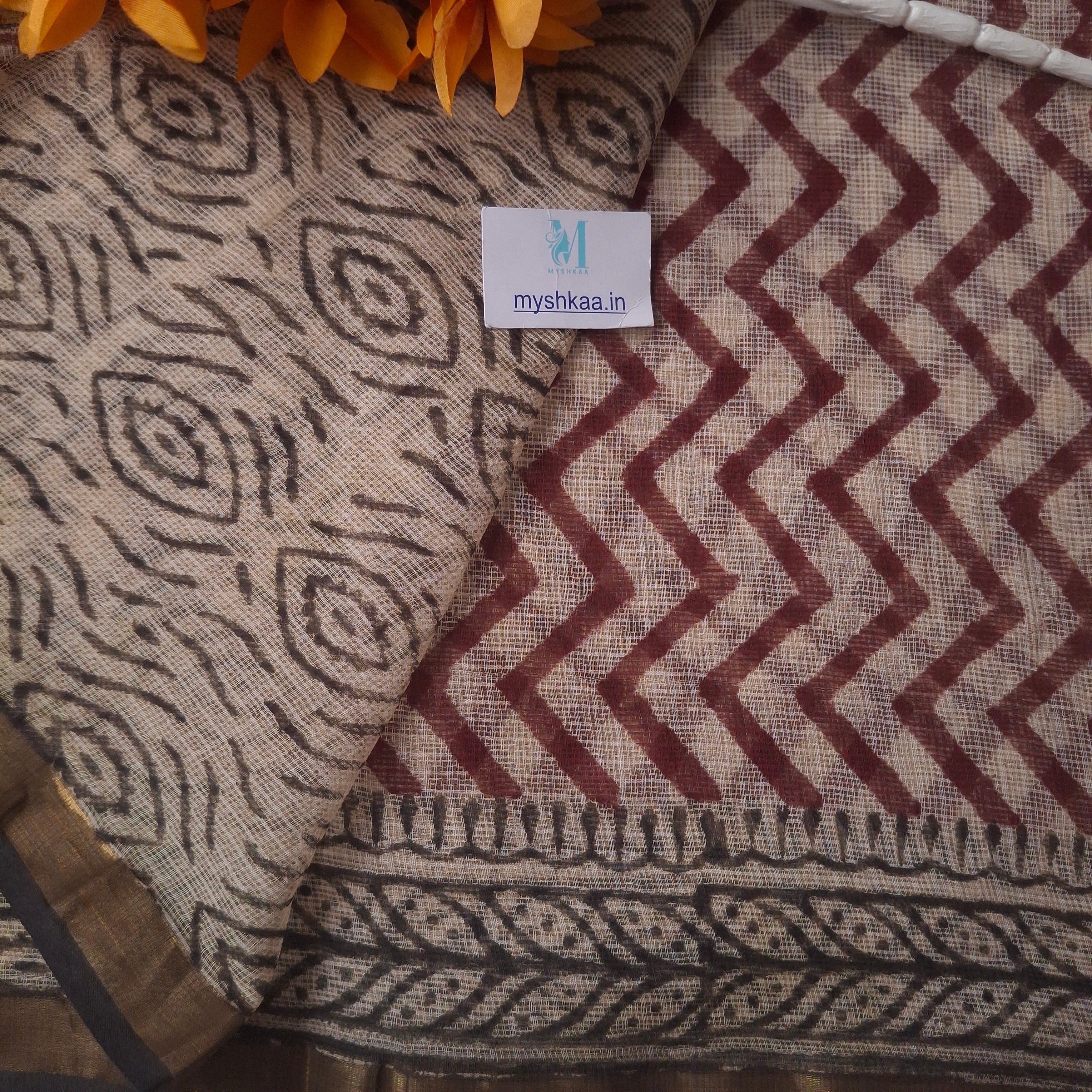 Hand Block Print Kota Doria Cotton Saree with Zari border and Unstitched Blouse Piece