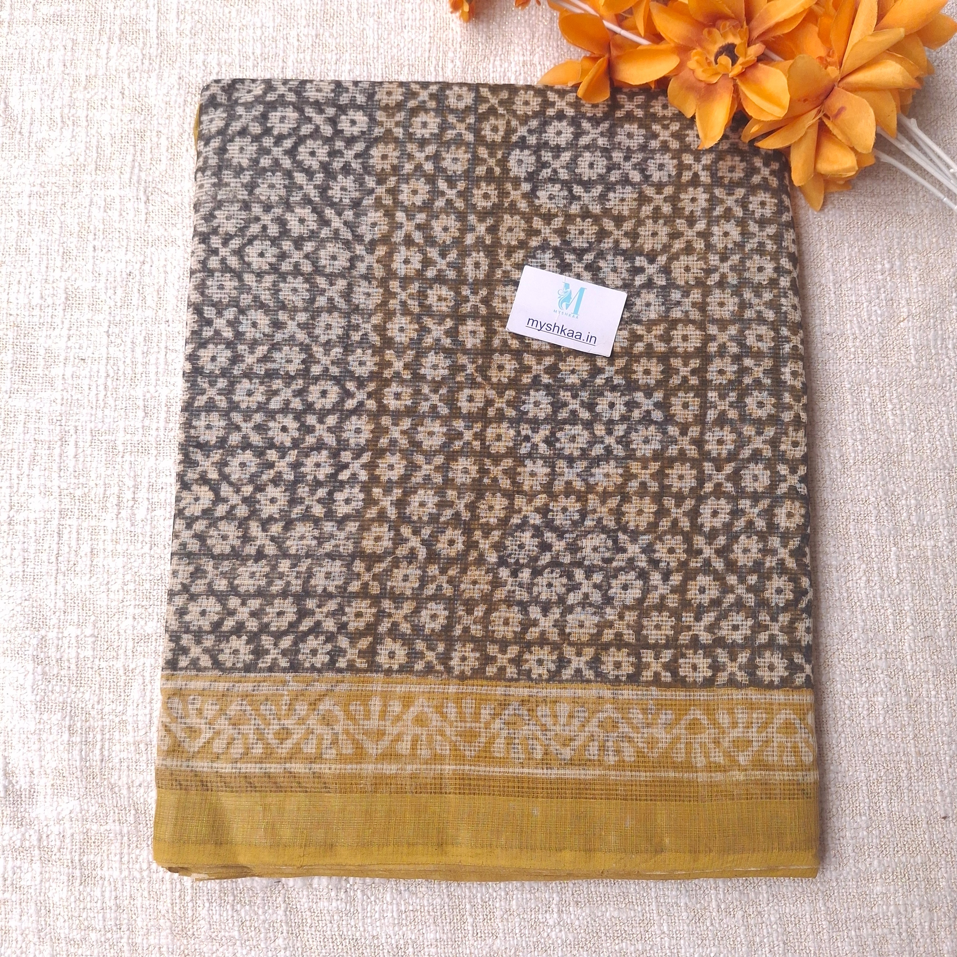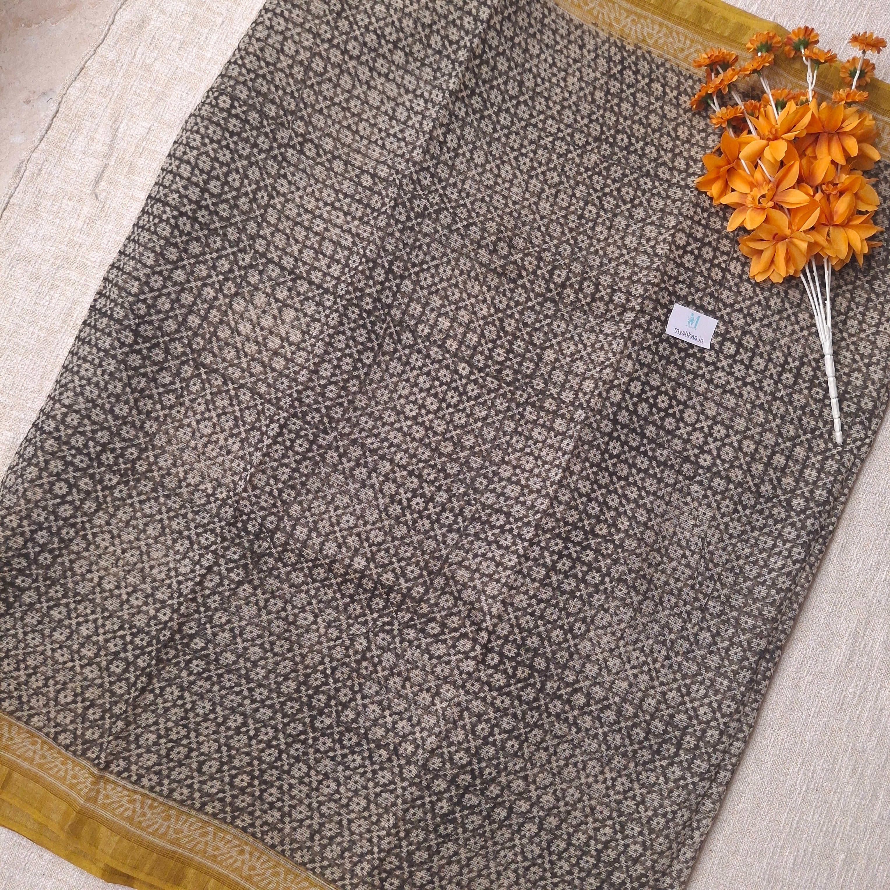 Hand Block Print Kota Doria Cotton Saree with zari border and unstitched Blouse Piece