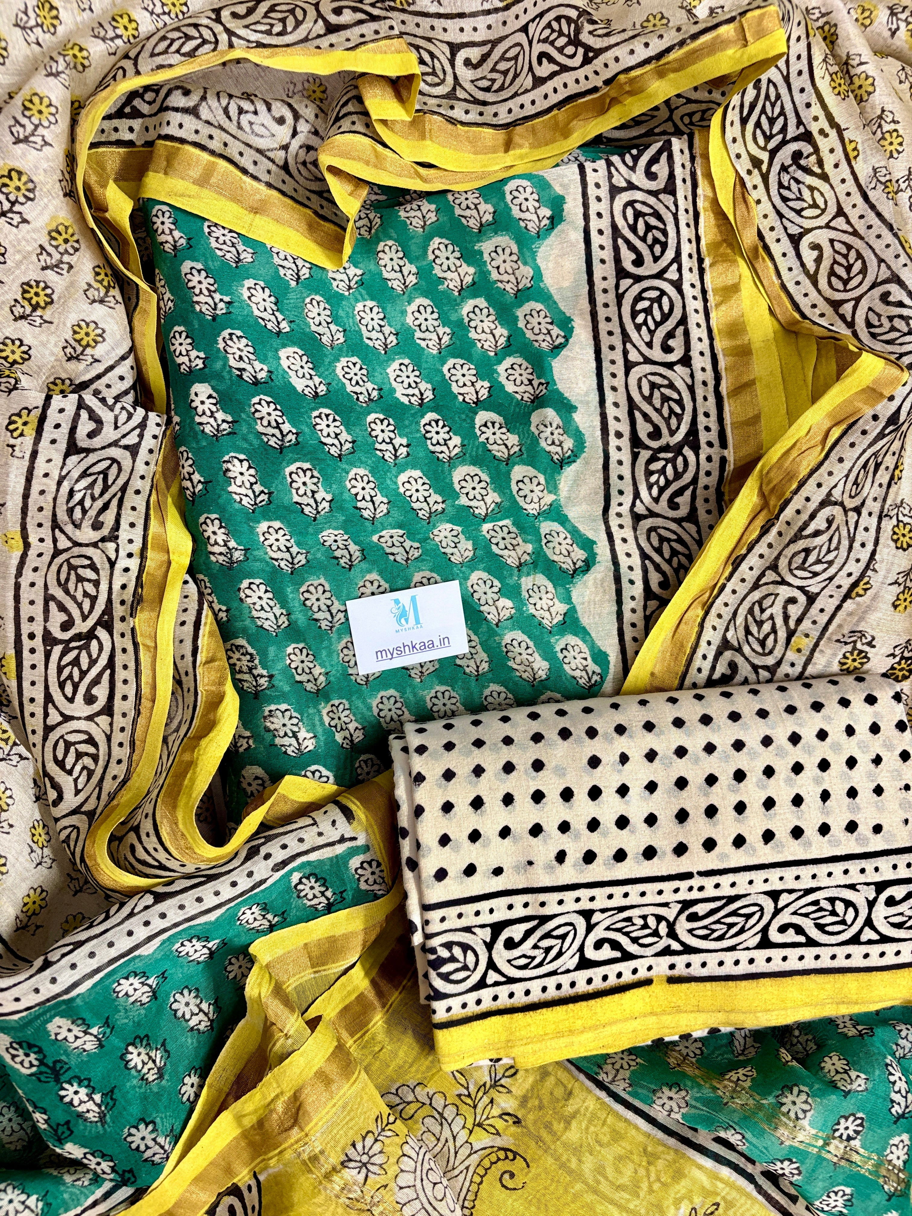Handblock Chanderi Suit Material with Chanderi Dupatta