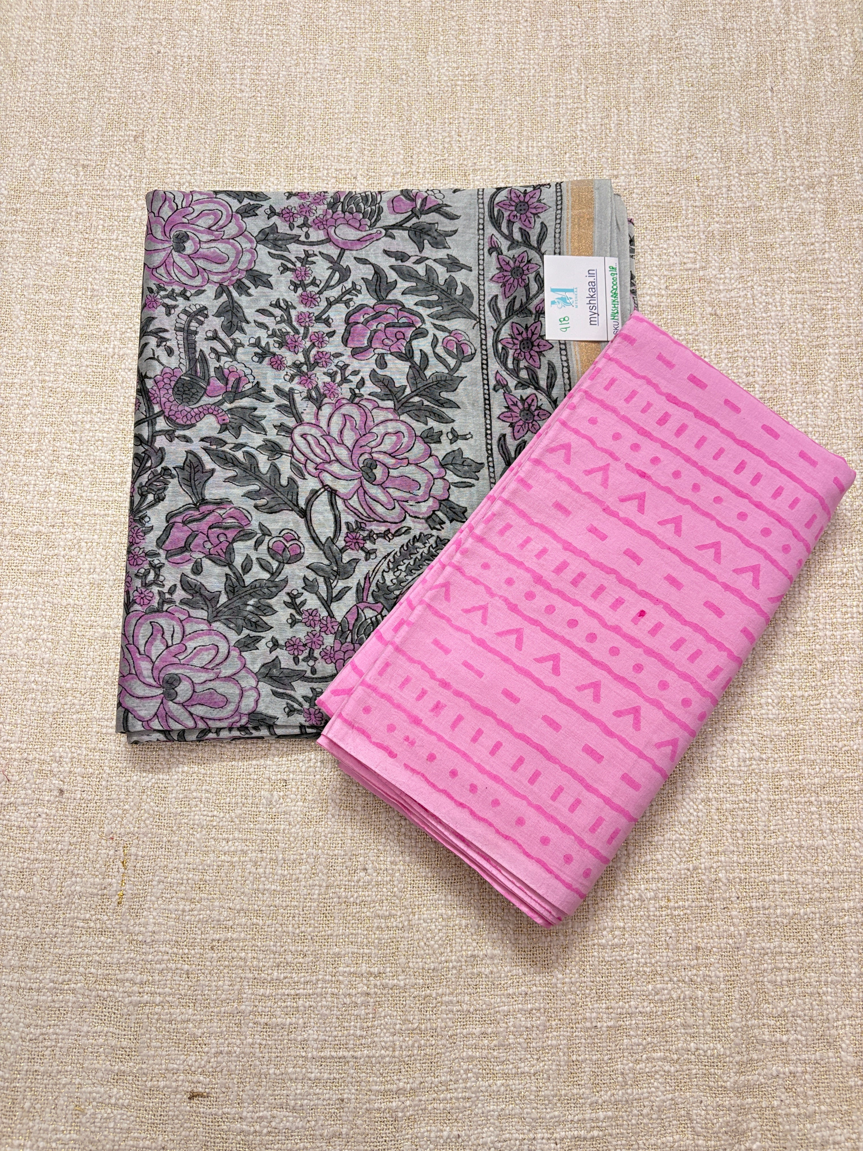 Handblock Chanderi Suit Material with Chanderi Dupatta