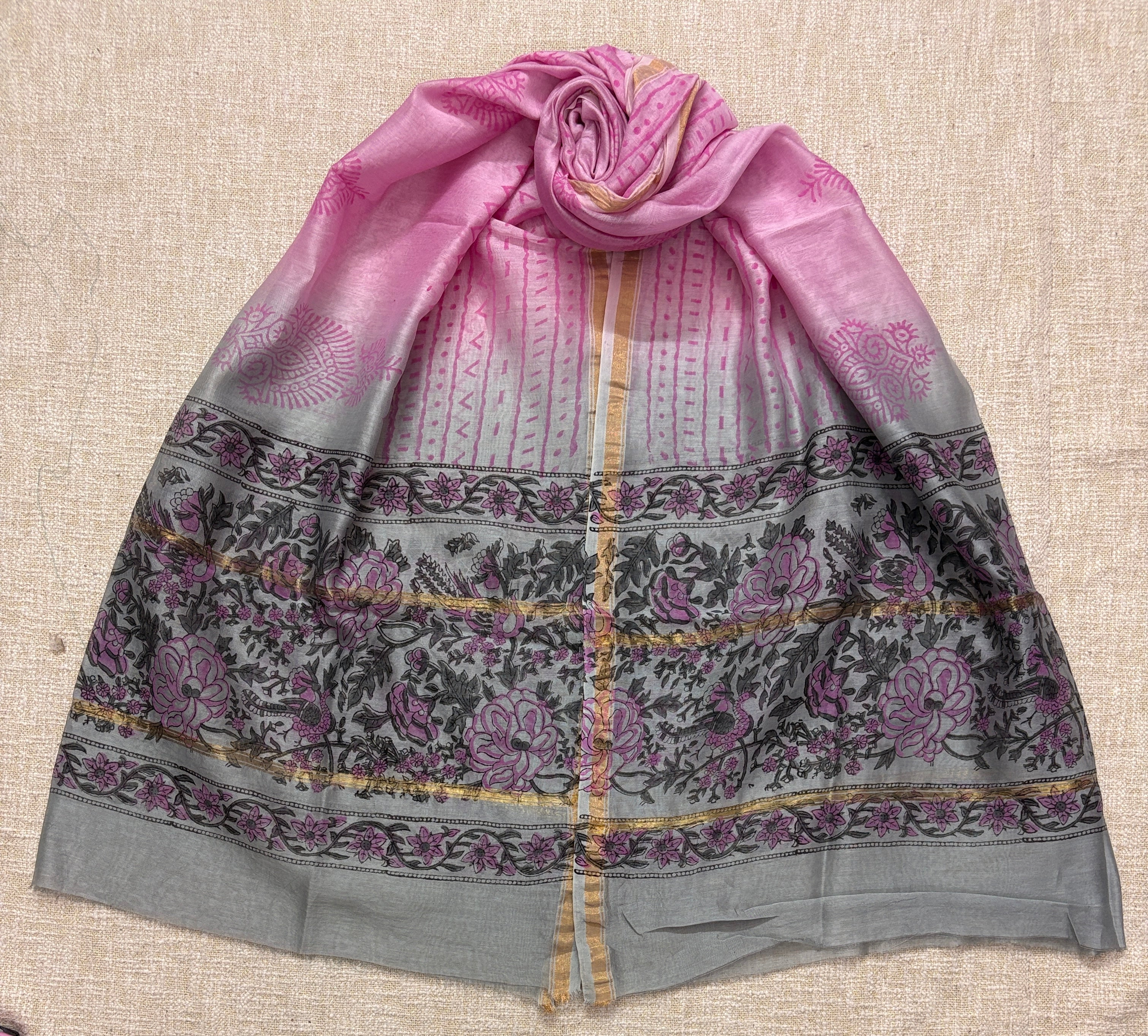 • Dupatta - Chanderi Handblock printed