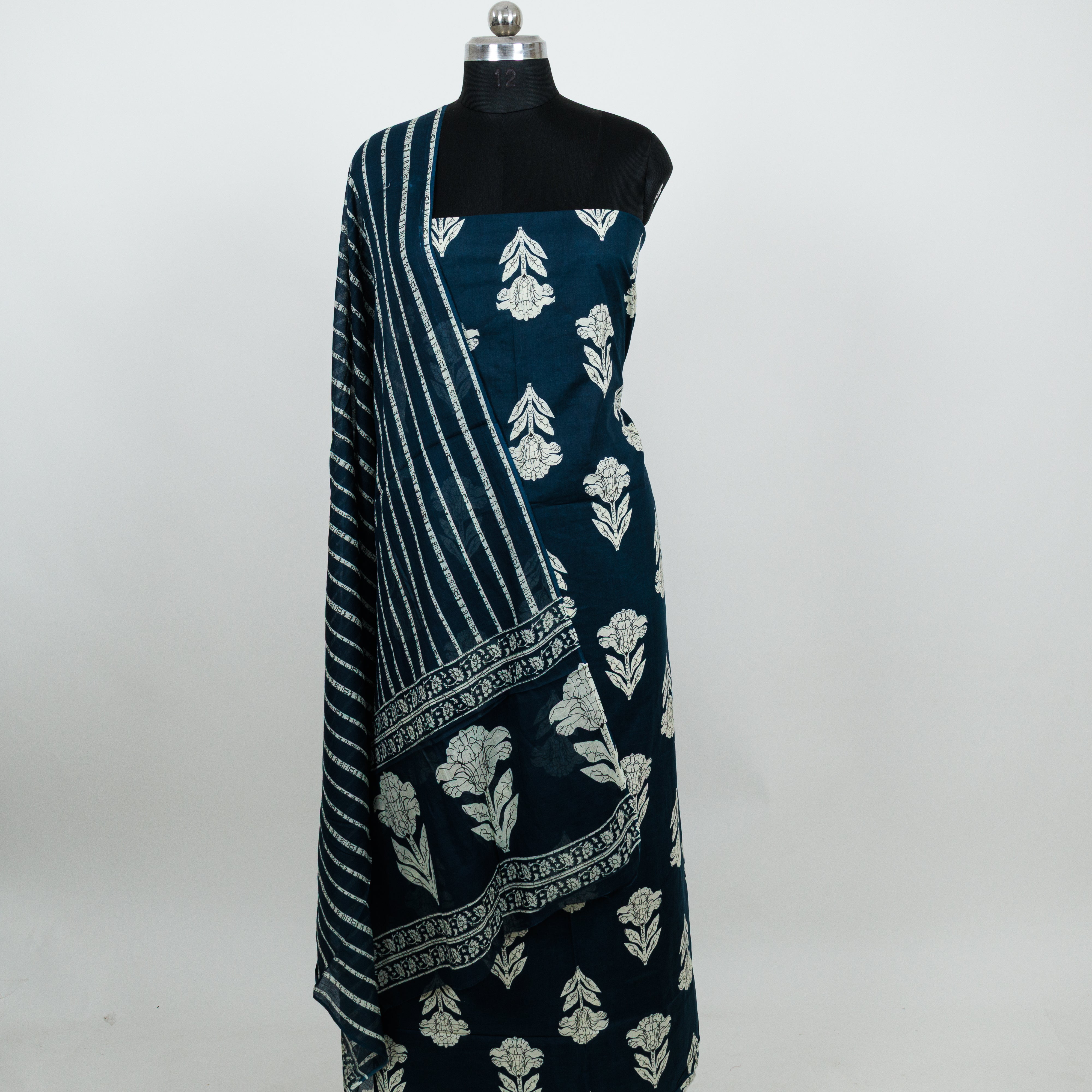 Handblock Cotton Suit Material with Cotton Dupatta