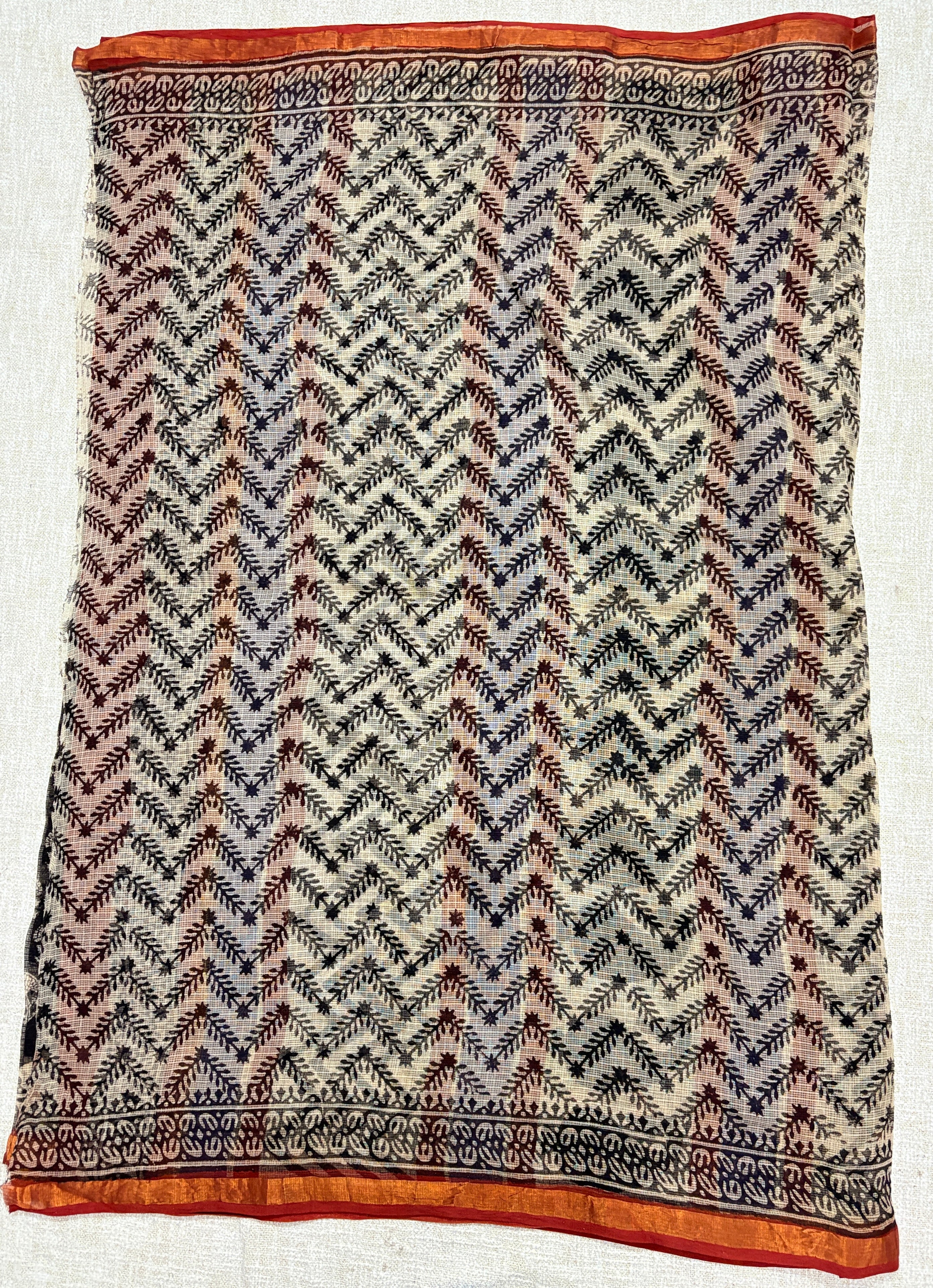 Handblock Print Kota Doria Cotton Saree with Unstitched Blouse Piece
