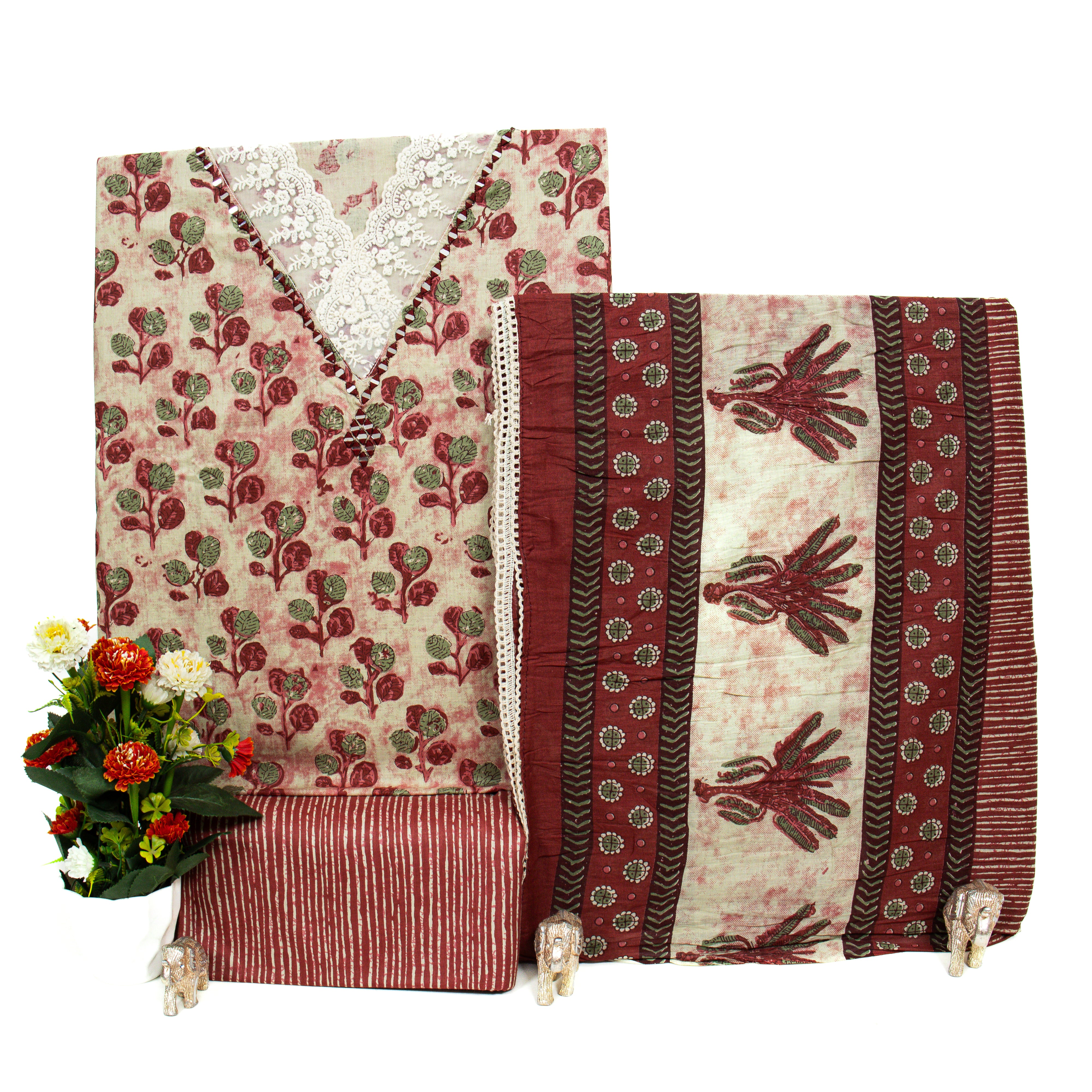 - Fabric Details : Top : Handloom Cotton || Bottom : Handloom Cotton printed || Dupatta : Mul Cotton Dupatta with lace