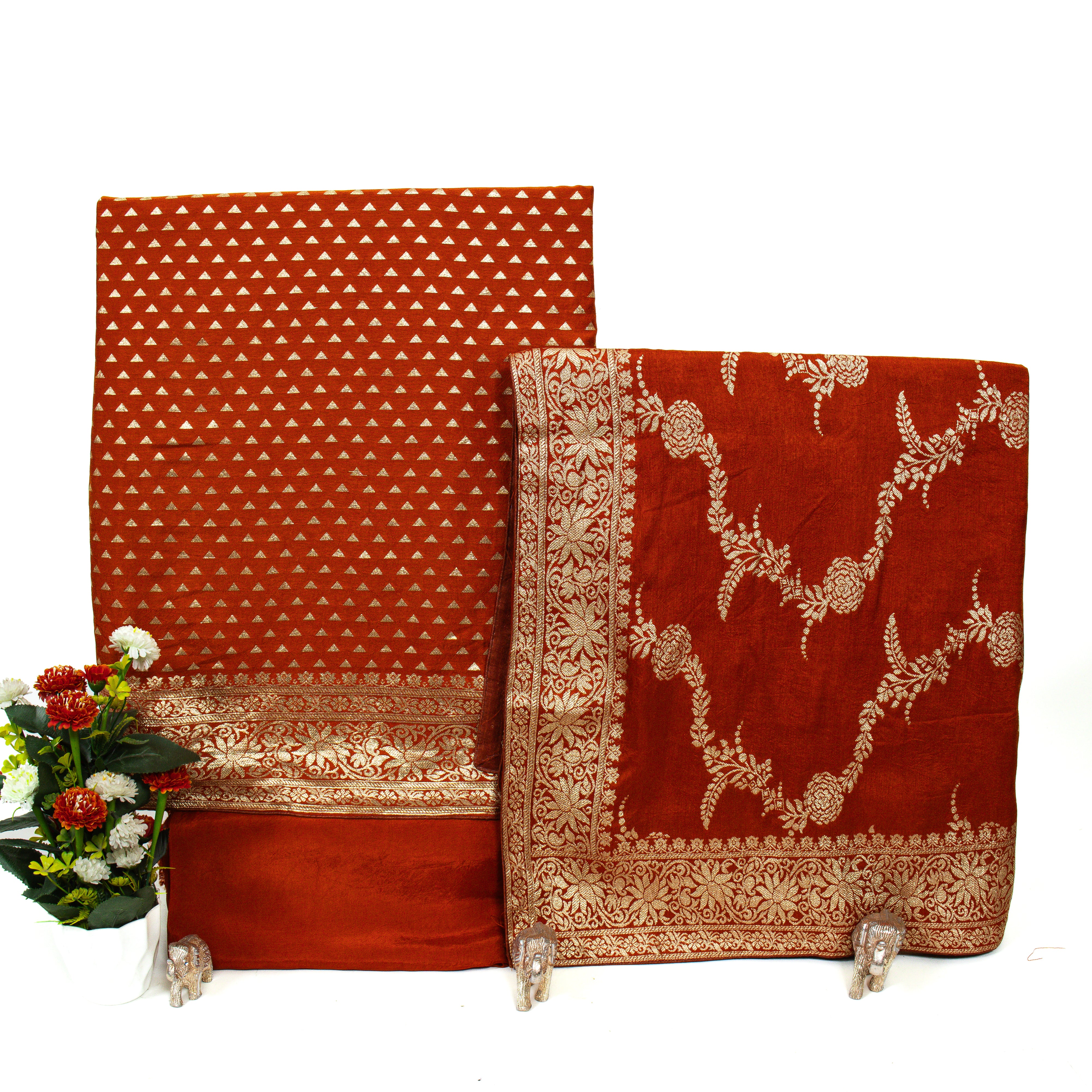 Orange (Fanta) Color Silk Party Wear Designer Suit fabric with banarasi dupatta