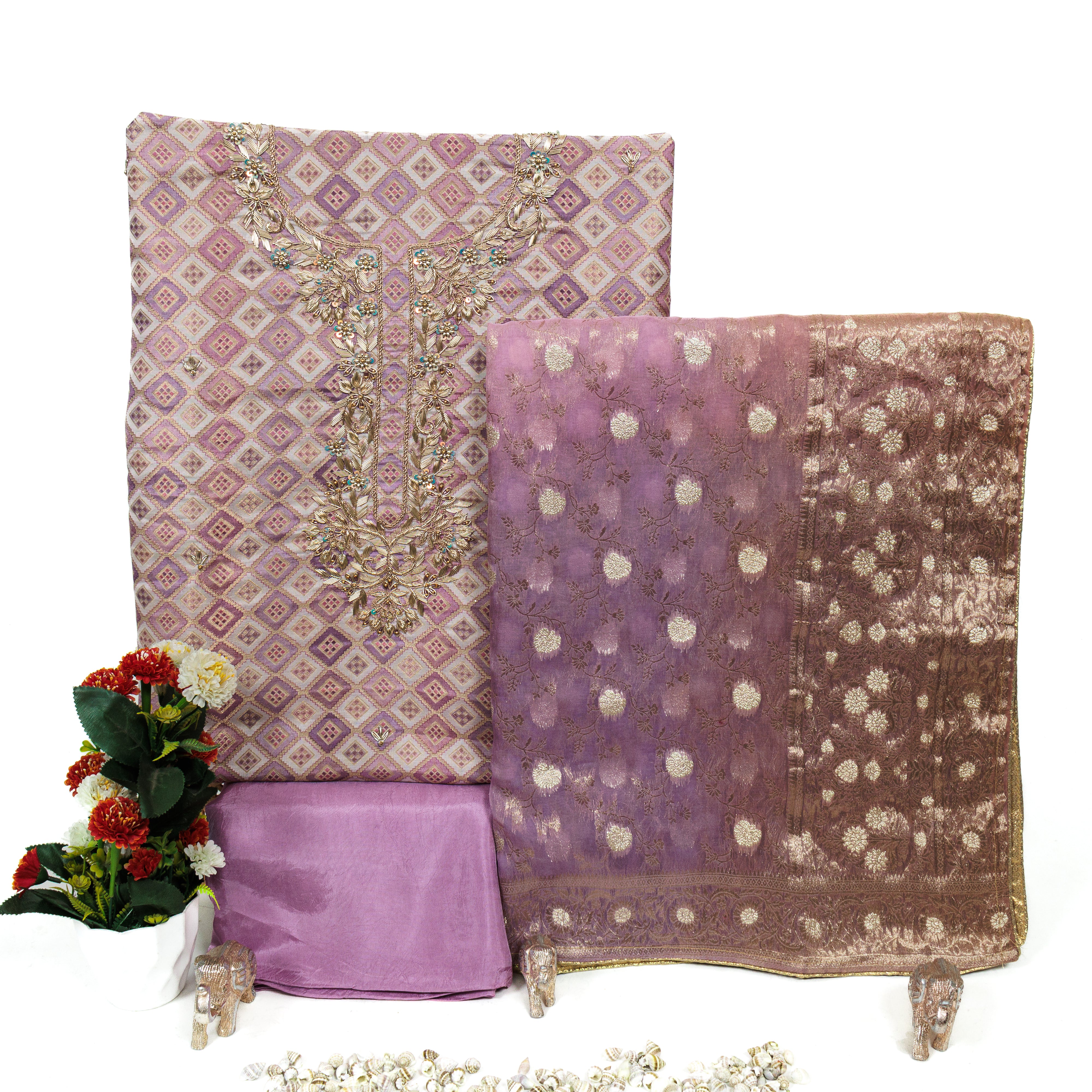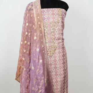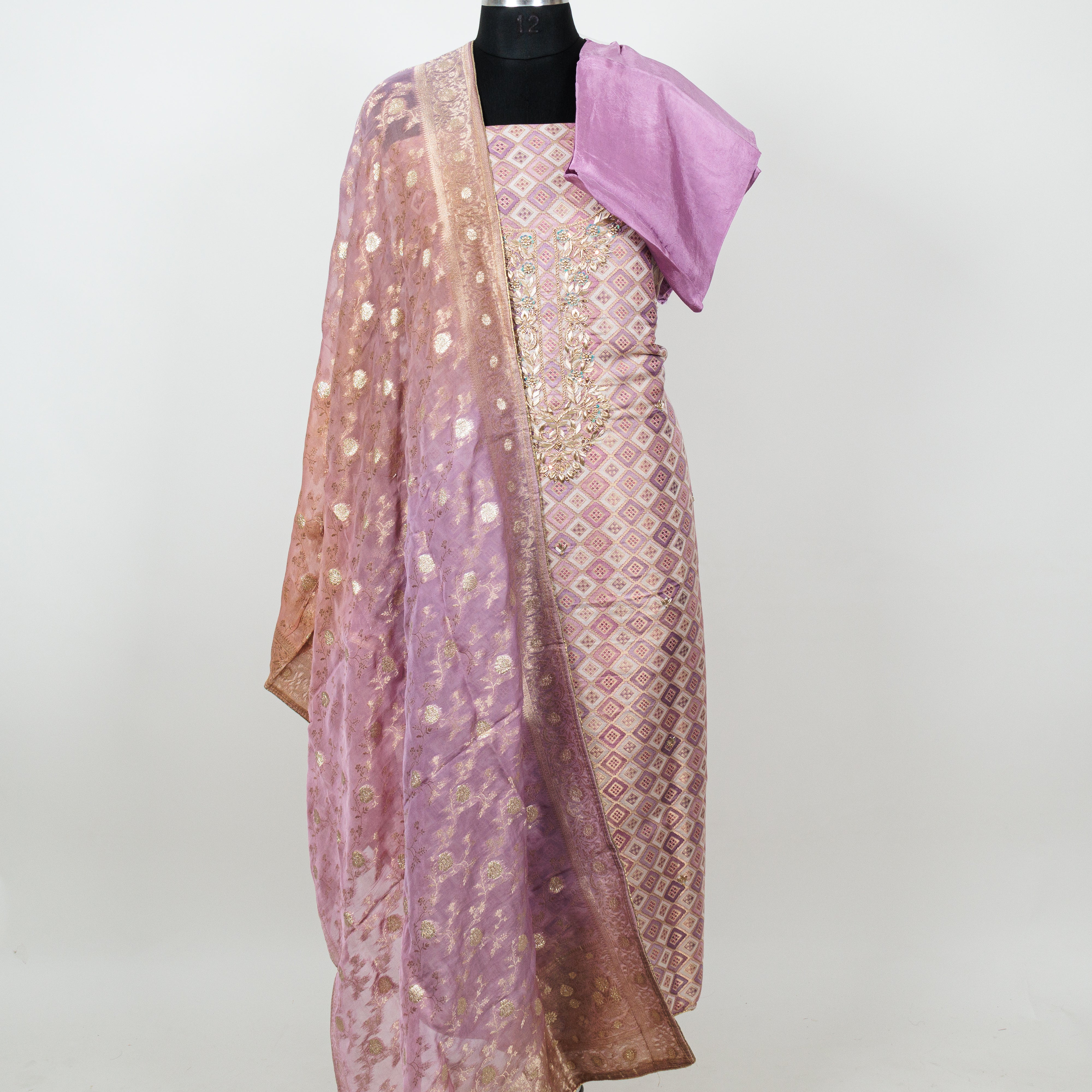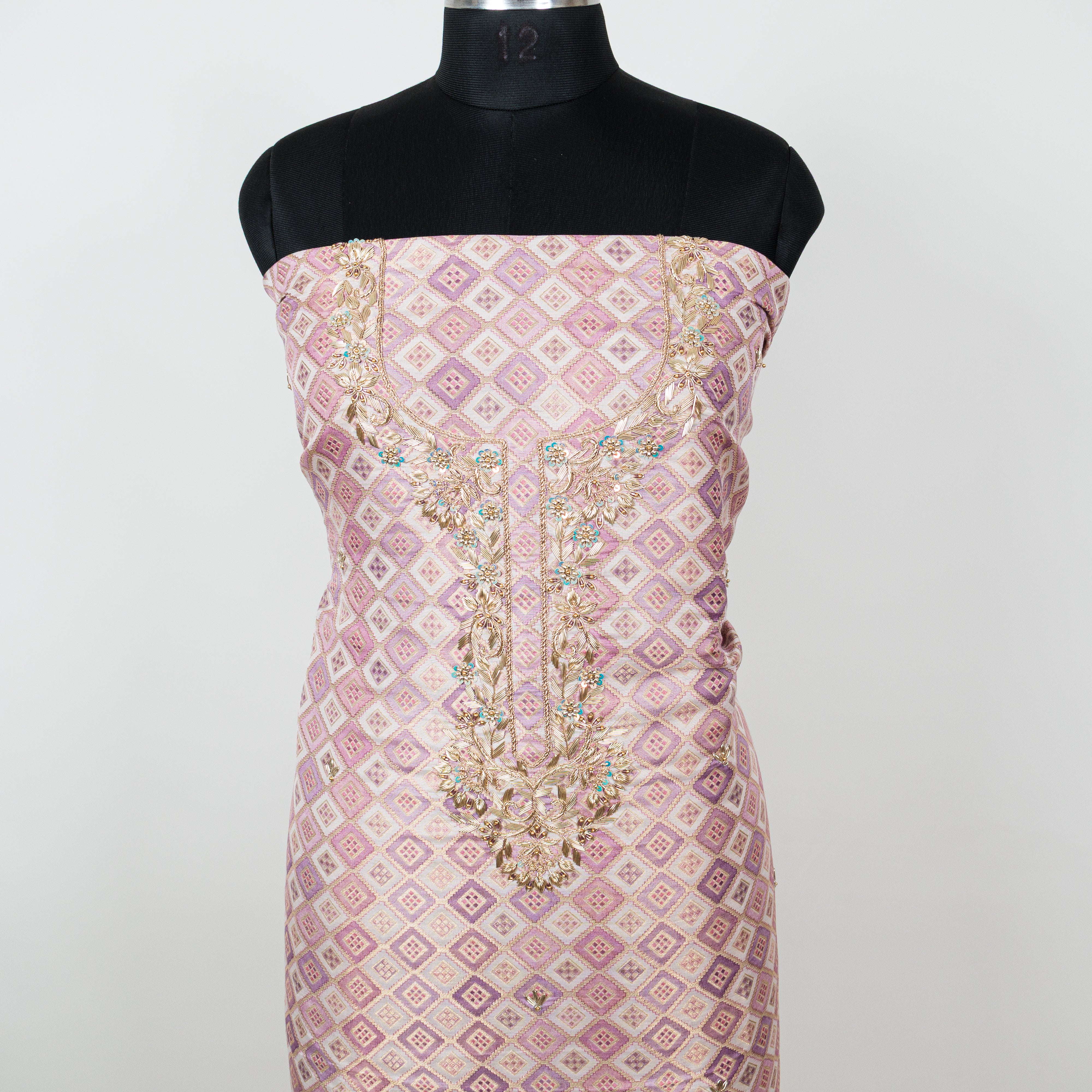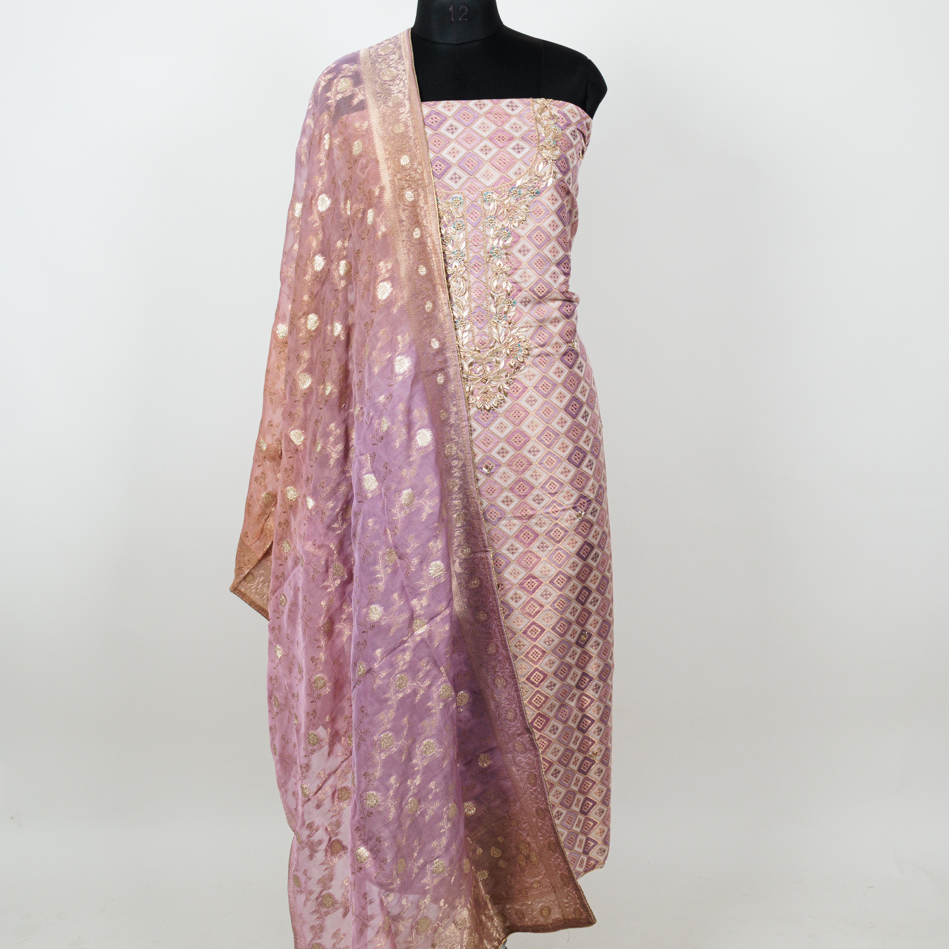 - Pink Color Silk Party Wear Designer Suit fabric with silk dupatta