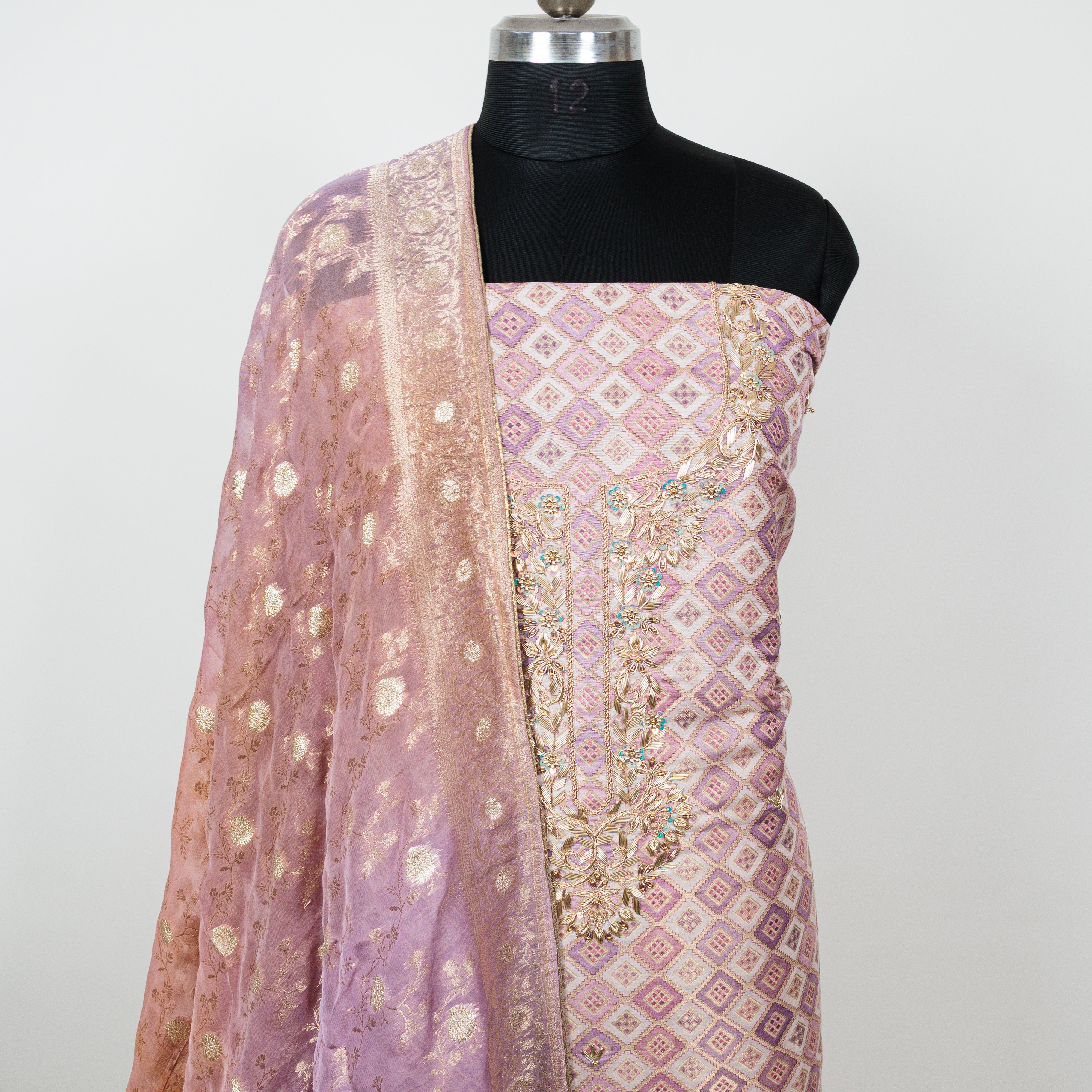 Pink Color Silk Party Wear Designer Suit fabric with silk dupatta
