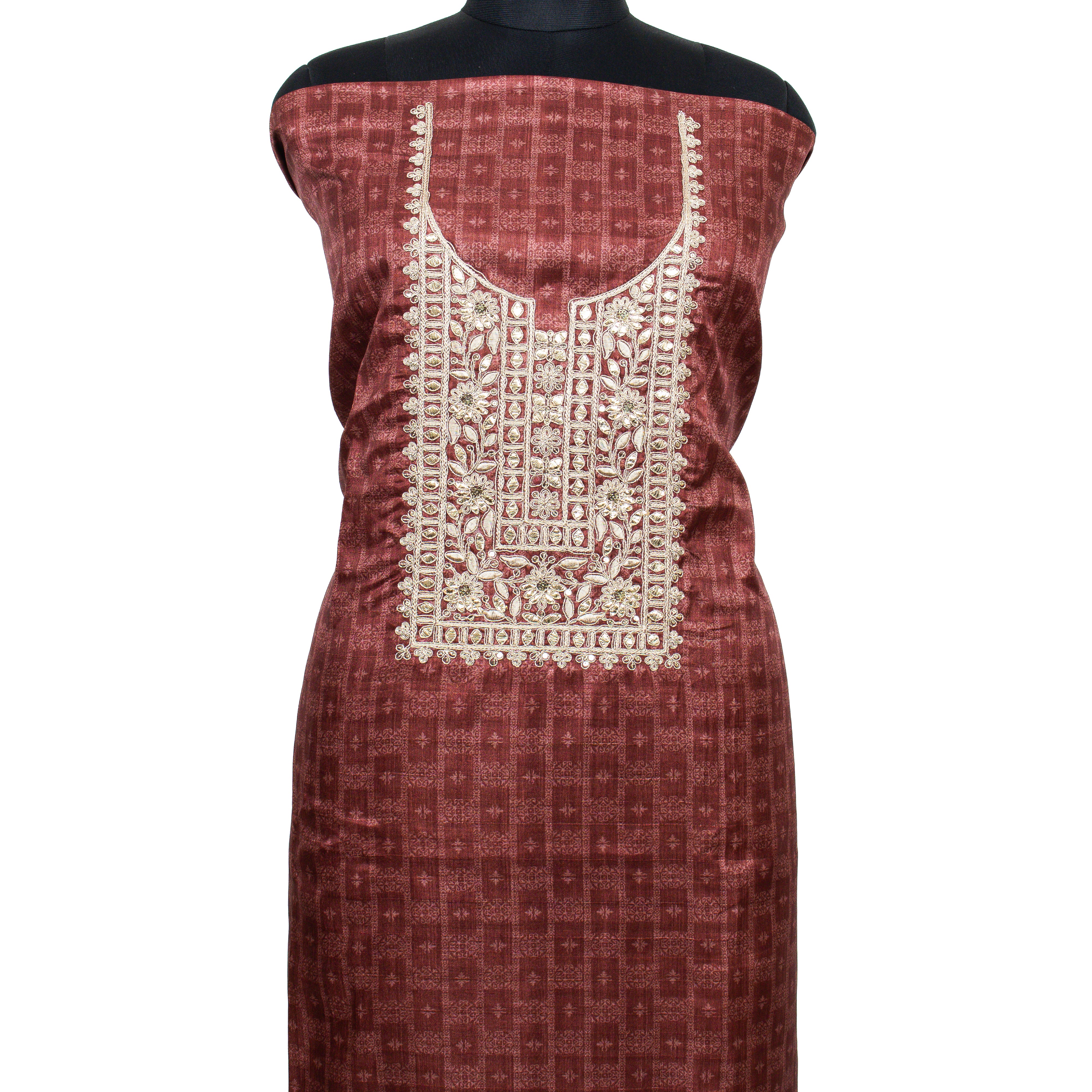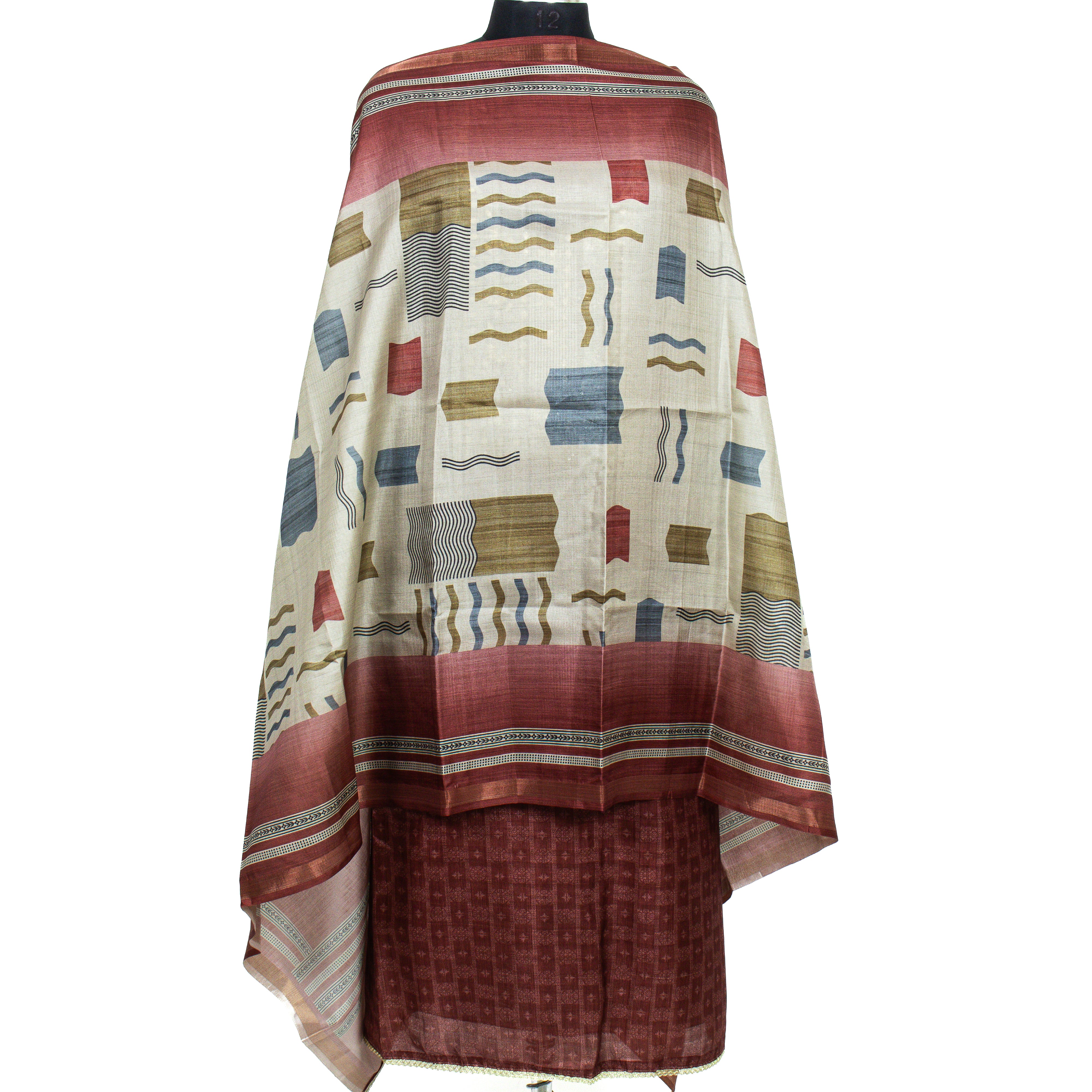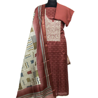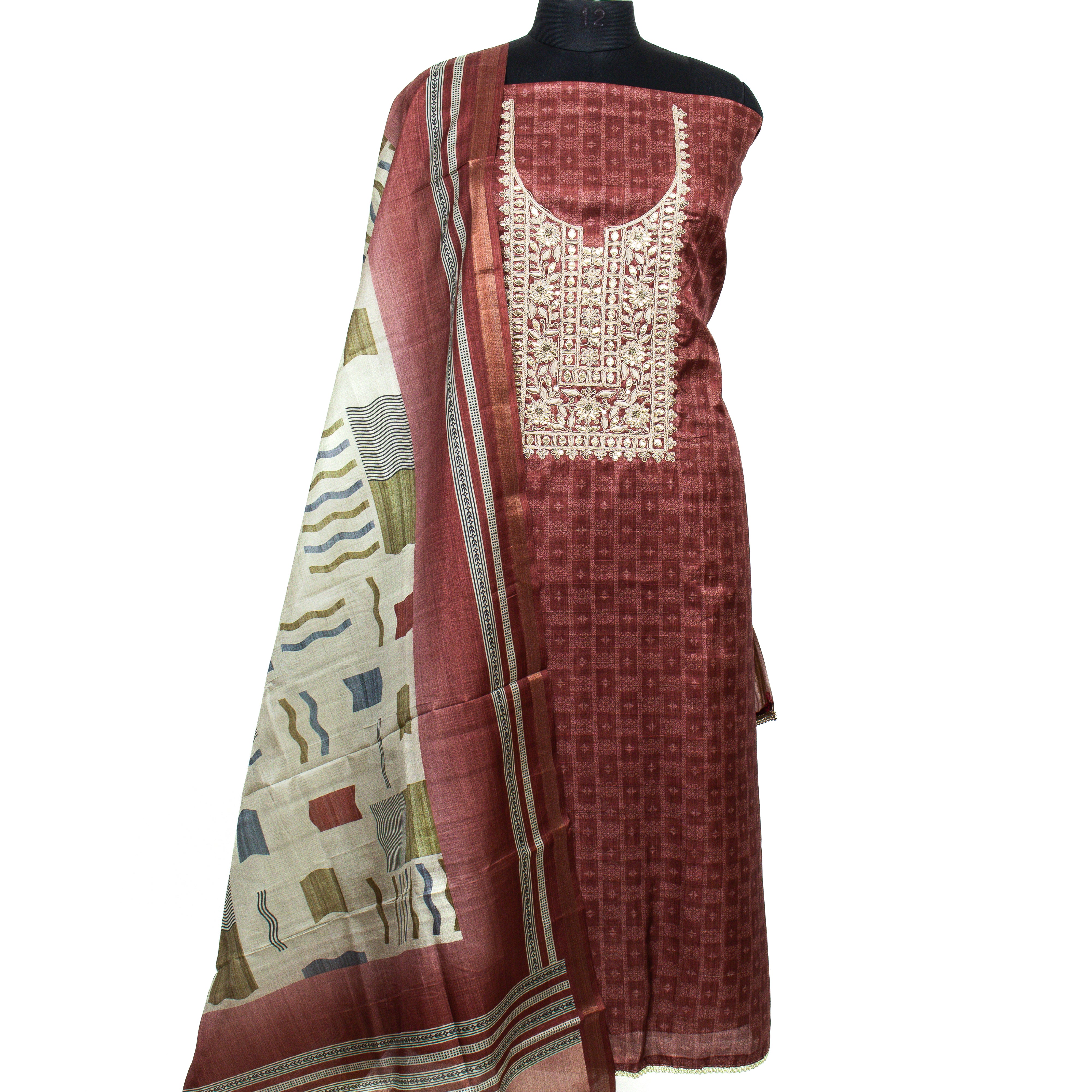 Rust color Maheshwari Silk Office Wear Designer Suit fabric with maheshwari silk dupatta