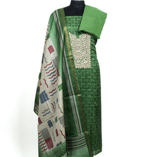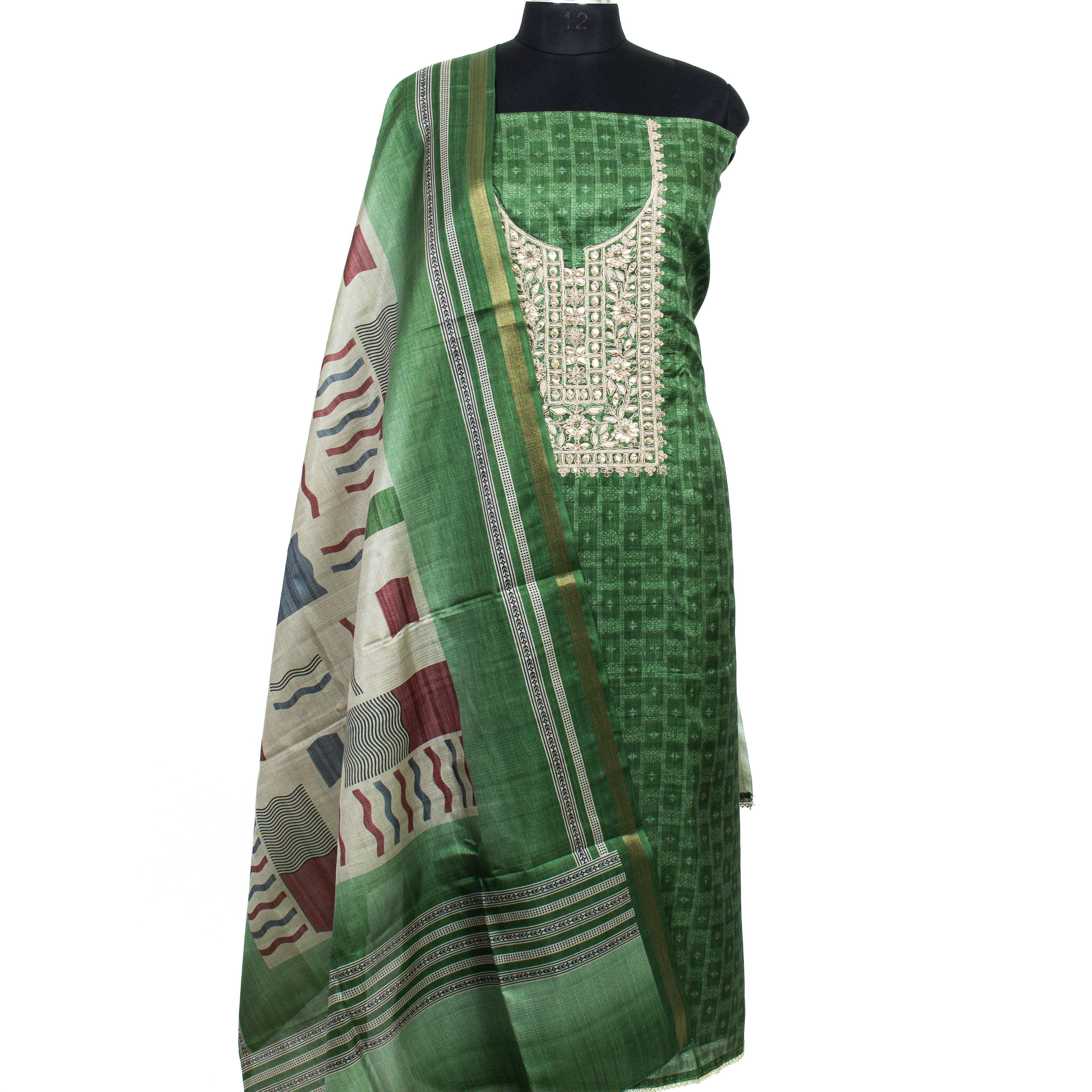 Green Maheshwari Silk Office Wear Designer Suit fabric with maheshwari silk dupatta